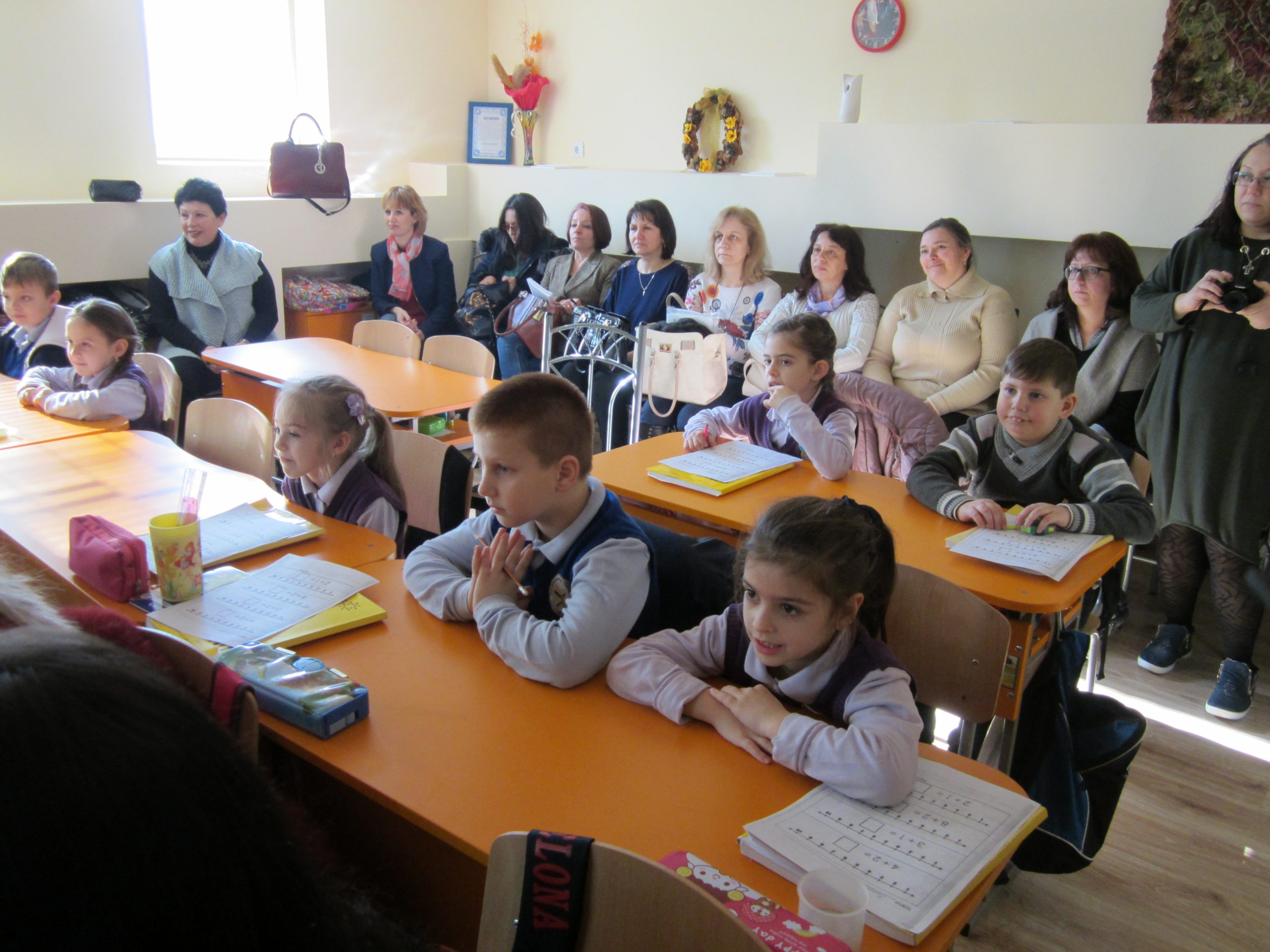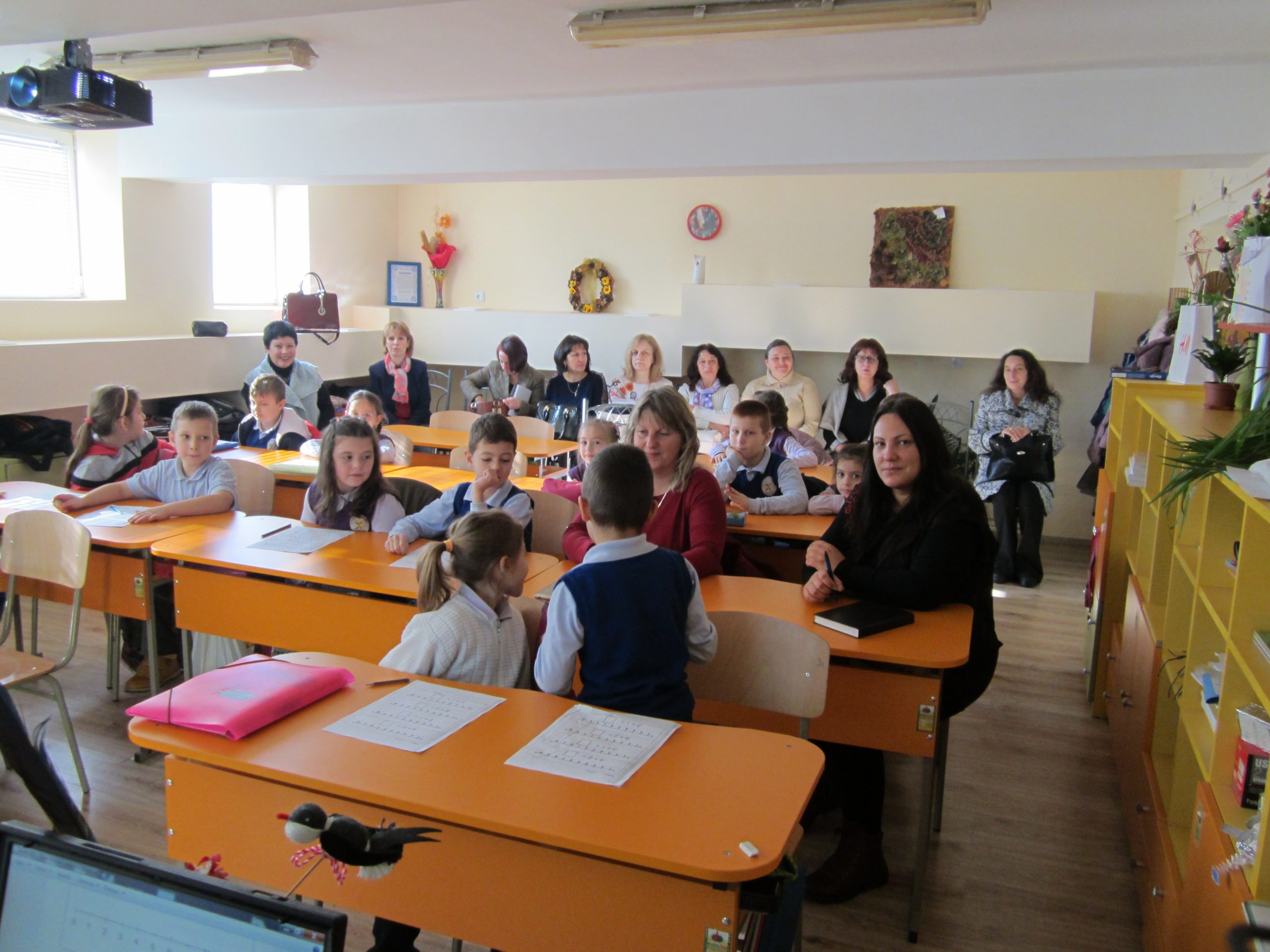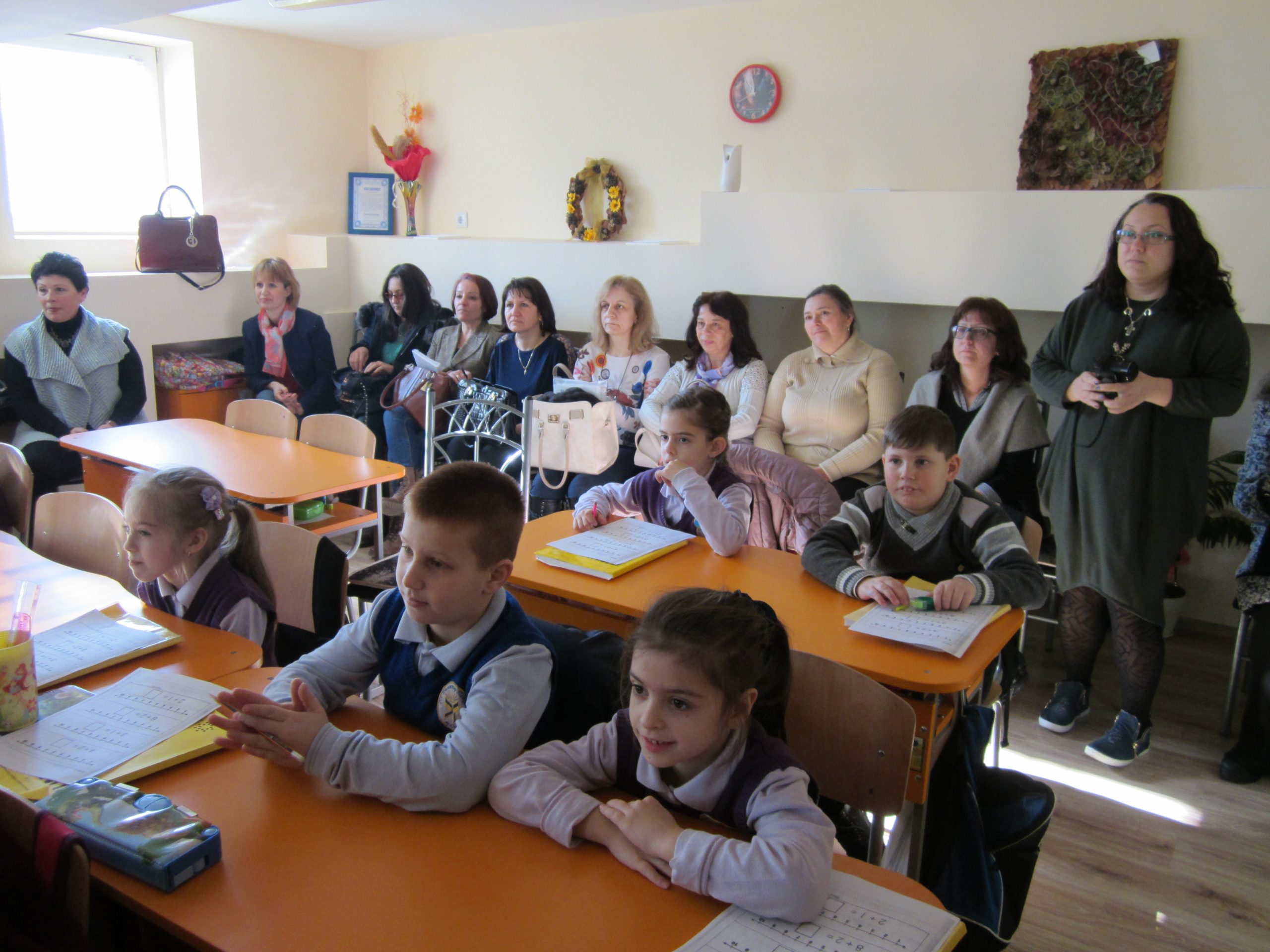 В Основно училище „Димитър Петров“ гостуваха учители от  Основно училище „Св. Св. Кирил и Методий“ – Свети Влас. Колегите проявяват интерес към иновацията – JUMP Math, по която се работи в нашето училище. След като разгледаха училището, срещата на двата екипа продължи в оживени разговори и споделяне на опит и впечатления. Проведе се разговор и с учителите, преподаващи по системата JUMP Math в първи и втори клас.