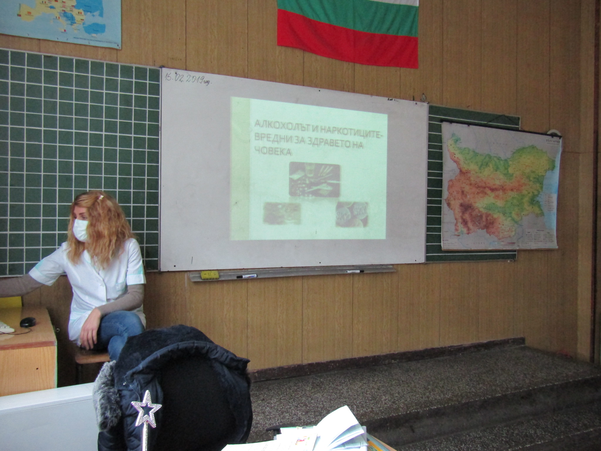 На 15.02.2019г., мед.сестра Ивелина Панайотова, представи презентация на IVб клас на тема: “Алкохолът и наркотиците, влиянието им върху човешкия организъм.”