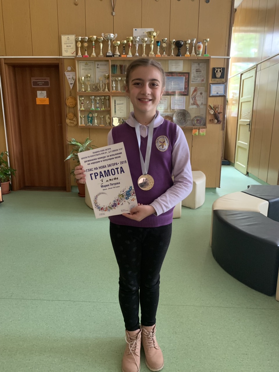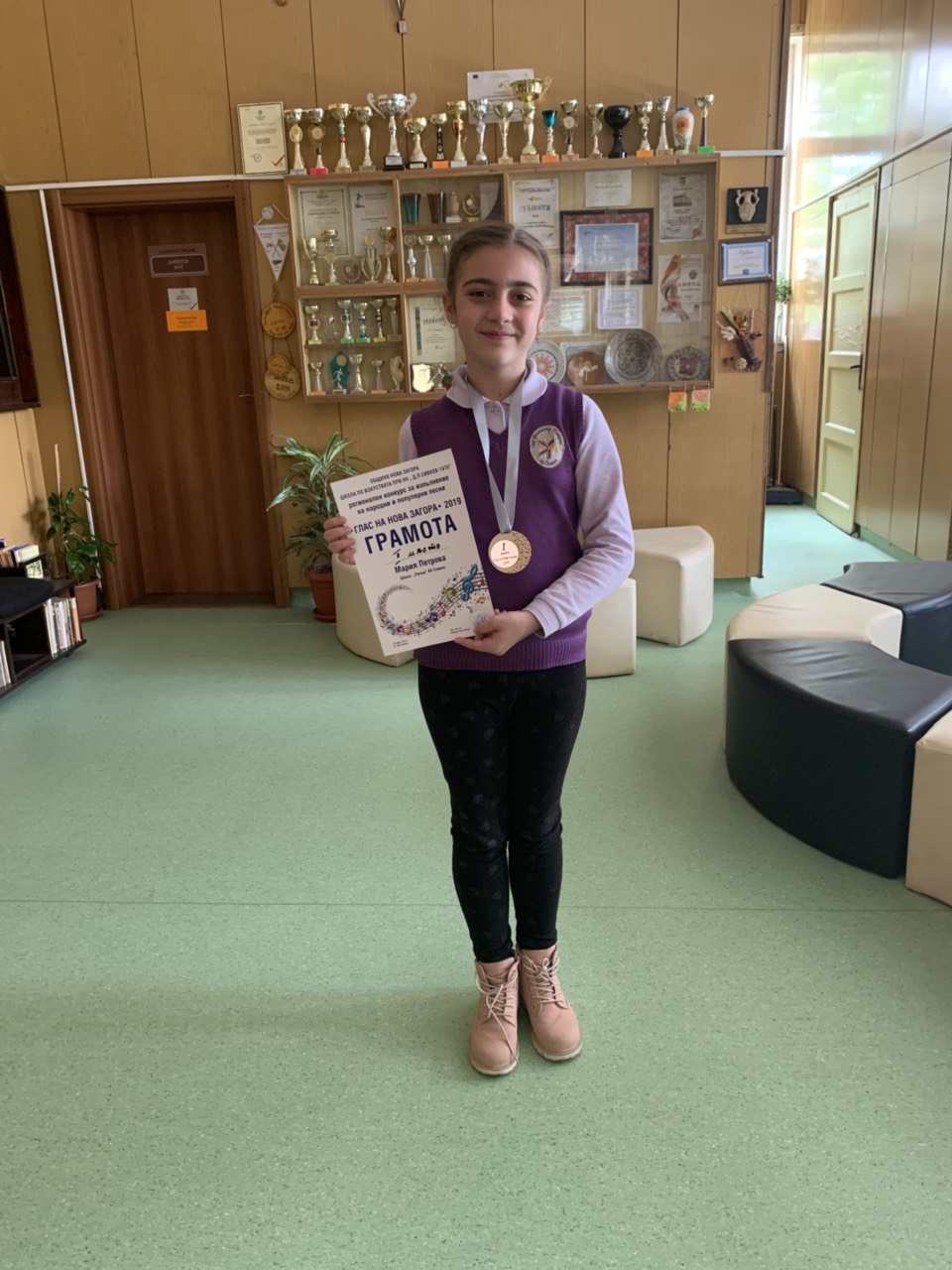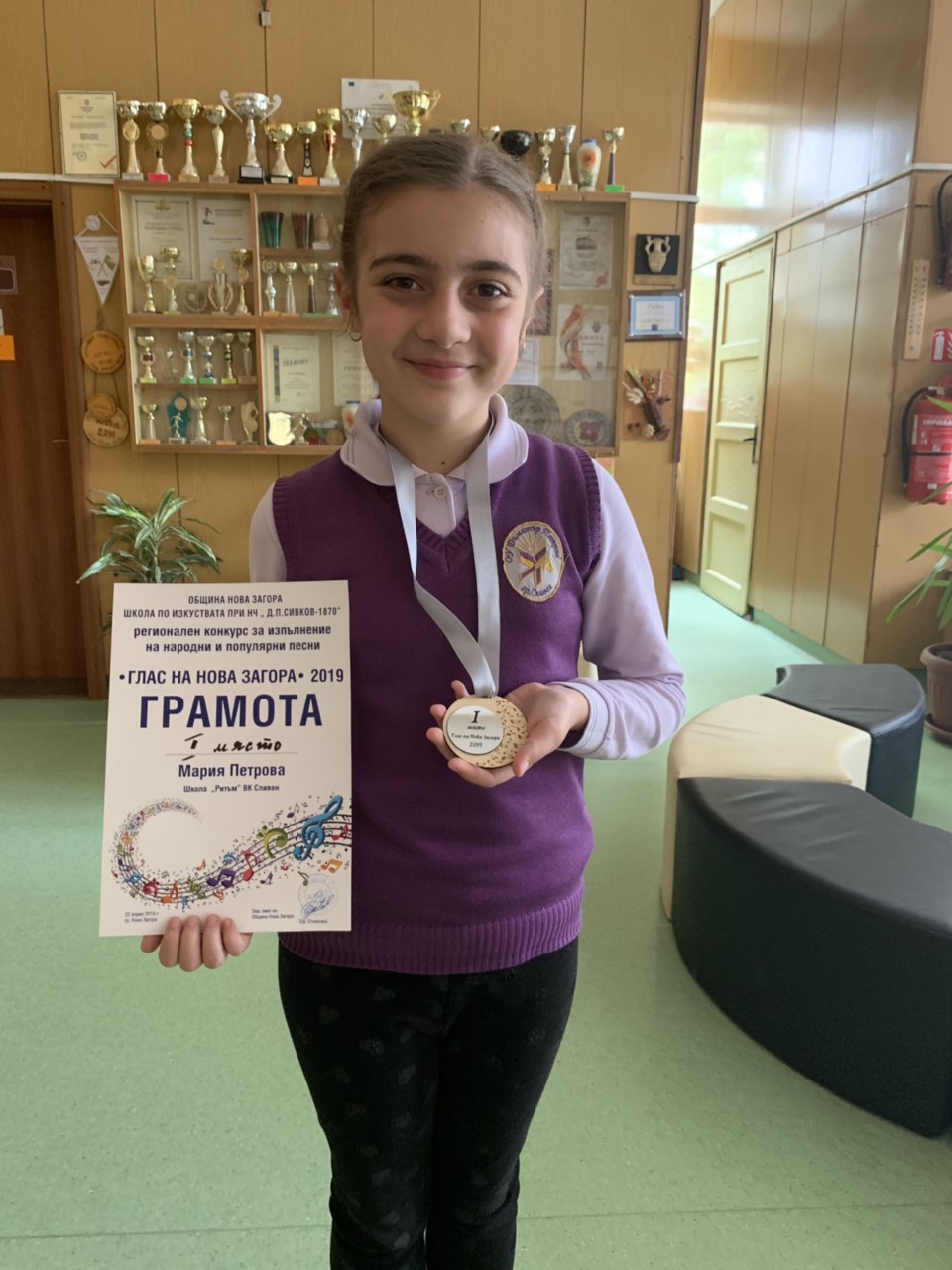 Мария Петрова от III a клас зае първото място на конкурса в категорията – изпълнение на популярна песен.