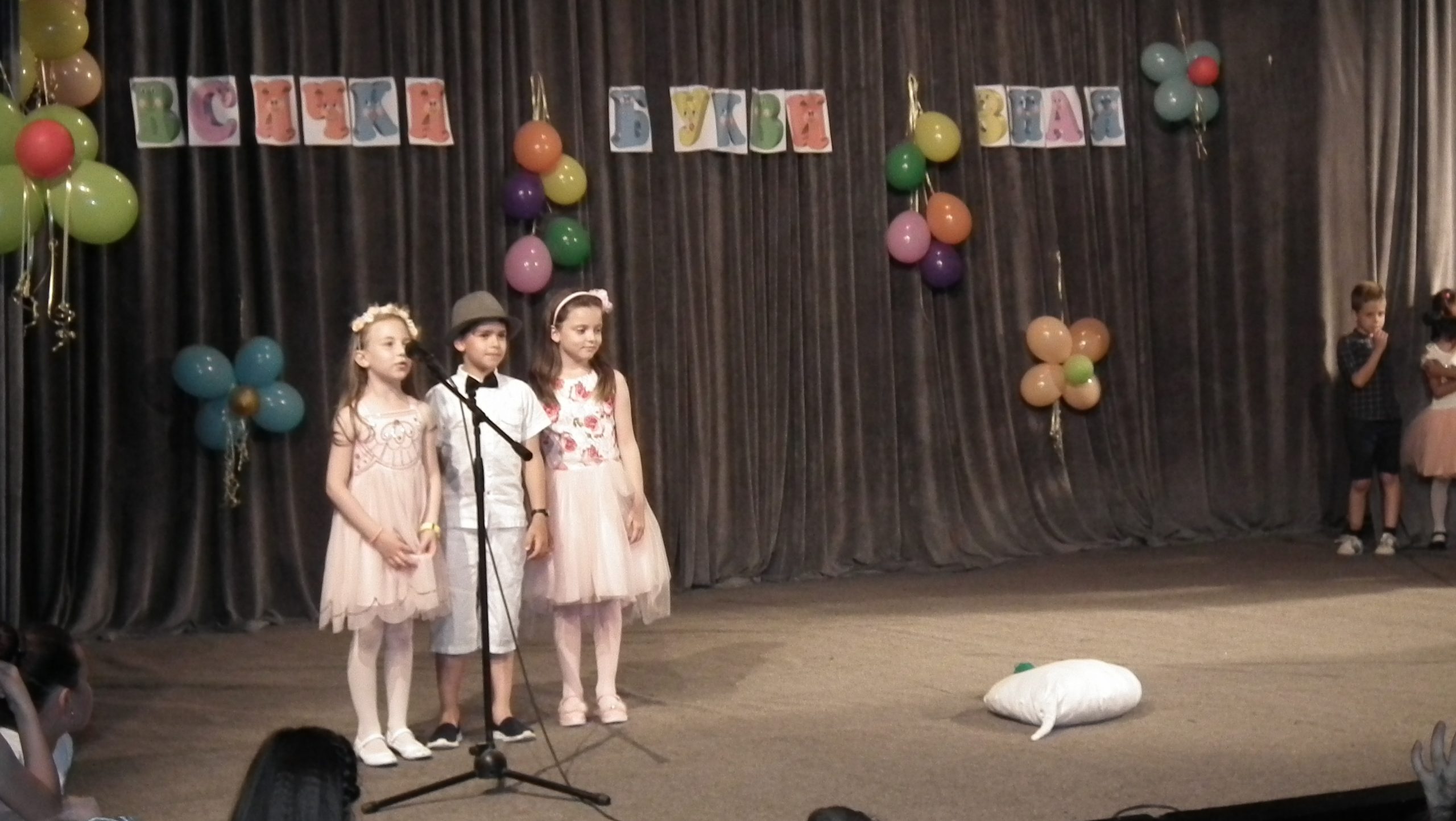 Тържеството на Iа, Iб и Iв клас – “Всички букви зная”, се проведе в ДНА. Програмата включваше рецитиране на любими стихотворения, модерни и народни танци, песни и сценки.