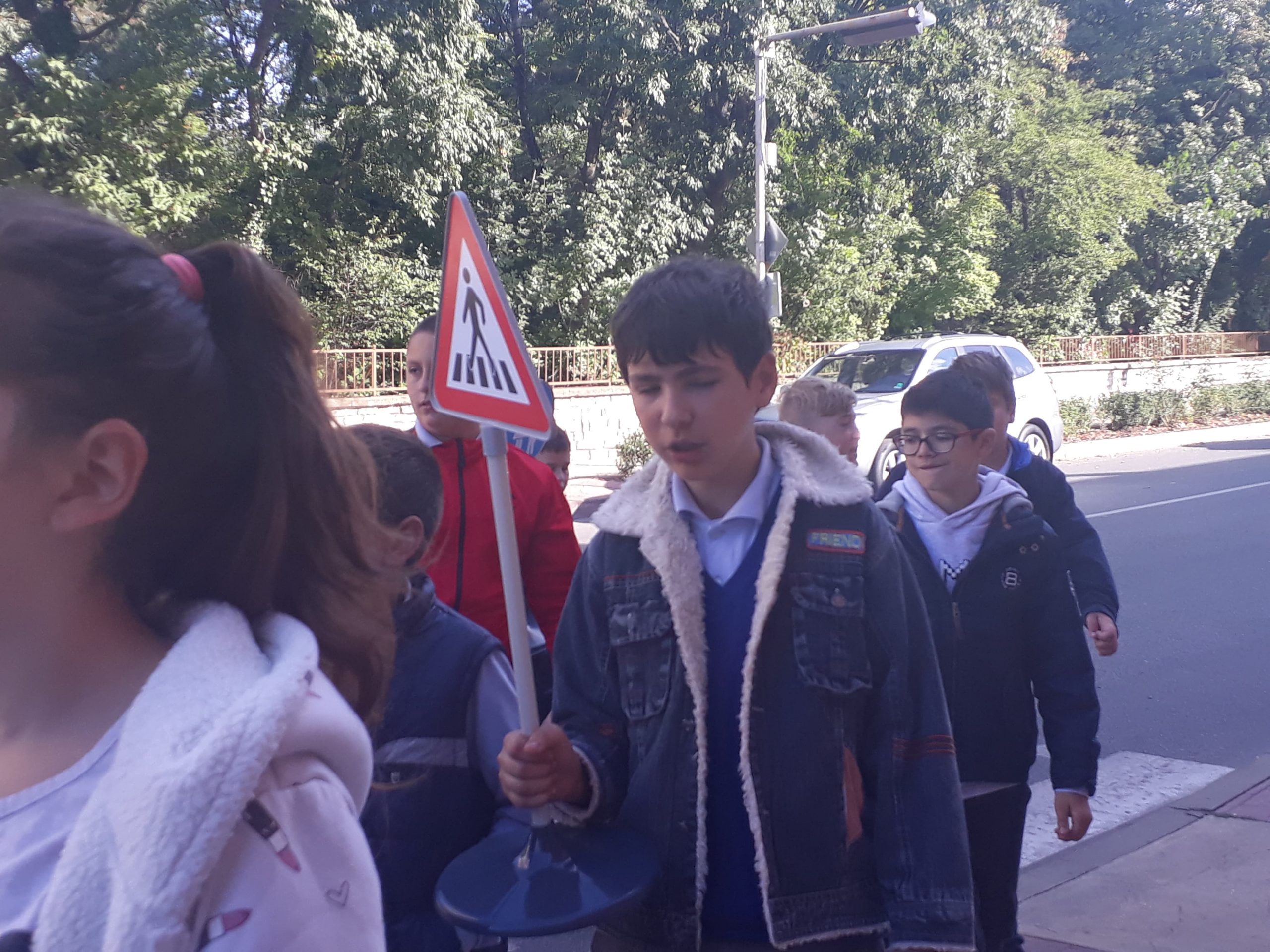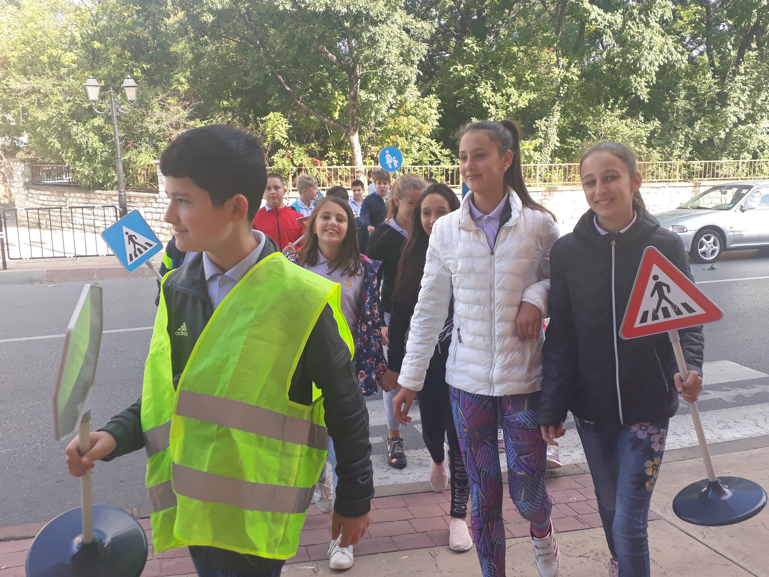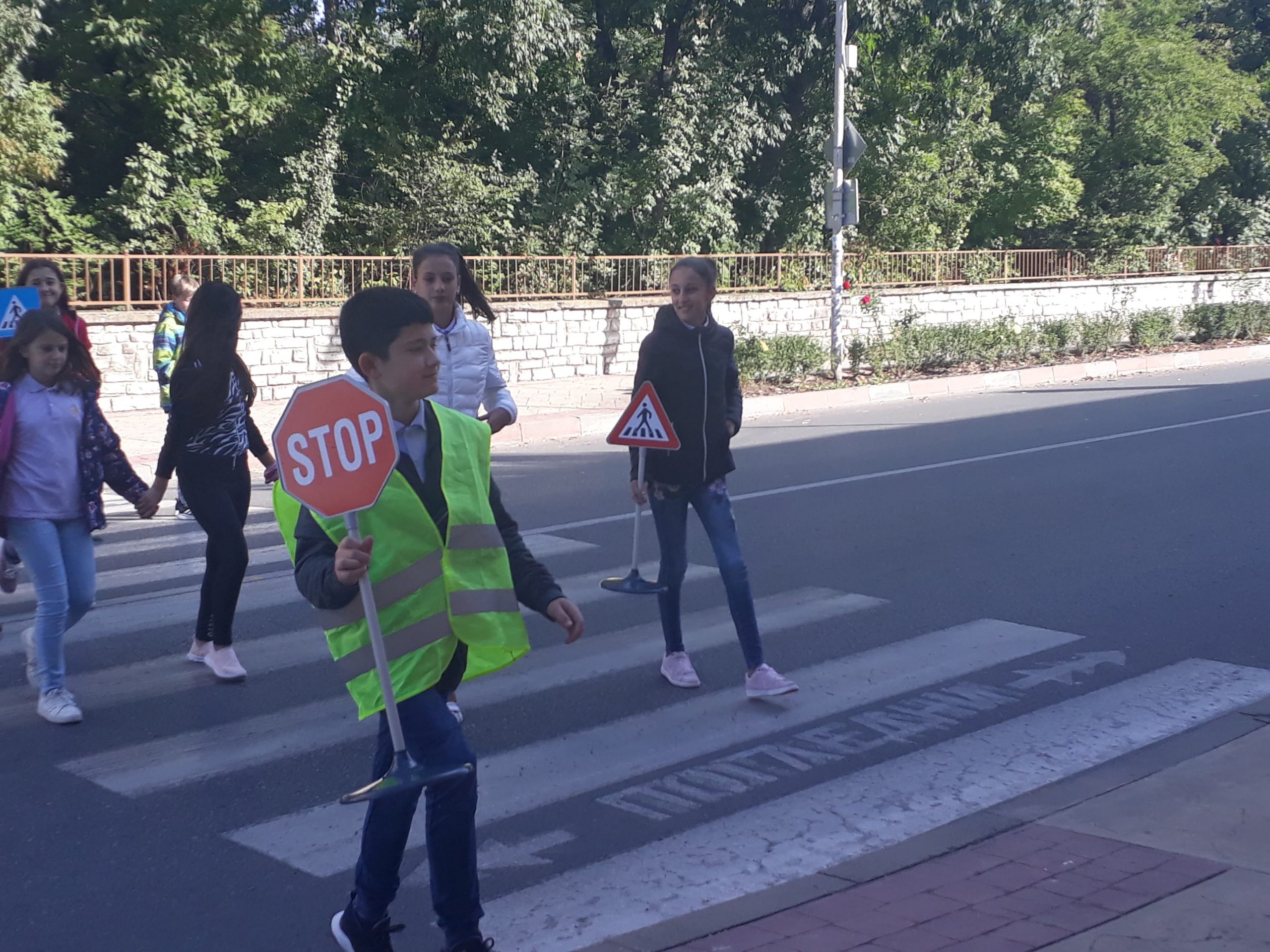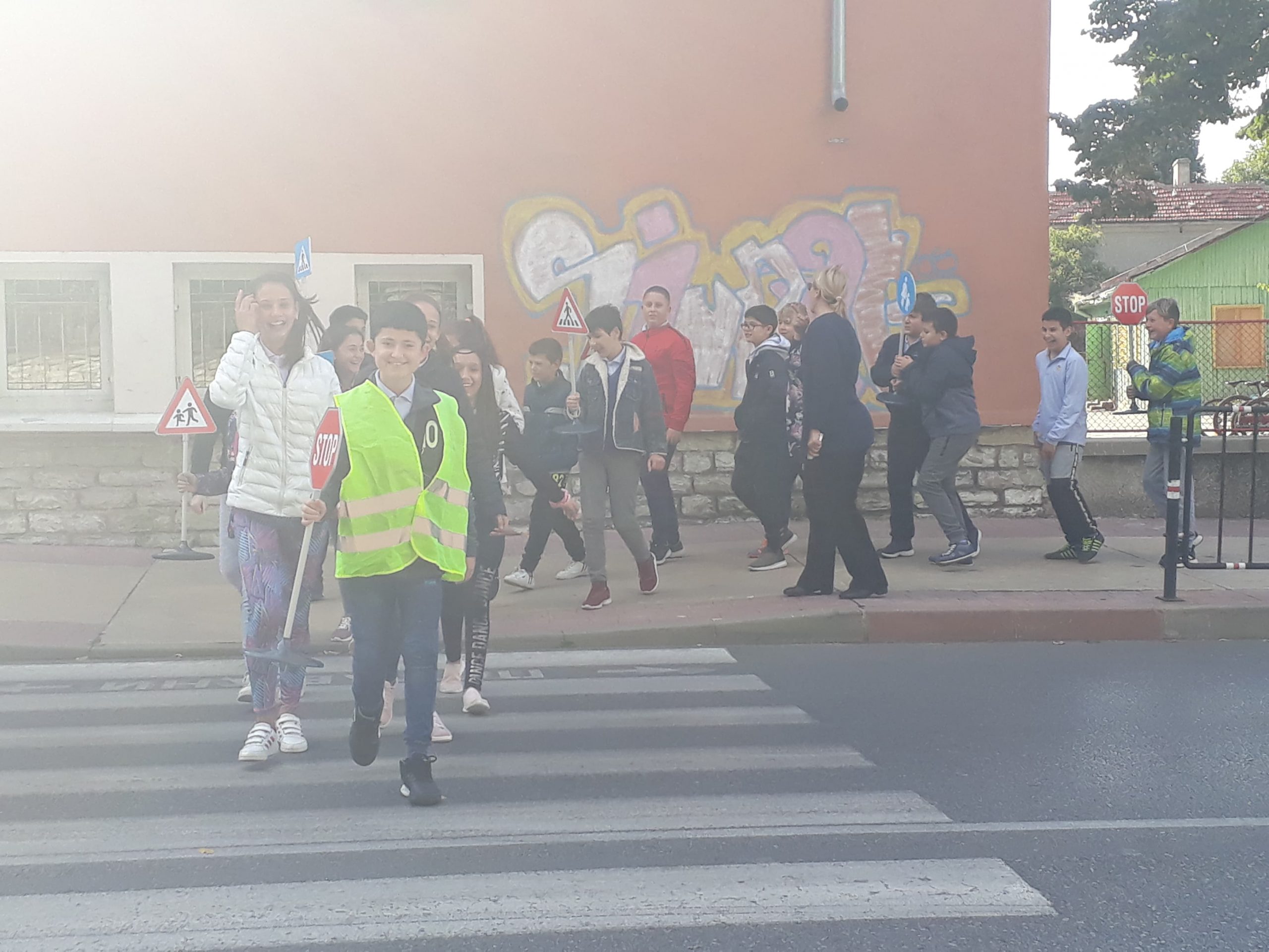 На 11.10.2019 г. ученици от VI в клас на ОУ “Димитър Петров” – Сливен осъществиха флашмоб на пешеходната пътека до училището. Целта на инициативата беше да се затвърдят знанията им по Безопасно движение по пътищата и на практика да видят реакция на водача и спирачен път, понятия, които изучават в часовете по задължителна и избираема подготовка по предмета “Човекът и природата”. Занятието имаше и възпитателен характер спрямо водачите на превозни средства, които трябва да шофират с безопасна скорост, така че да могат да реагират своевременно при съществуваща опасност на пътя. Учениците бяха “въоръжени” с пътни знаци “Стоп” , “Внимание! Пресичащо дете” и обозначителни сигнални жилетки. Бяха свидетели на съобразителност и внимание от страна на водачите на моторни превозни средства.