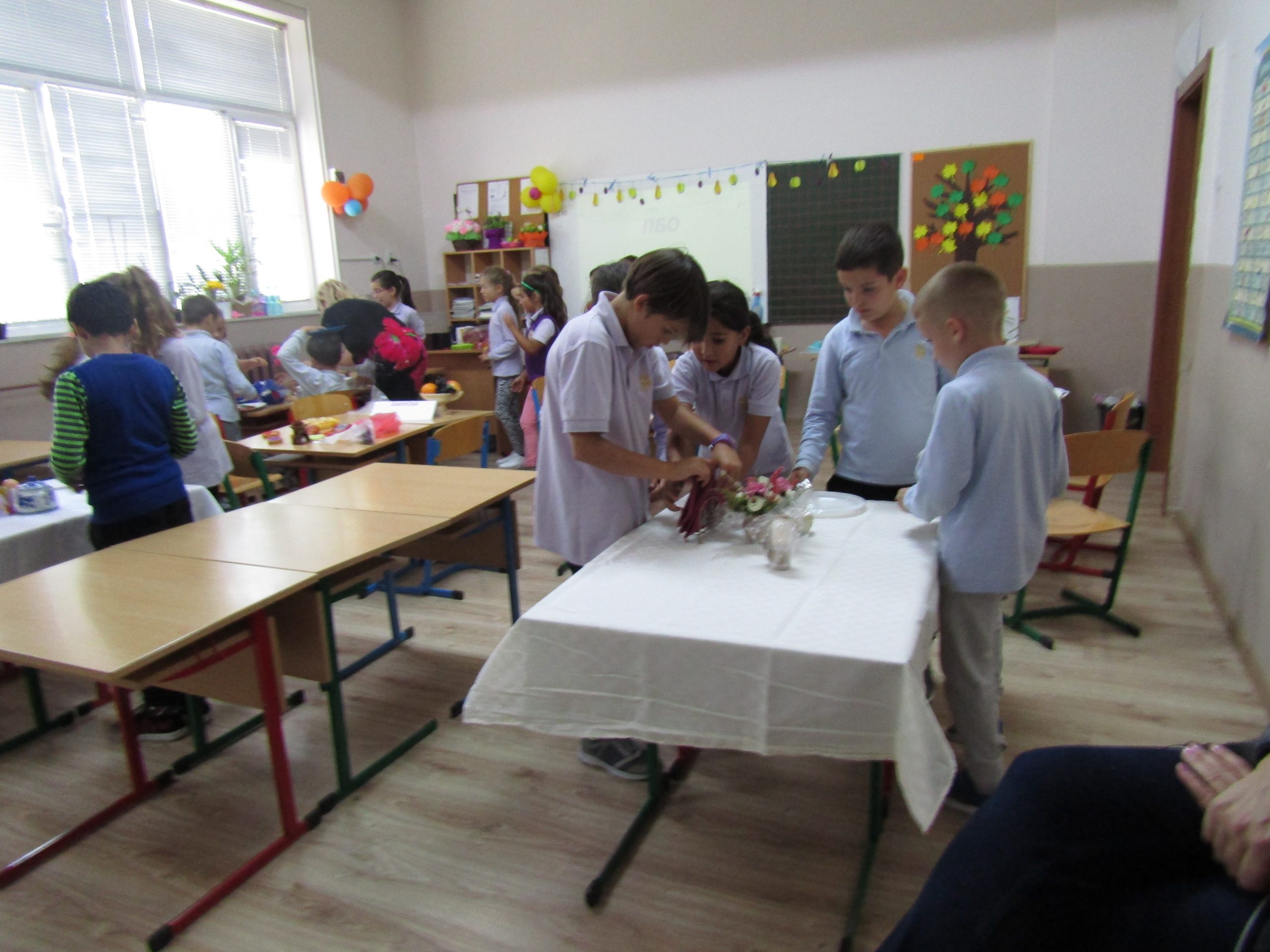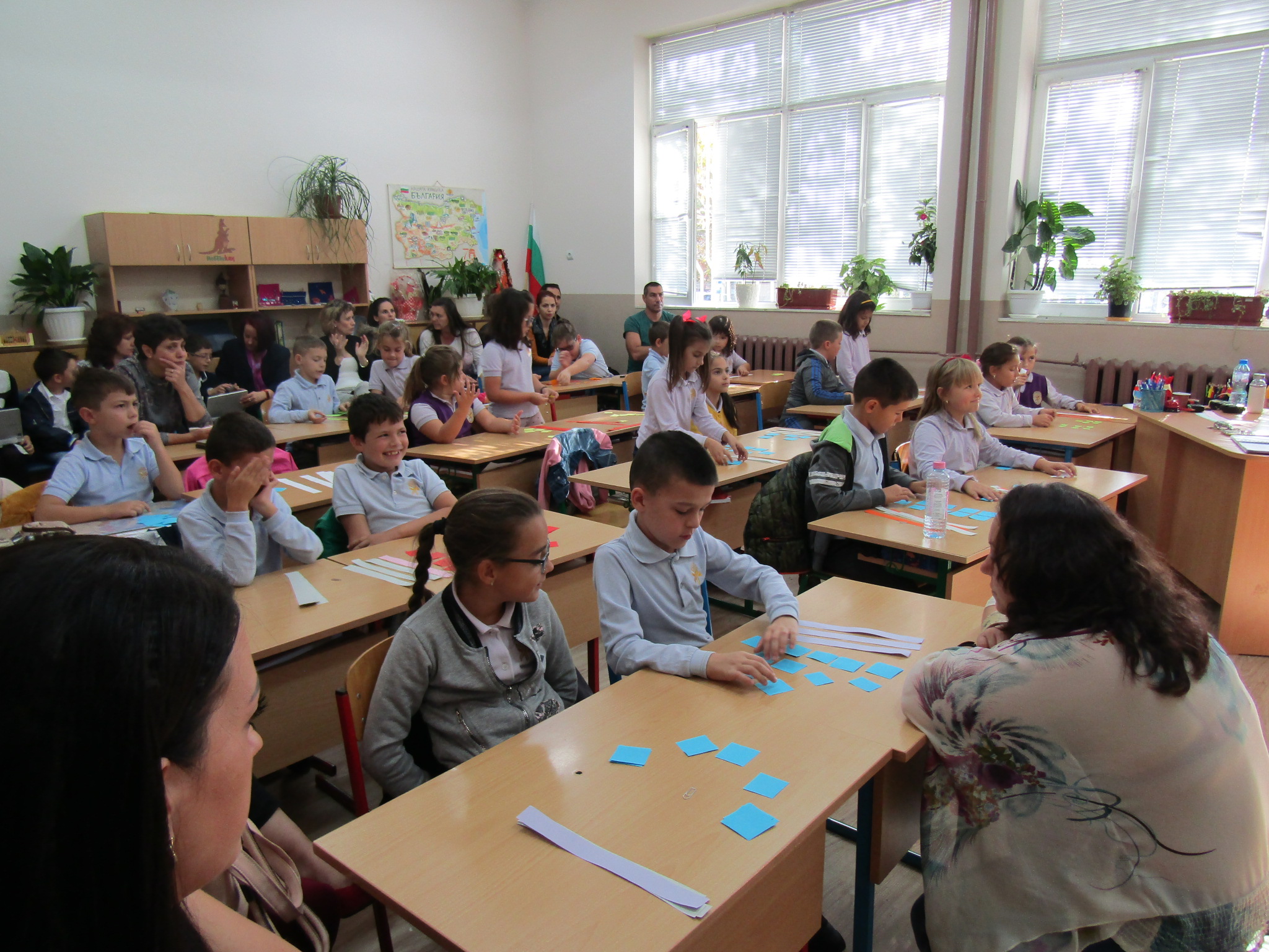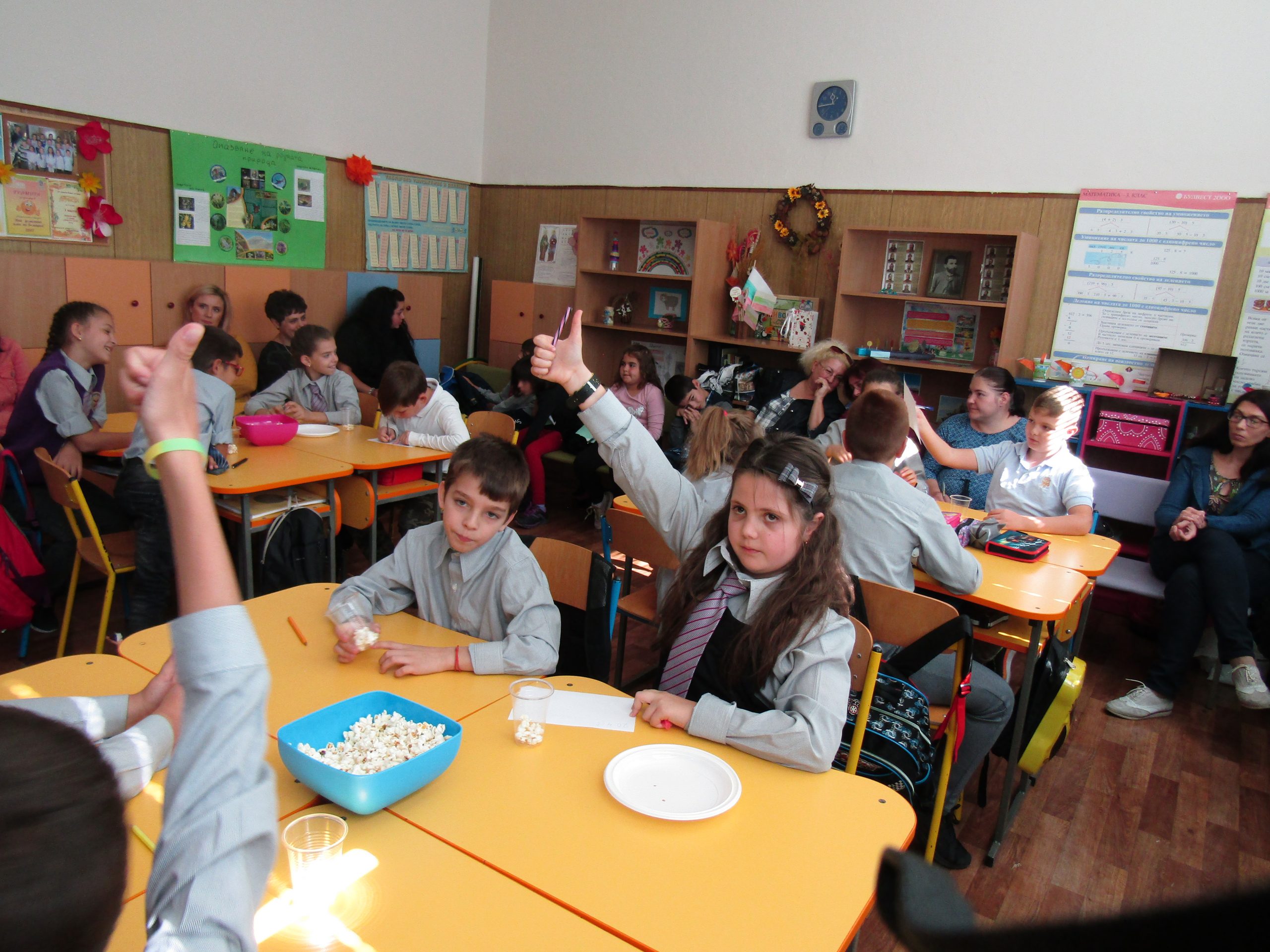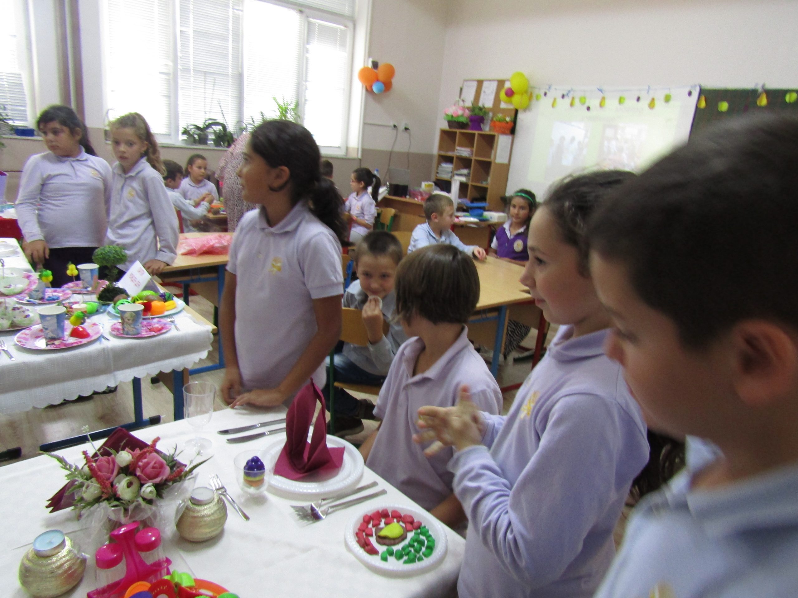 Гостите с интерес наблюдаваха открит урок при колегата Светлана Николова по проектно базирано обучение във 2. “б” клас на тема „Етика и естетика на храненето“. Те се забавляваха заедно с учениците при подготовката и сервирането на маси по различни поводи. Направиха своите изводи за това как едно училище може да се превърне в желана територия за децата, как малките ученици придобиват житейски знания и умения, които ги улесняват да изразяват и изявяват себе си.