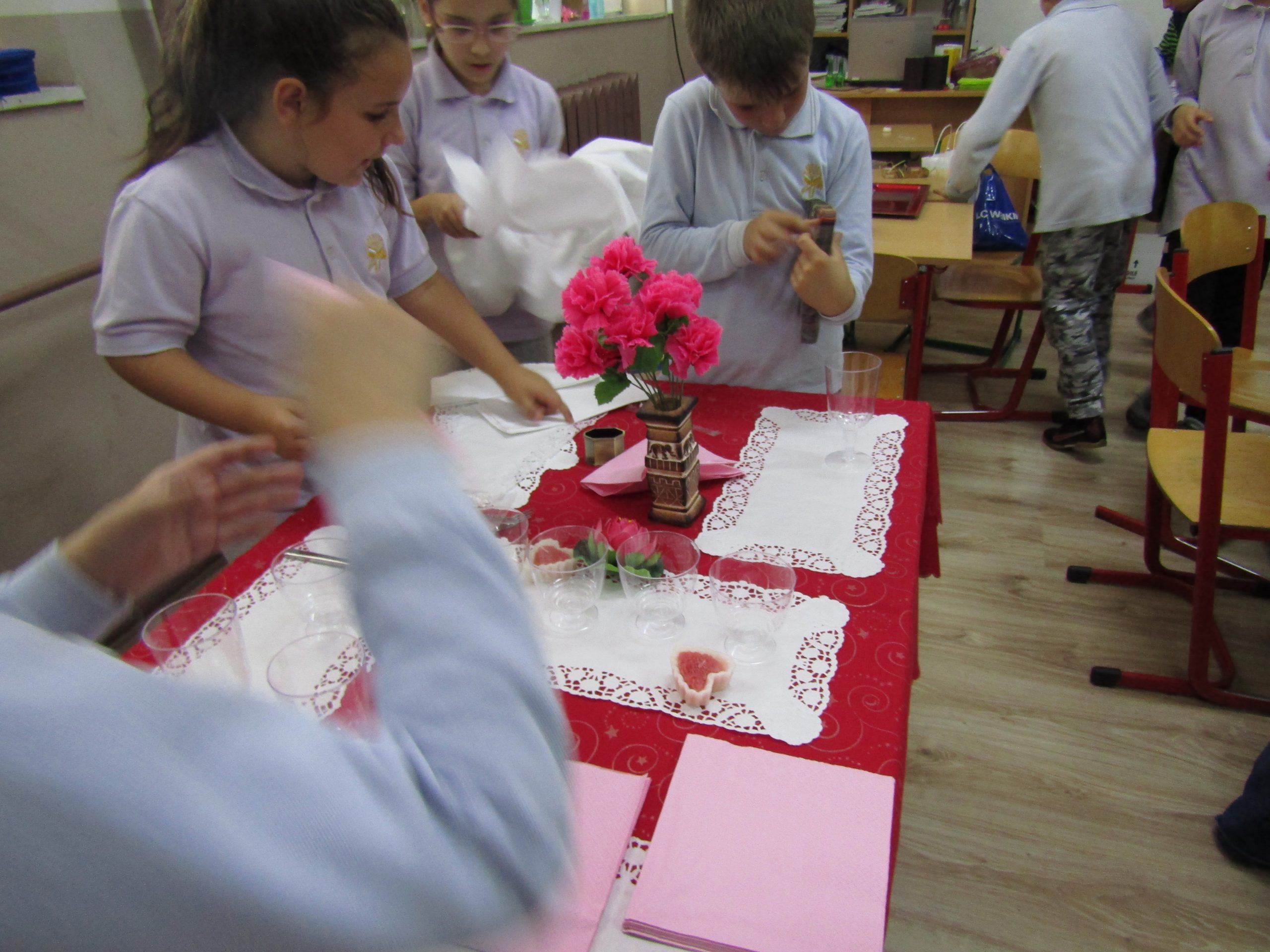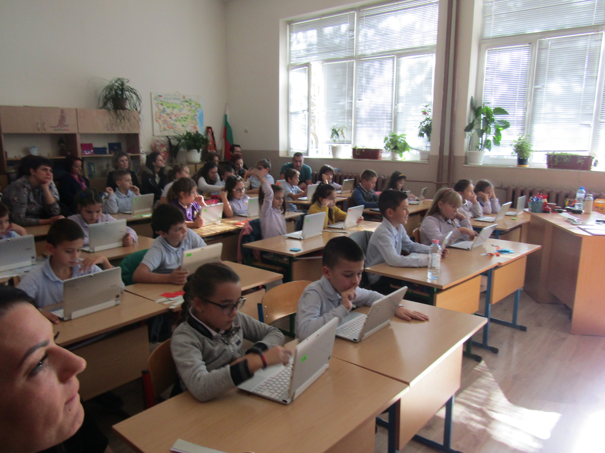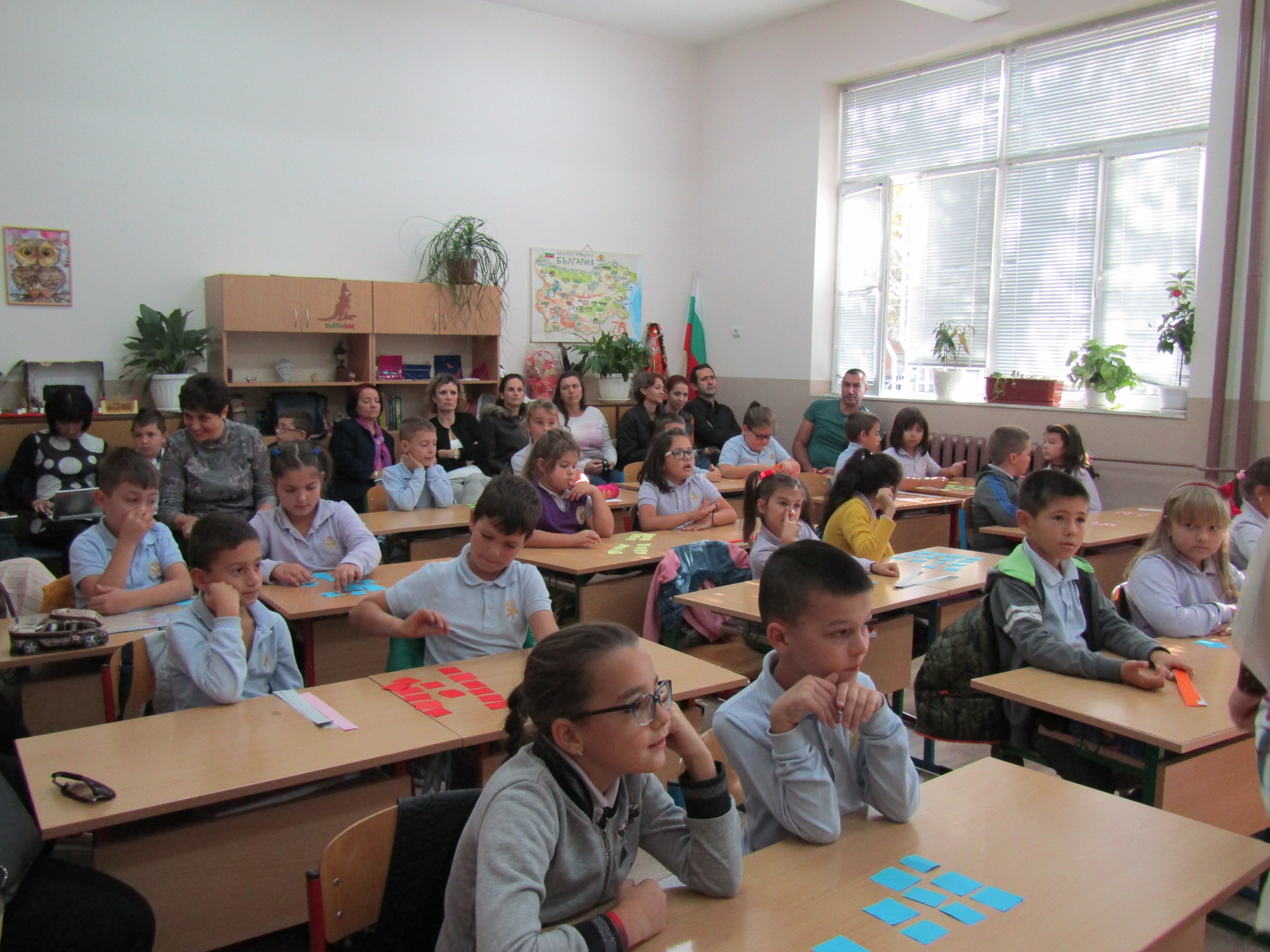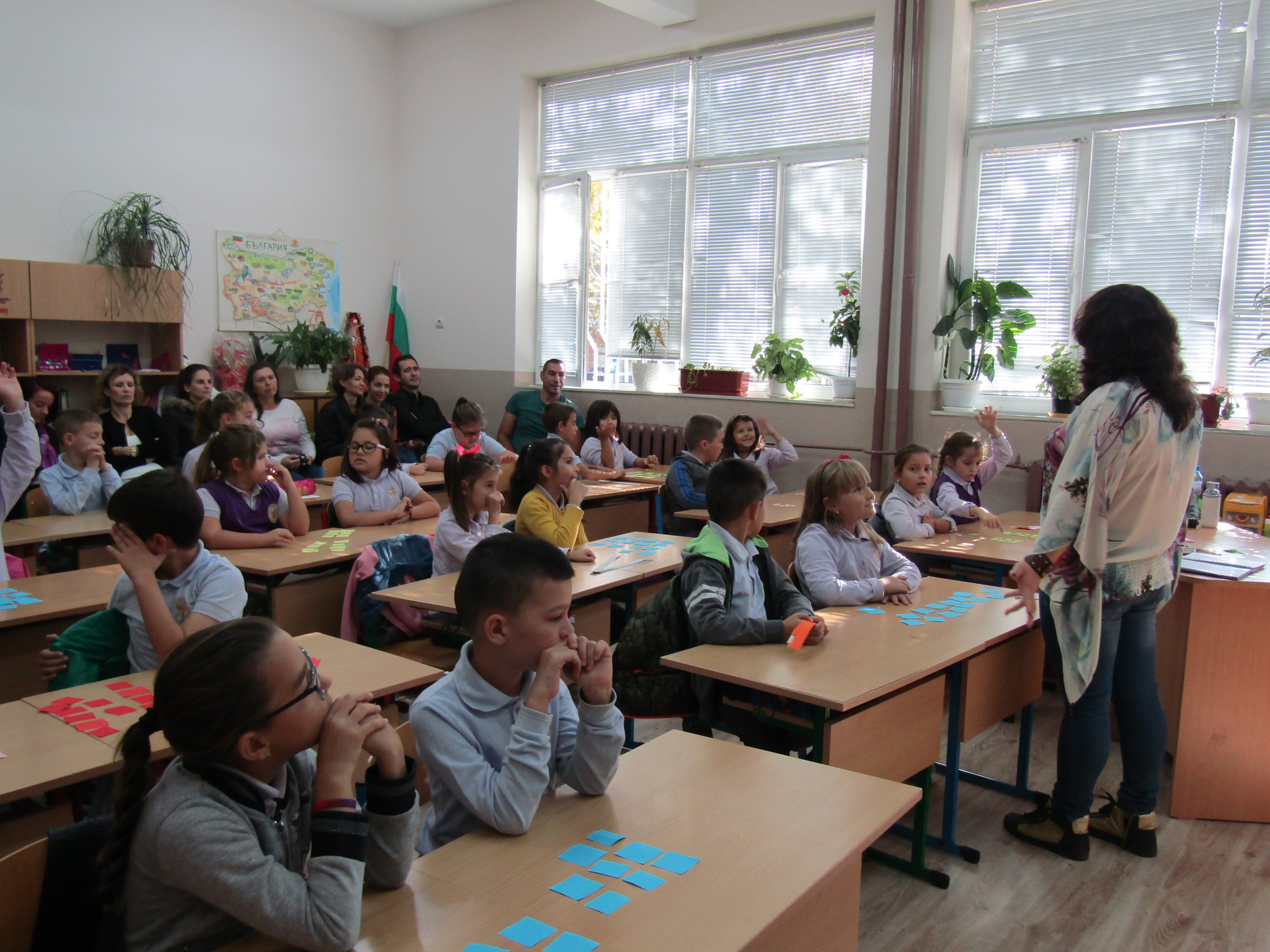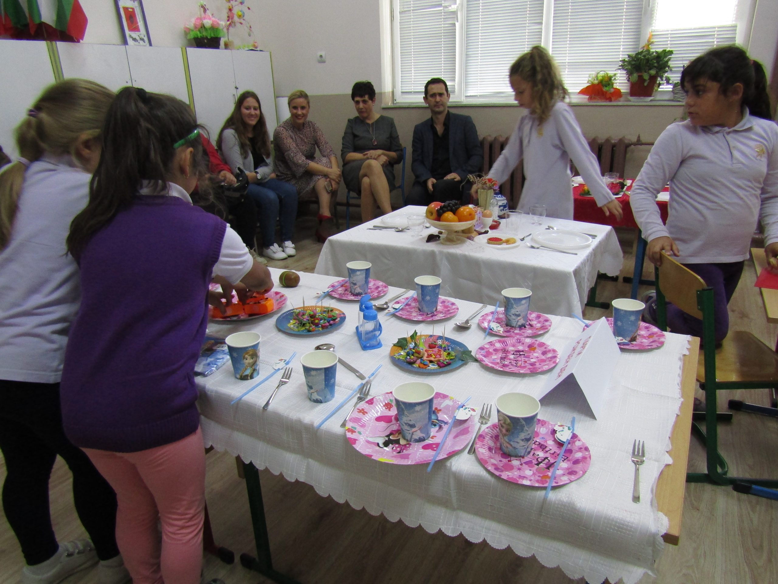Гостите с интерес наблюдаваха открит урок при колегата Светлана Николова по проектно базирано обучение във 2. “б” клас на тема „Етика и естетика на храненето“. Те се забавляваха заедно с учениците при подготовката и сервирането на маси по различни поводи. Направиха своите изводи за това как едно училище може да се превърне в желана територия за децата, как малките ученици придобиват житейски знания и умения, които ги улесняват да изразяват и изявяват себе си.
