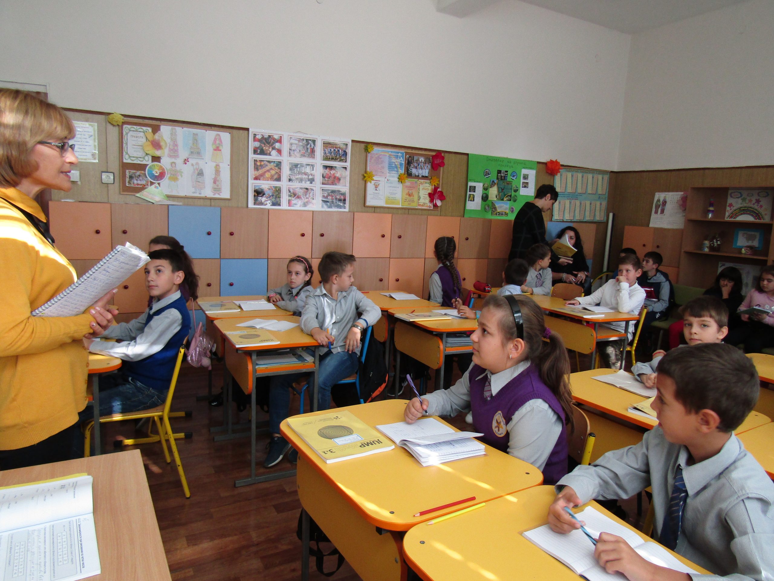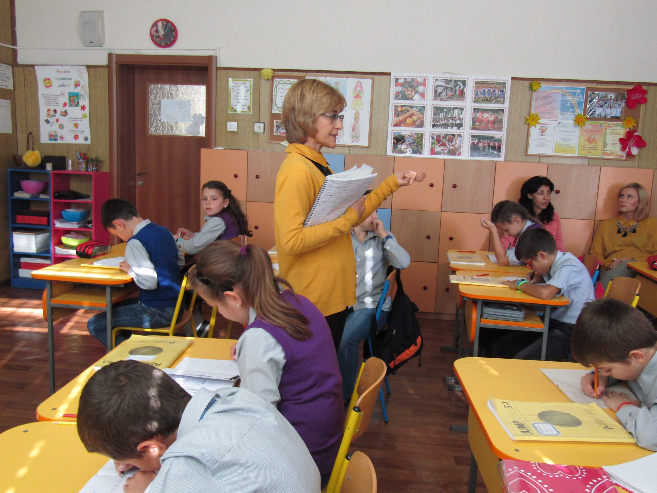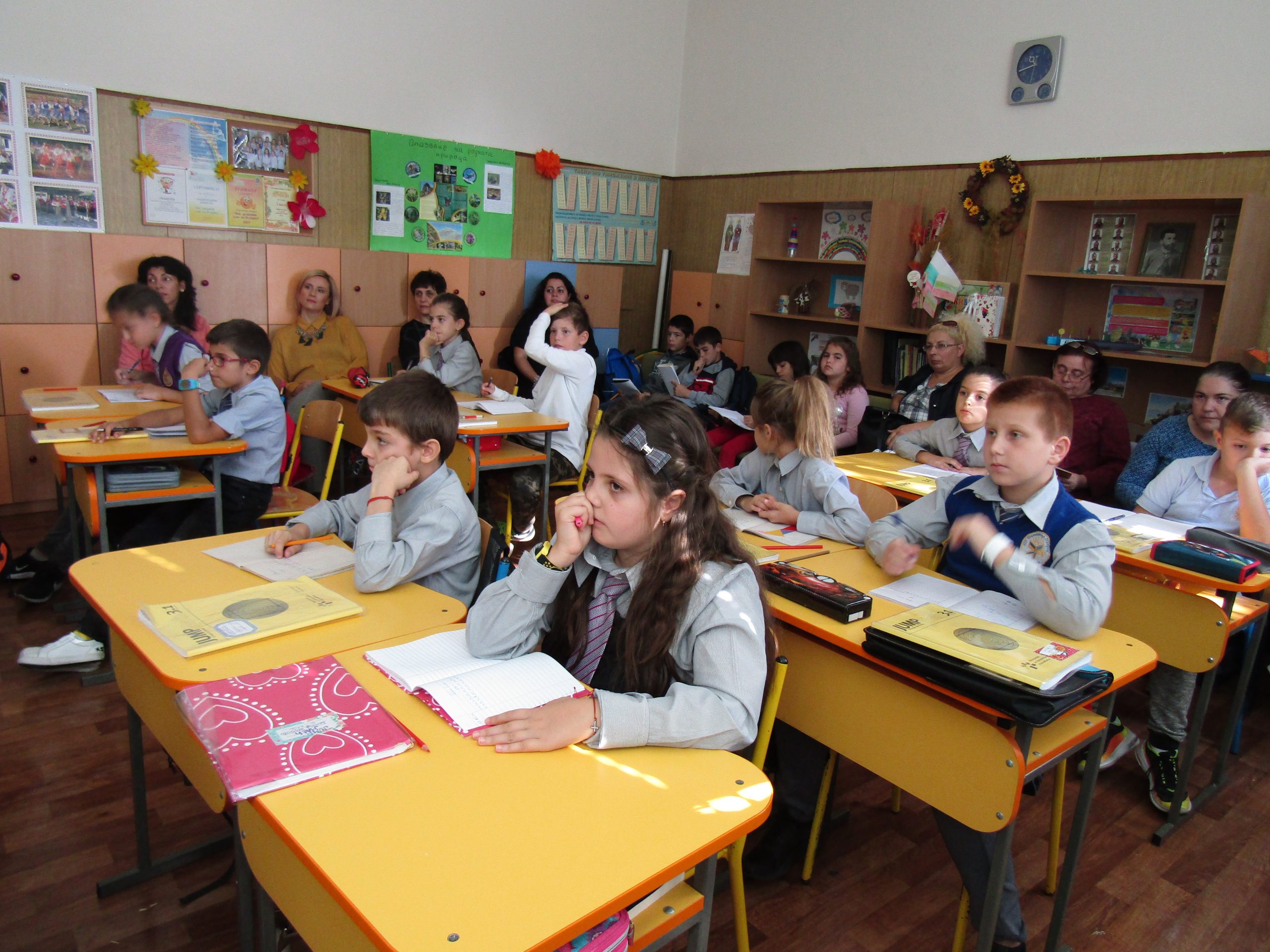 През месец октомври екипът на ОУ ”Димитър Петров” осъществи обмен на идеи и иновативни училищни практики по Национална програма “Иновации в действие”. Гостуваха ни партньори по програмата от иновативно училище ОУ “Св. Св. Кирил и Методий” – Свети Влас и неиновативно училище СУ “Отец Паисий” – с. Медковец, област Монтана. Пред учители и ученици представихме открити уроци по двете иновации – проектно базирано обучение и JUMP Math.