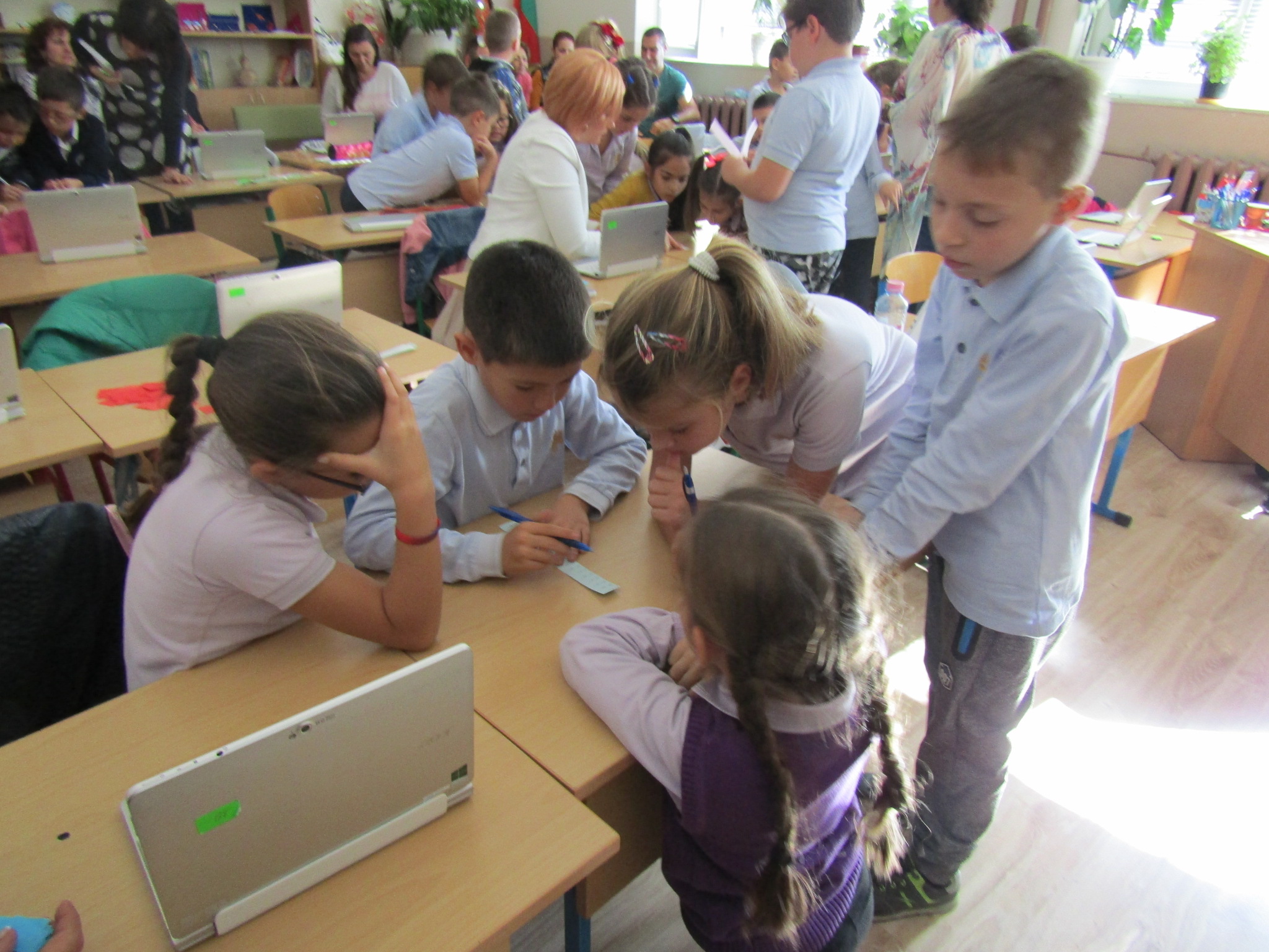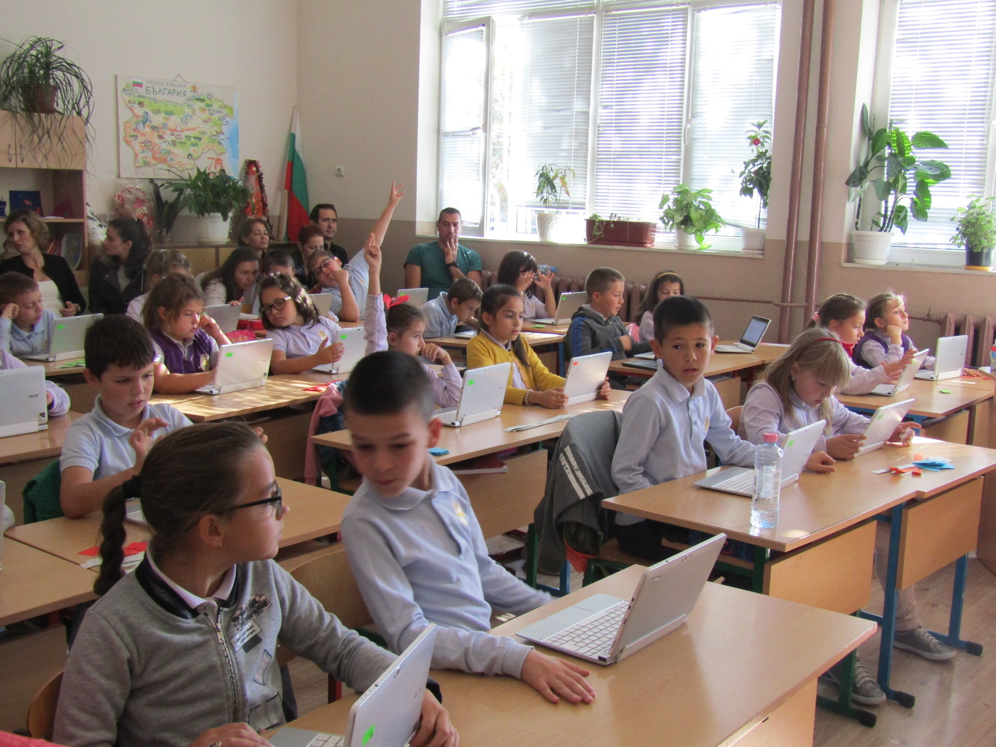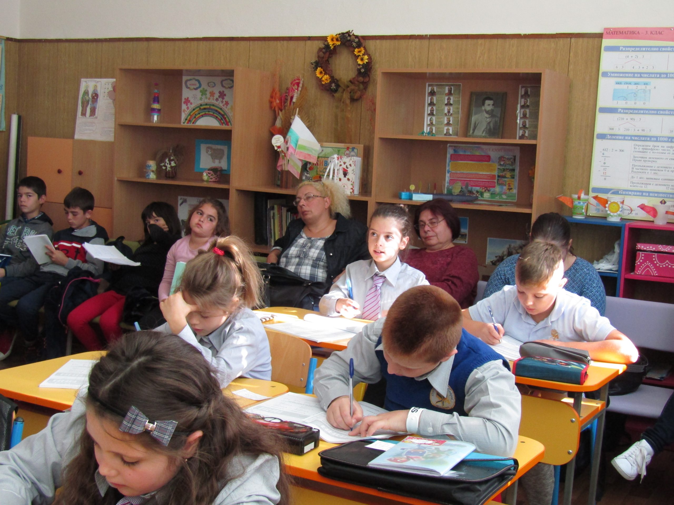 През месец октомври екипът на ОУ ”Димитър Петров” осъществи обмен на идеи и иновативни училищни практики по Национална програма “Иновации в действие”. Гостуваха ни партньори по програмата от иновативно училище ОУ “Св. Св. Кирил и Методий” – Свети Влас и неиновативно училище СУ “Отец Паисий” – с. Медковец, област Монтана. Пред учители и ученици представихме открити уроци по двете иновации – проектно базирано обучение и JUMP Math.