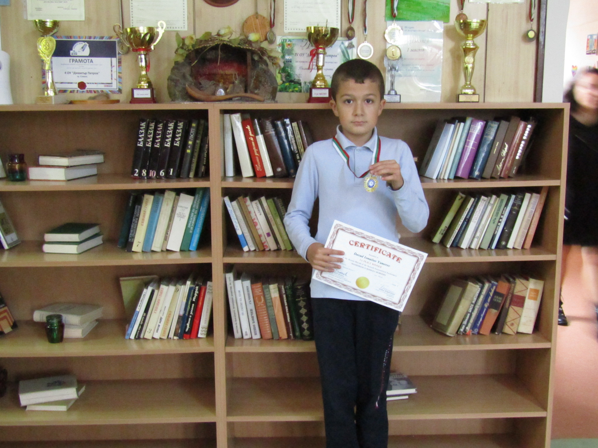 Златен медал и сертификат за първо място получи Давуд Юмеров от IV б клас, бурно аплодиран от своите съученици.