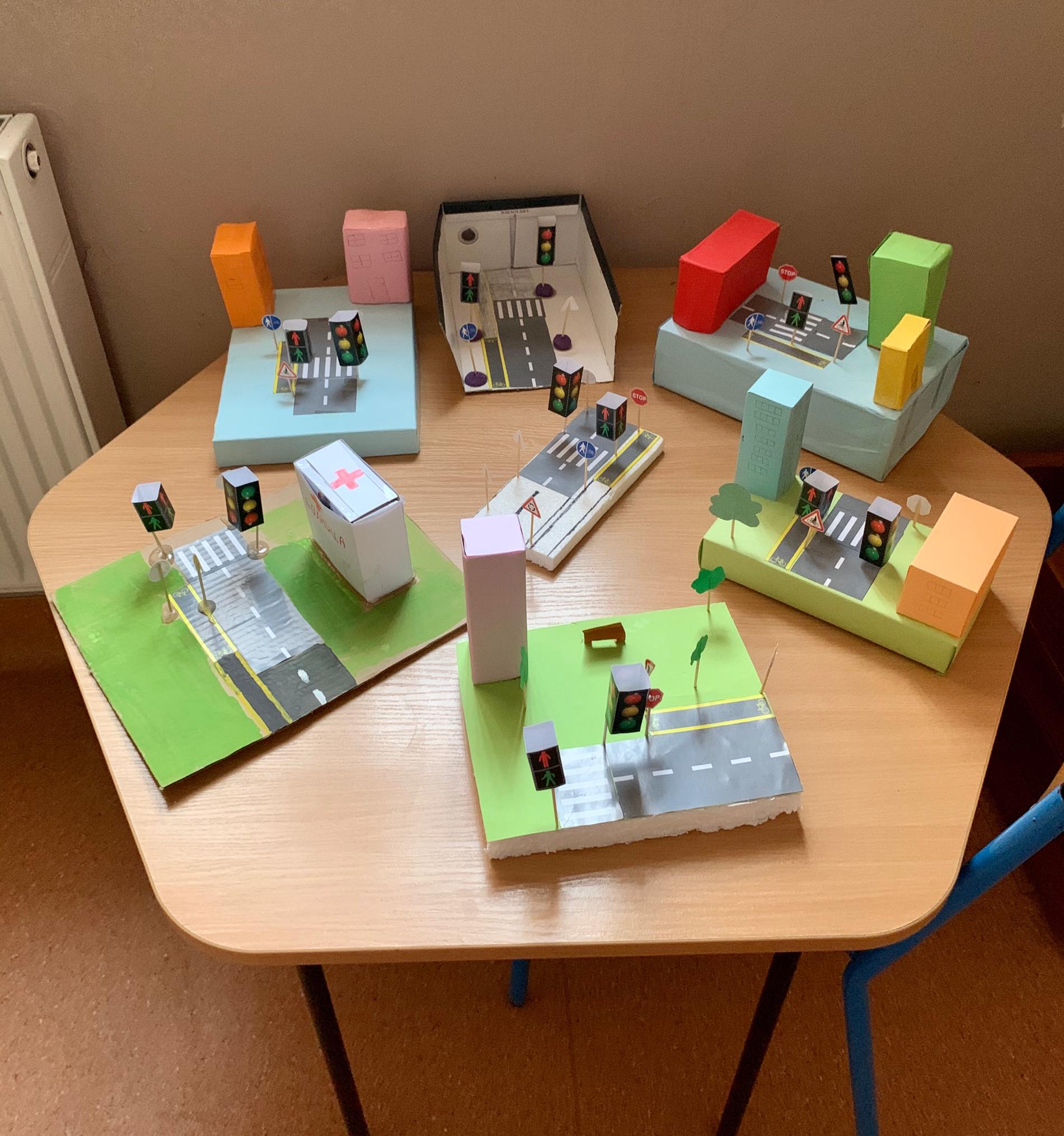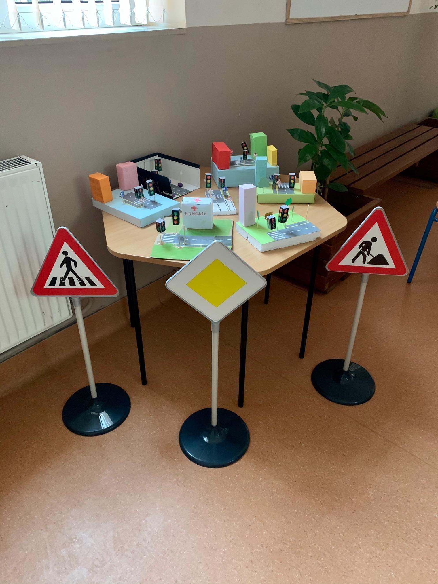 В тази връзка, през изминалата седмица, в която се отбеляза Световният ден в памет на загиналите при пътни транспортни произшествия, учениците от начален етап на образованието в ОУ „Димитър Петров” бяха запознати  с безопасното и опасното движение по пътищата, а също така и с някои от знаците и маркировките по тях. За да изразят своето съчувствие към жертвите на пътя и разбирането си към важността на опазването на собствения си и на другите живот, в часовете по „Безопасност на движение по пътищата” те изработиха и предоставиха за изложба в самото училище много рисунки и макети – на безопасно кръстовище, на безопасен за движение квартал и др.