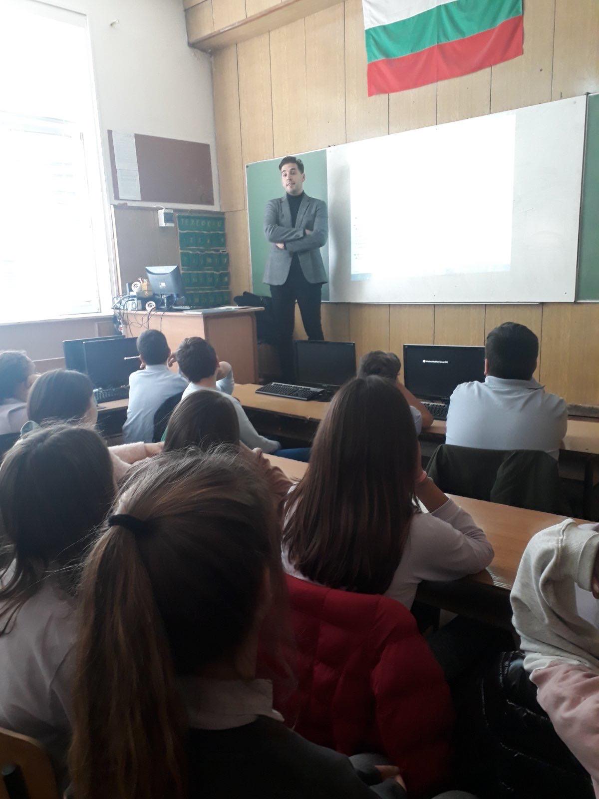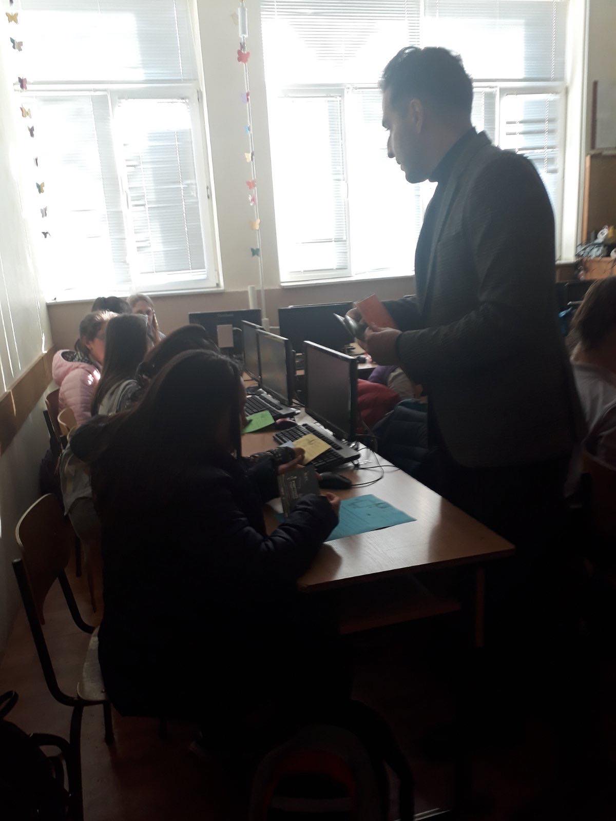 На 09.12.2019г., г-н Владимир Друмев, секретар на Местната комисия за борба с трафика на хора, бе гост лектор в час на класа при VI а клас. Той запозна шестокласниците със същността на проблема ,,трафик на хора,, и опасностите, които дебнат в интернет пространството.