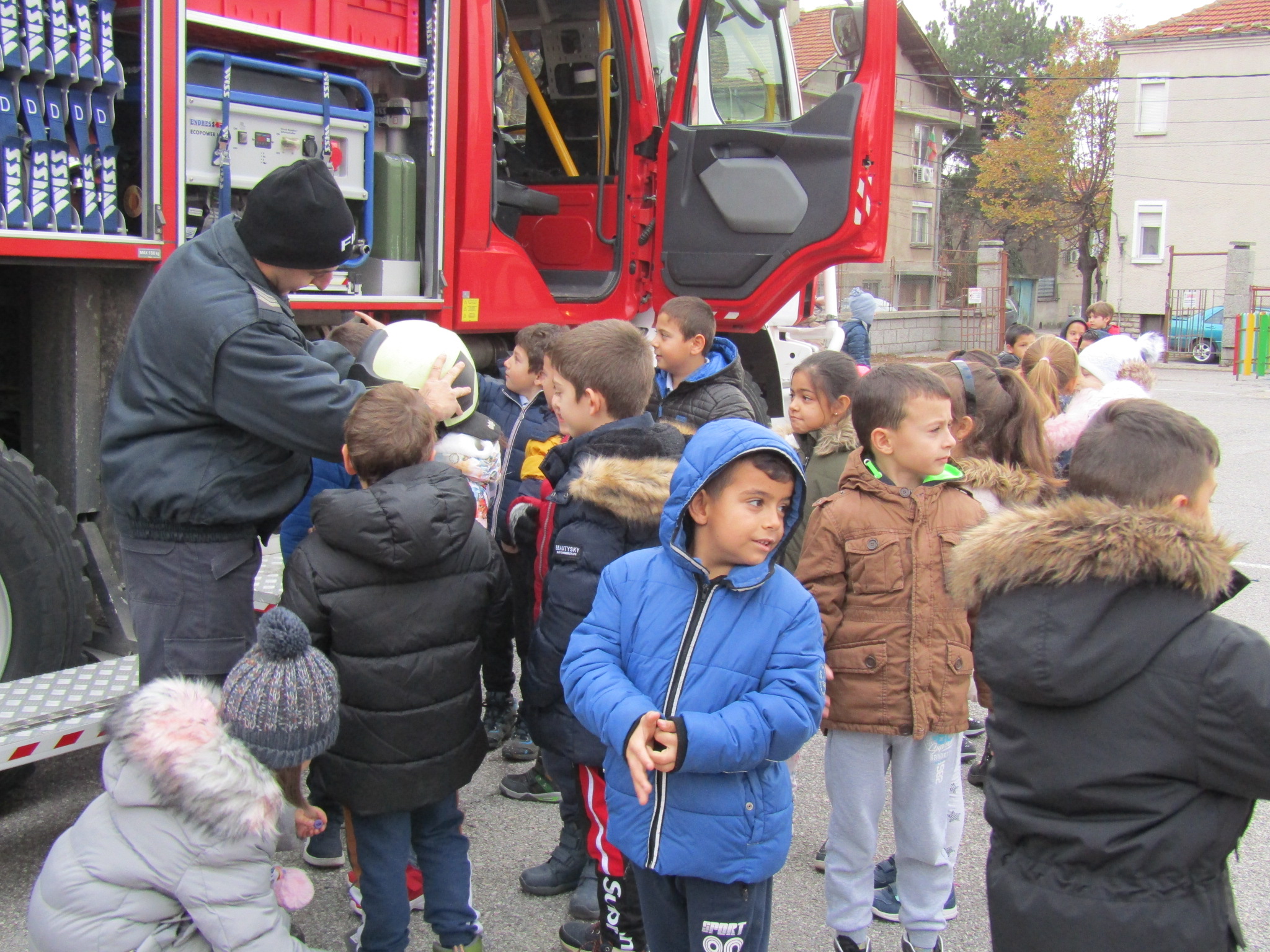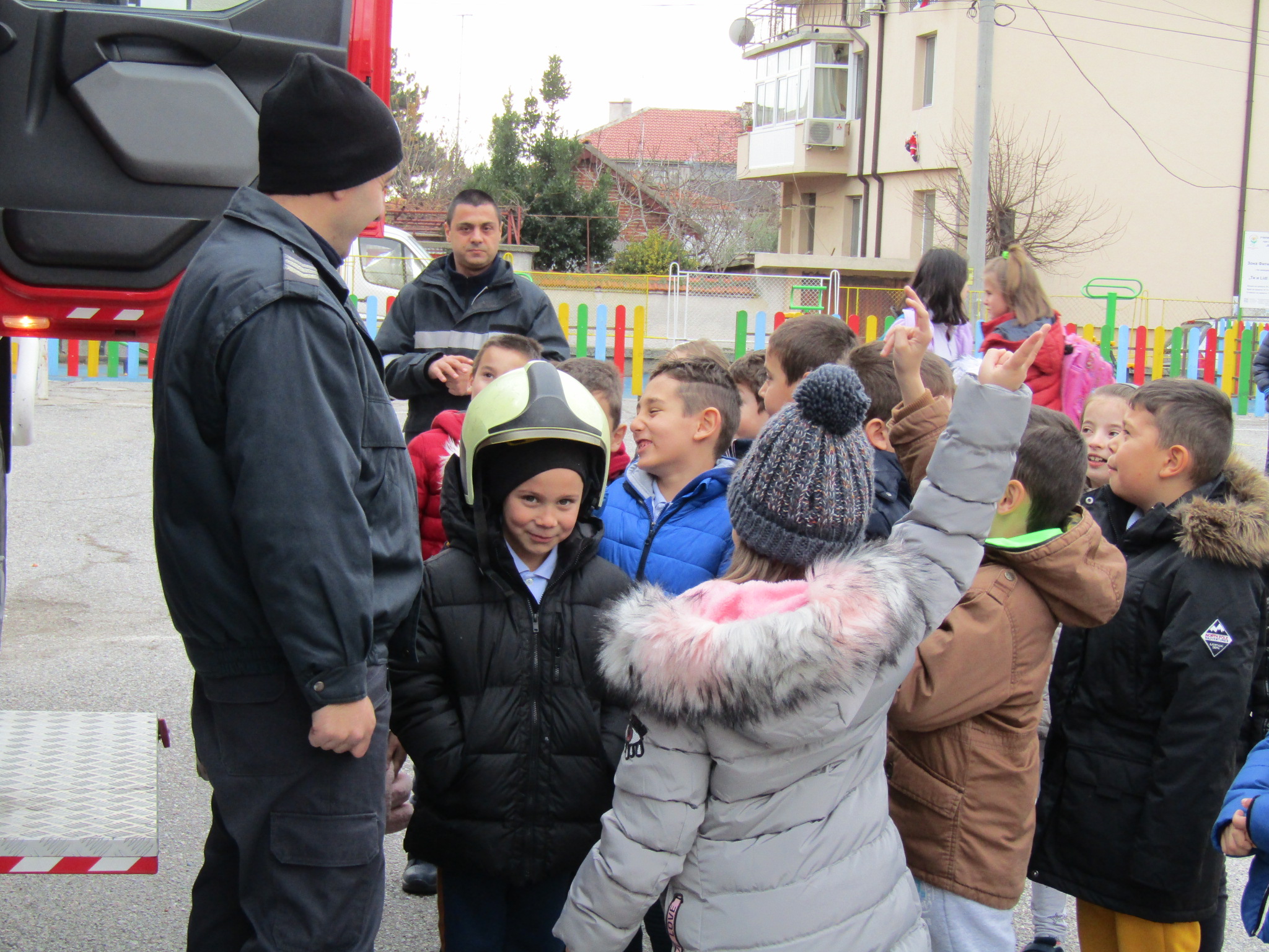 Децата проявиха голям интерес към поучителния урок на пожарникарите.