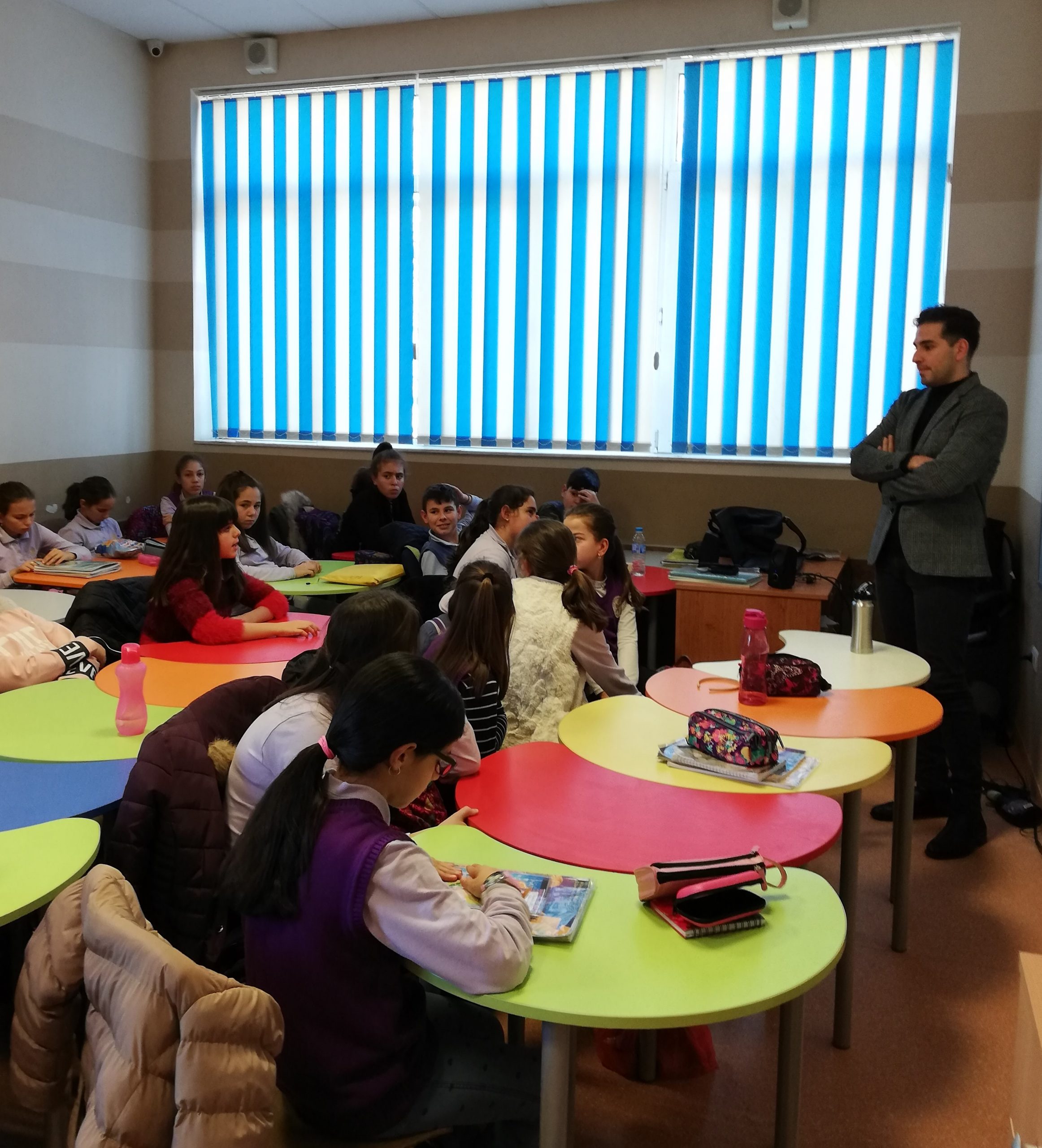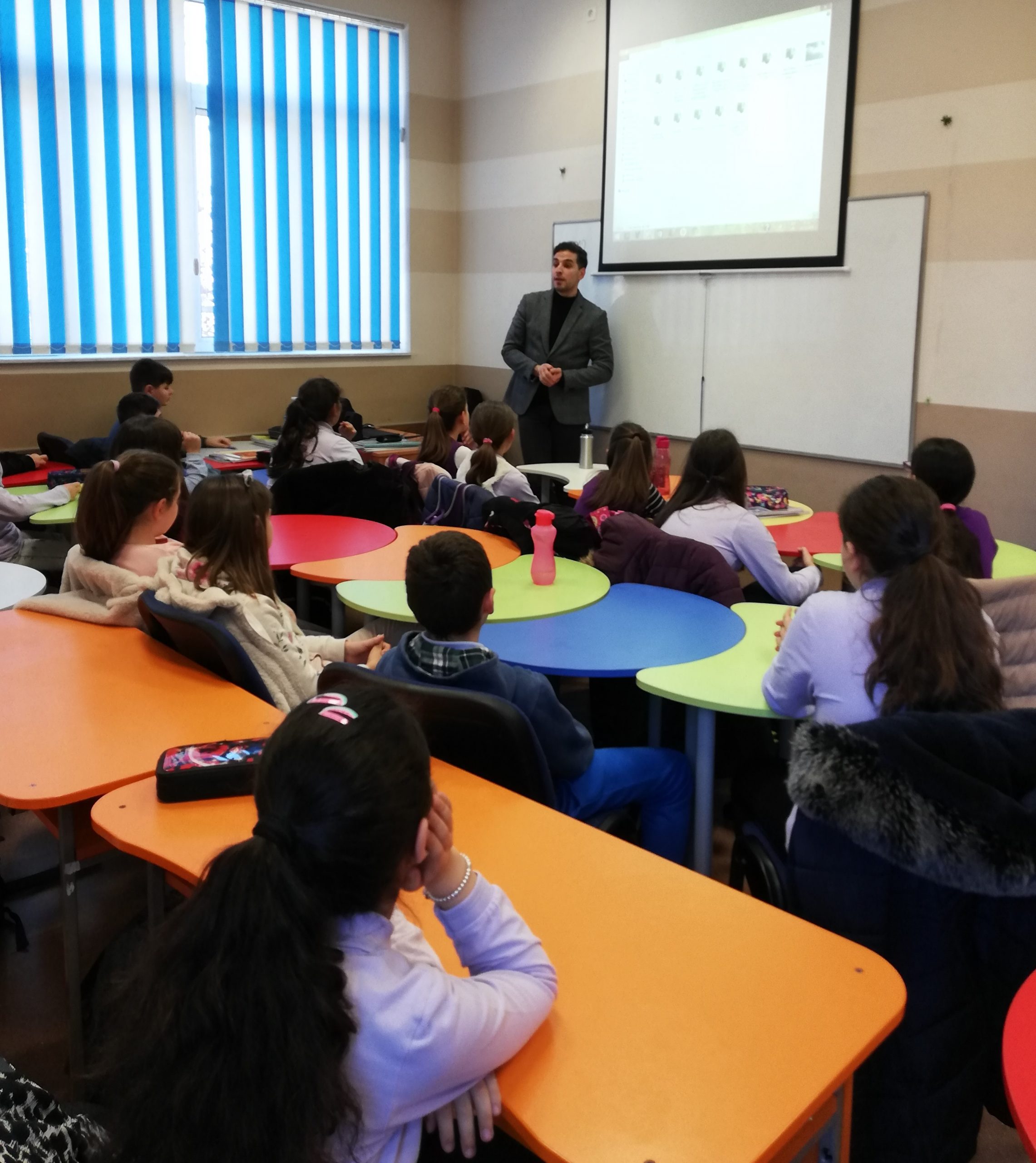 При учениците от V „а“ клас гостува г-н Владимир Друмев от МКБТХ- Местната комисия за борба с трафика на хора в гр.Сливен. Той бе поканен в час на класа, за да разясни на учениците за опасностите в интернет пространството. Беше застъпена и темата за трафика на хора. Г-н Друмев изнесе беседа и показа нагледни материали . Темата беше завладяваща и интересна за всички, учениците задаваха много въпроси и получиха отговор на своите запитания. Те си тръгнаха по обогатени за опасностите, които се крият в интернет.