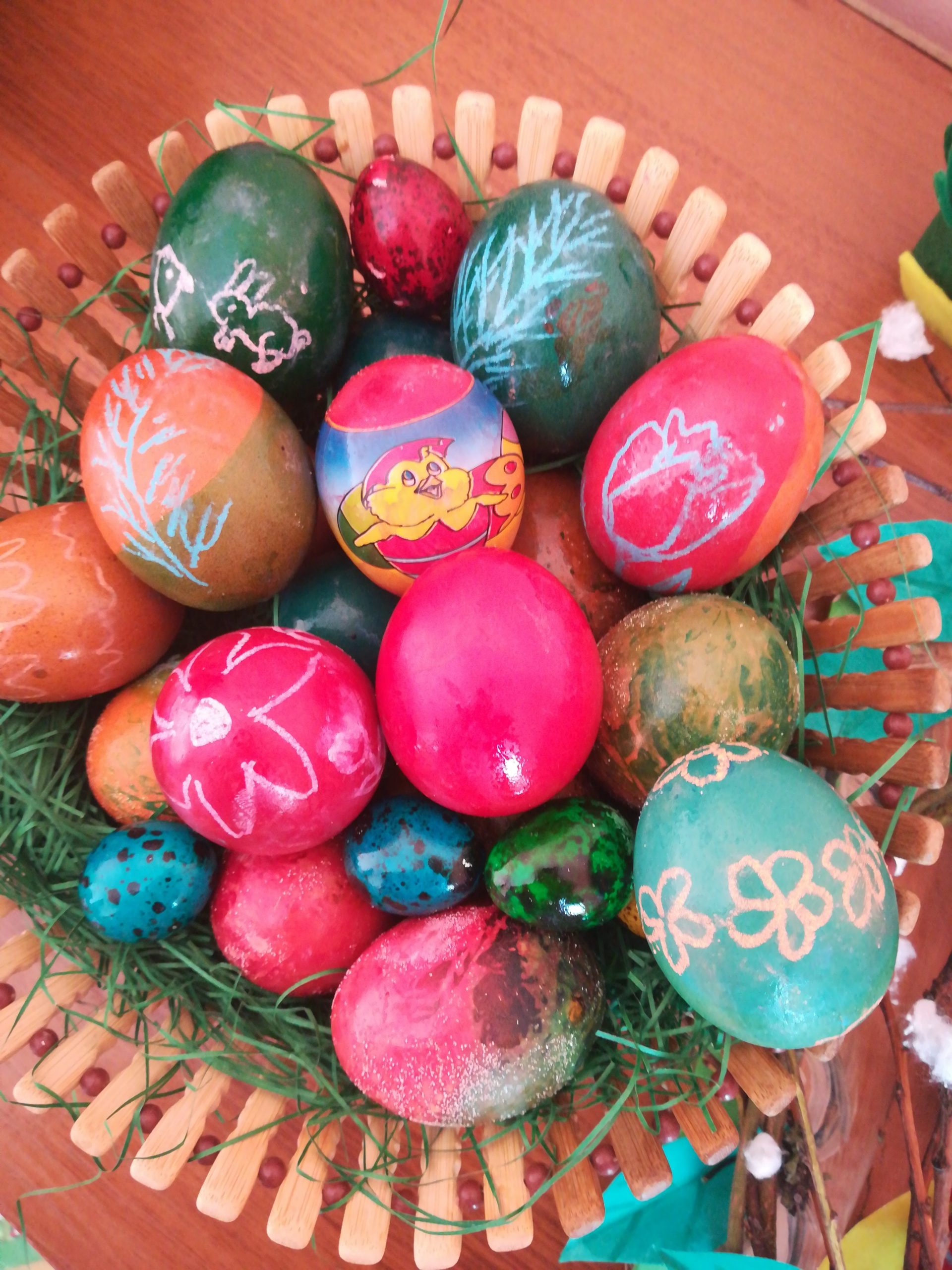 На 16.04.20г. беше проведен час – Занимания по интереси под надслов ,,Шарени яйца”. Благодарение на осъществената видео – връзка, учениците от II в клас боядисаха своите яйца. Беше забавно и поучително. Научихме много за празника Великден, както и защо първото яйце е червено.