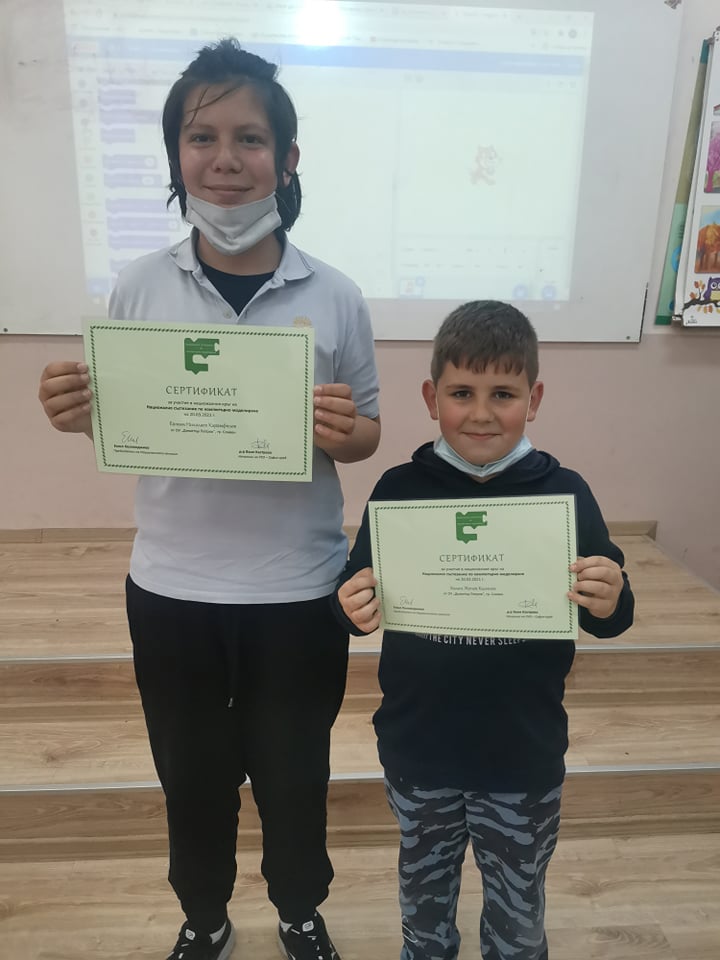 За успешното си представяне в последния кръг на състезанието по компютърно моделиране, грамоти от Националната комисия получиха Калин Калинов от IV В клас и Евтим Карамфилов от IV Б клас.