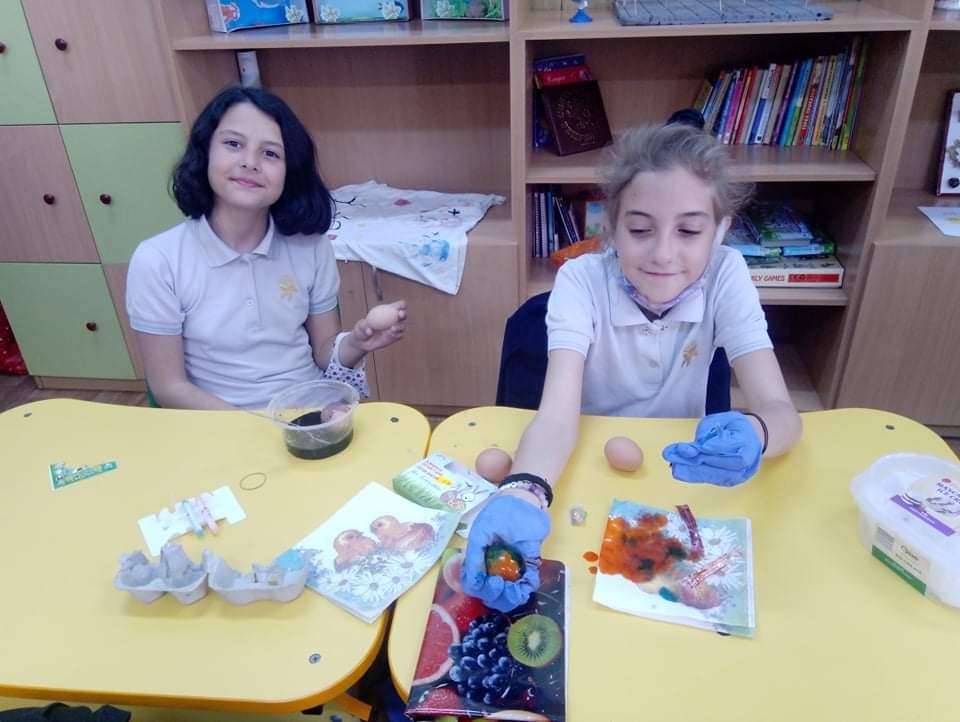 Учениците използваха различни техники, за да боядисат и украсят великденските яйца. Подготвиха и празнична трапеза.