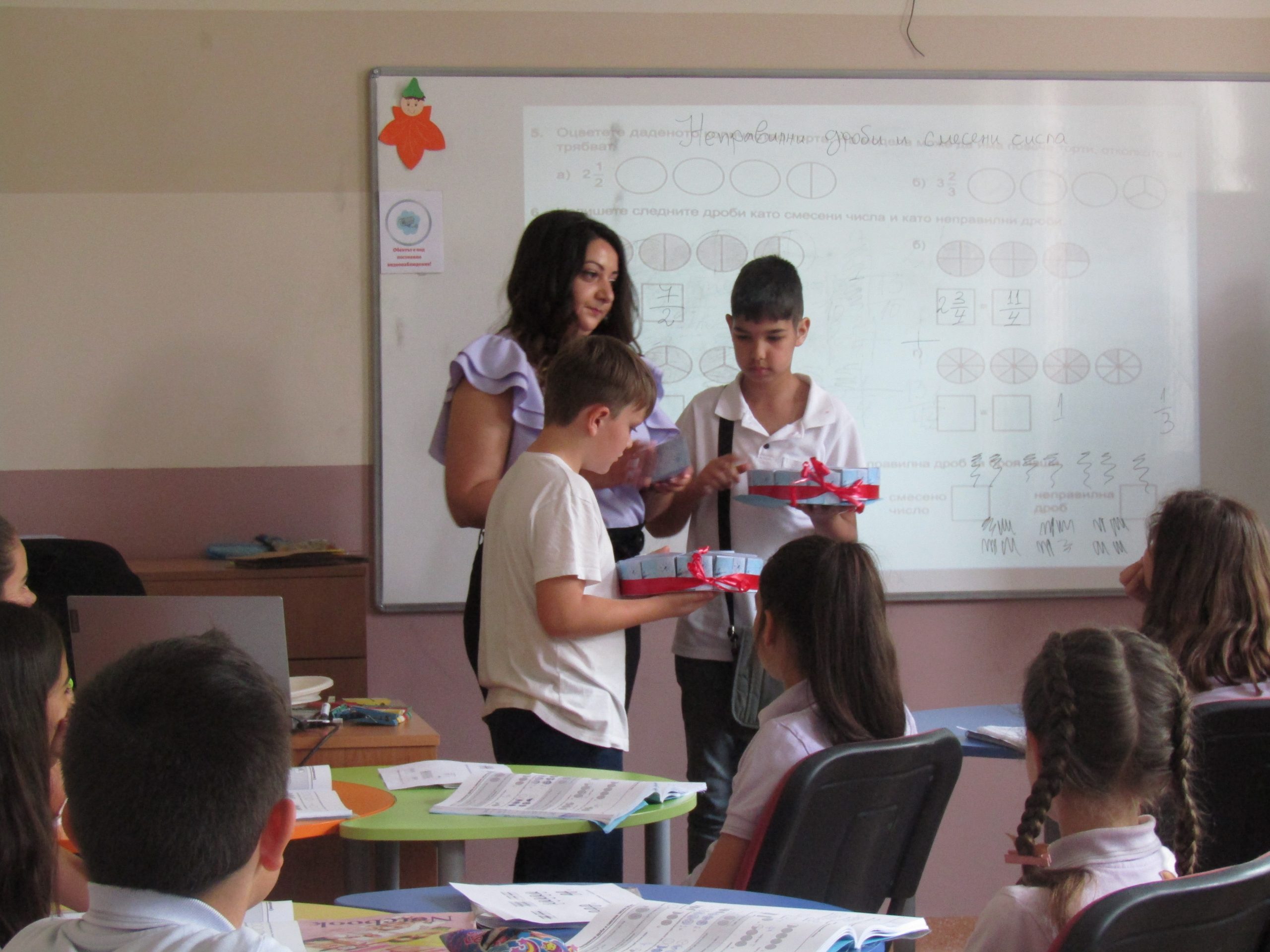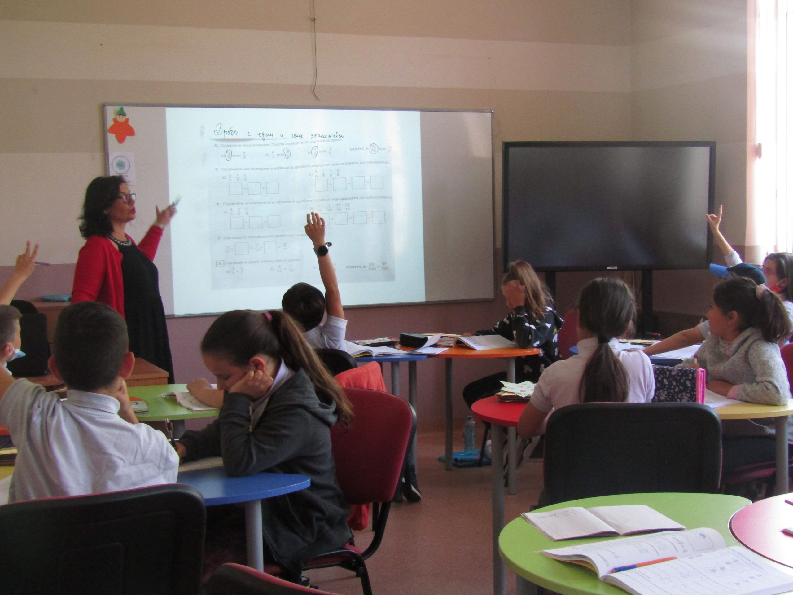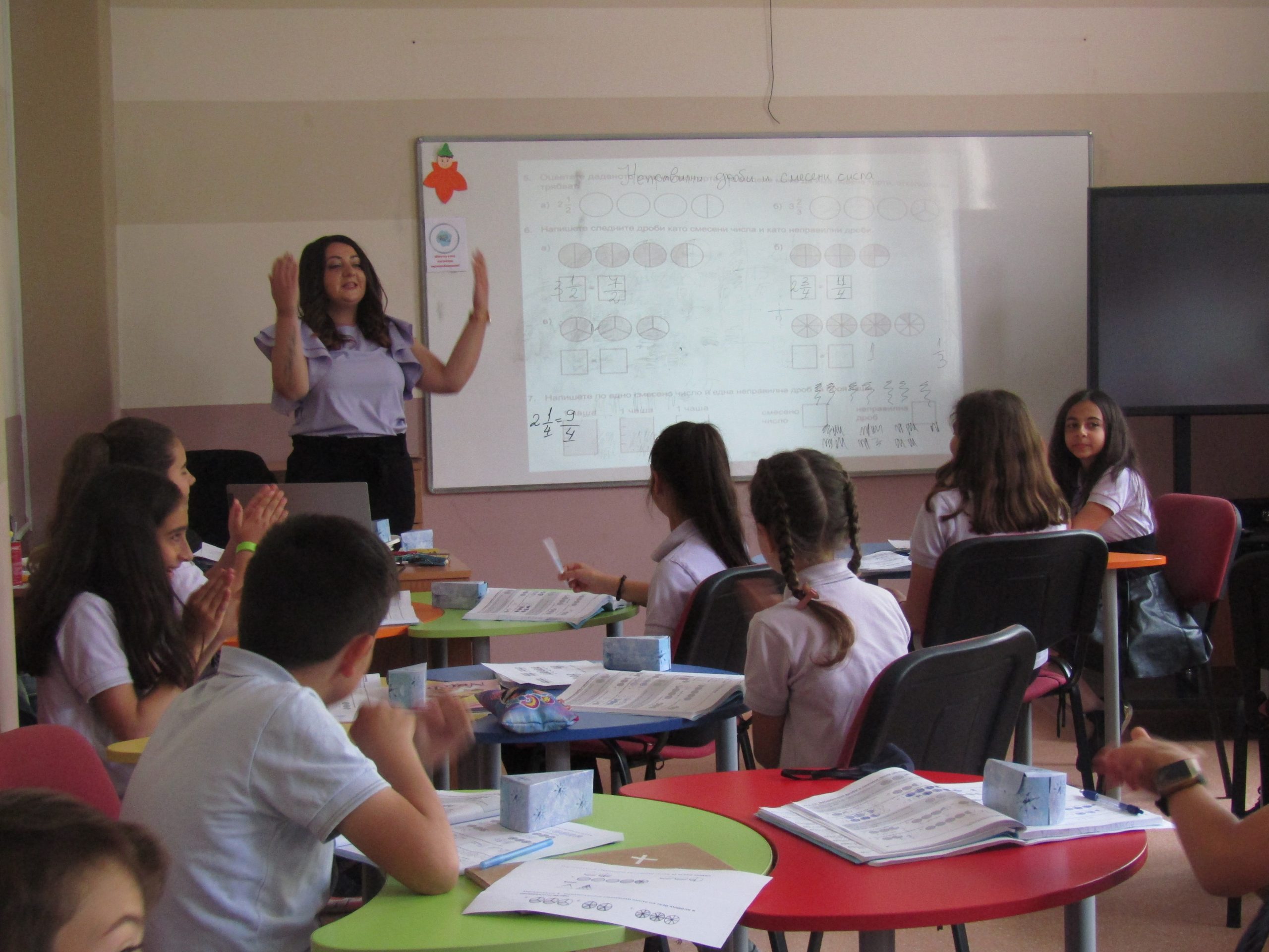 г-жа Таня Димитрова с ученици от IV „В“ представи урок по Jump Math на тема “Неправилни дроби и смесени числа“