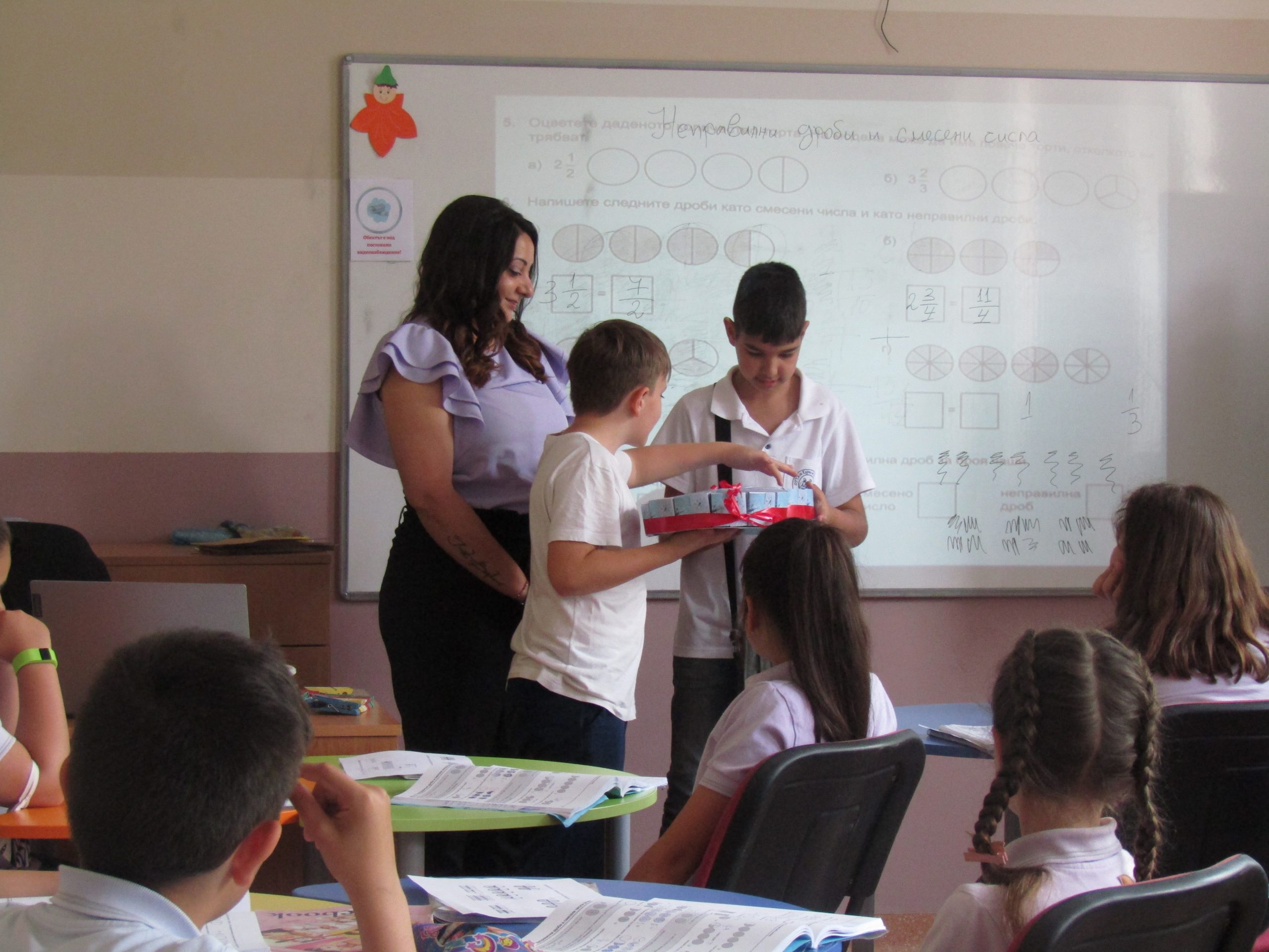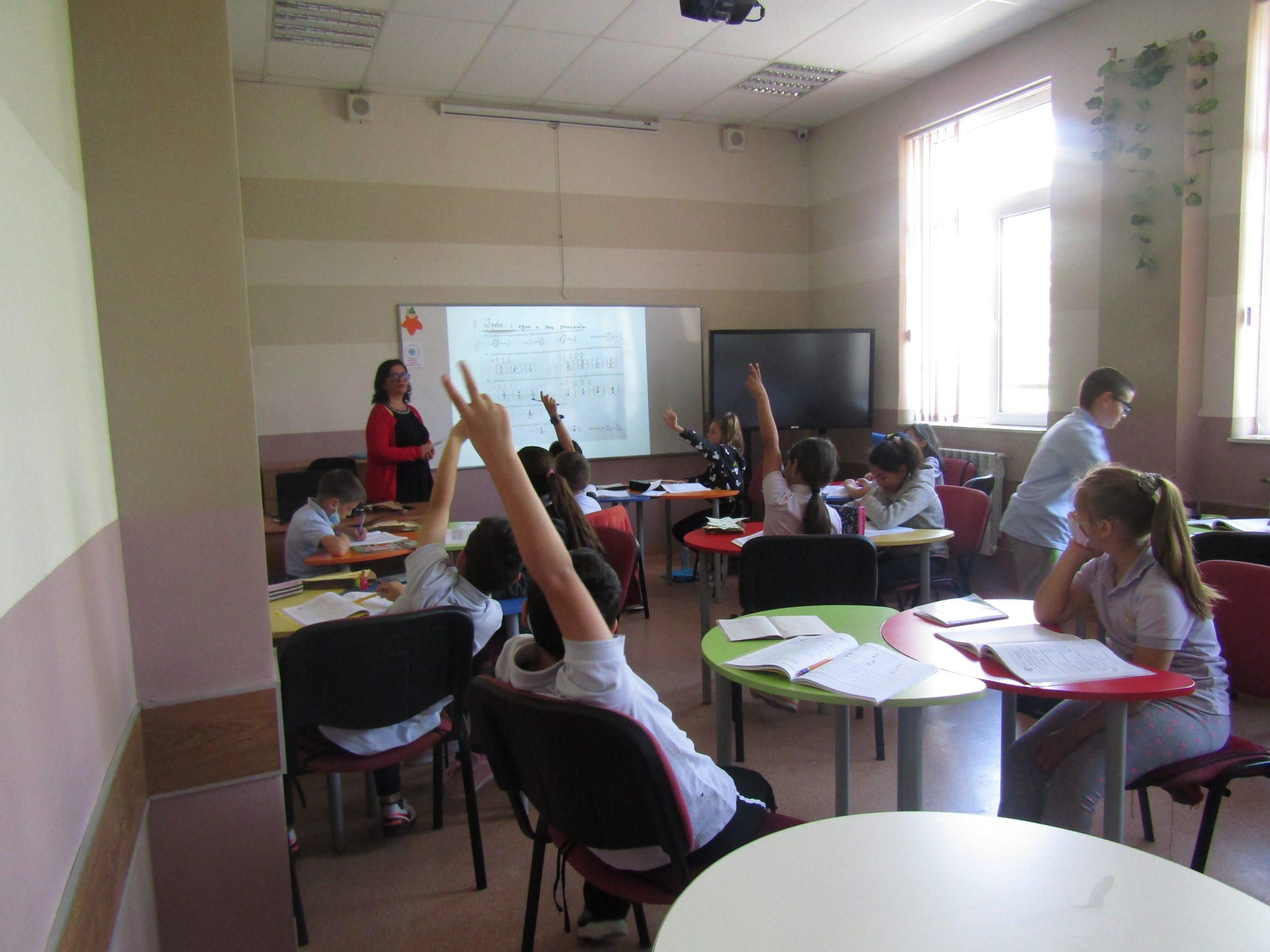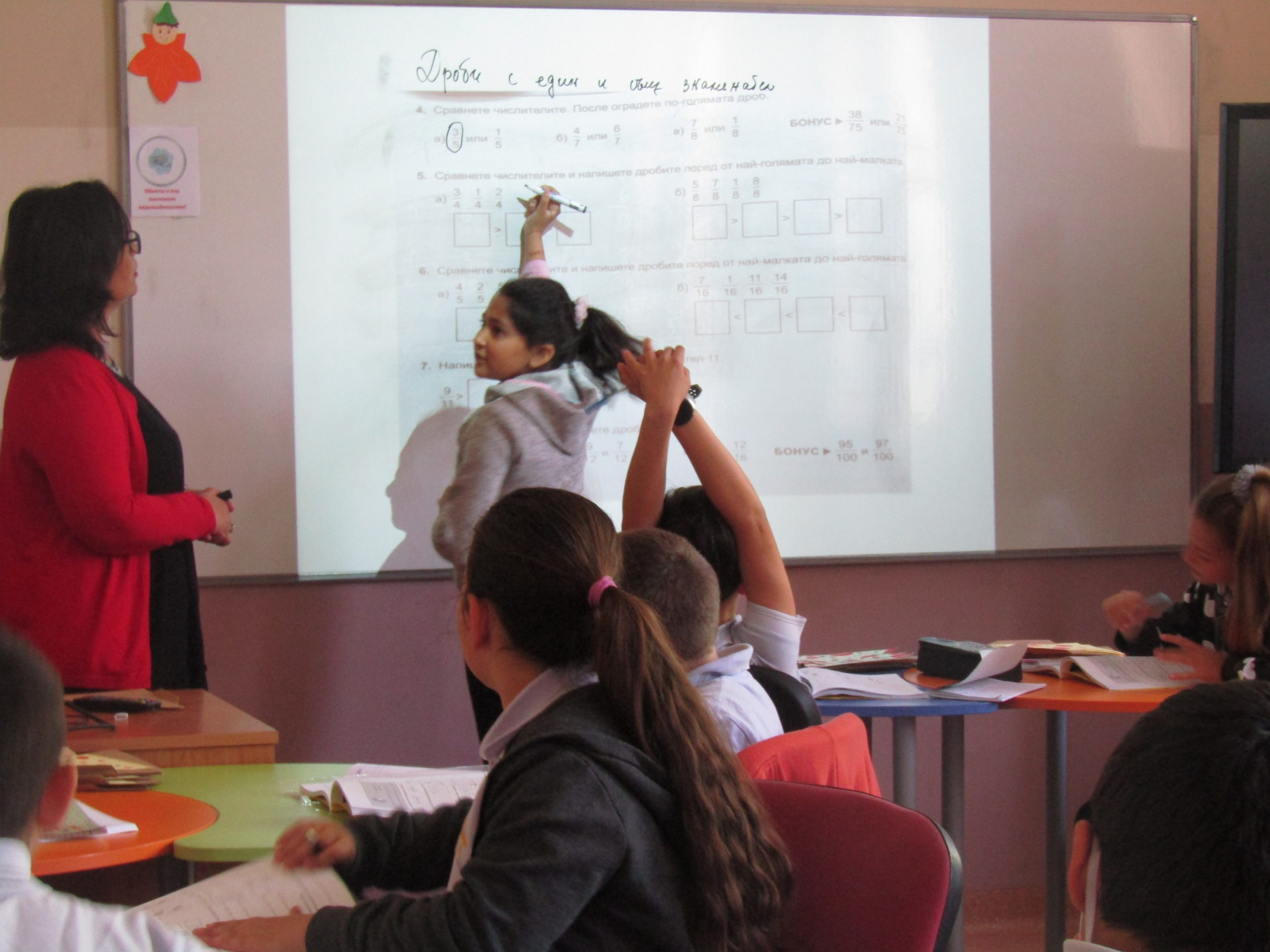 г-жа Таня Димитрова с ученици от IV „В“ представи урок по Jump Math на тема “Неправилни дроби и смесени числа“