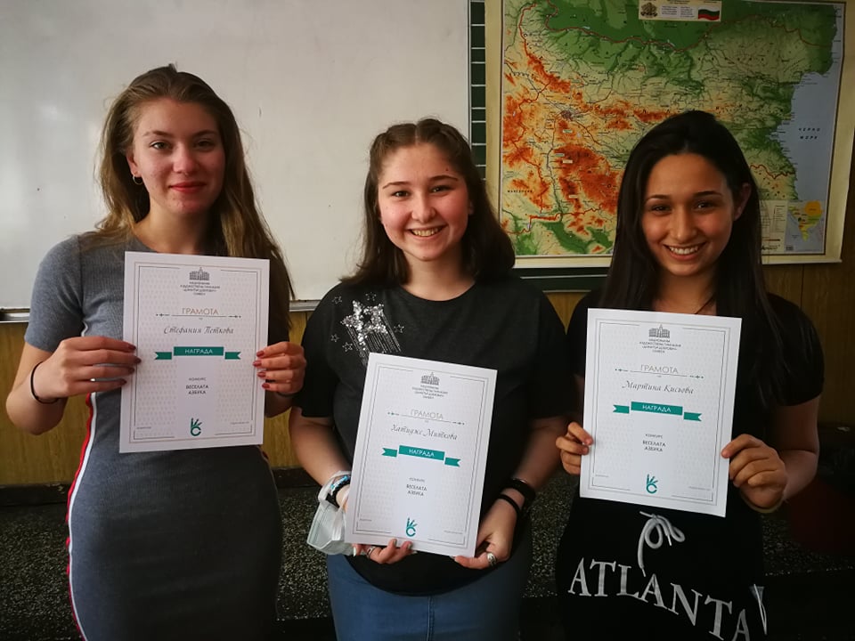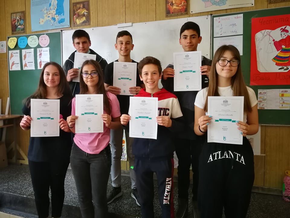 Класирани с първи, втори места и поощрения са Стефания Петкова, Хатидже Миткова, Мартина Кисьова, Рая Славова, Ивайла Иванова, Даниел Чуков, Диан Димитров, Мартин Ташев, Мартин Андонов и Даниела Русева от VII клас.