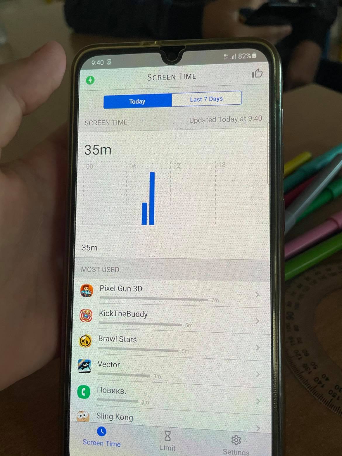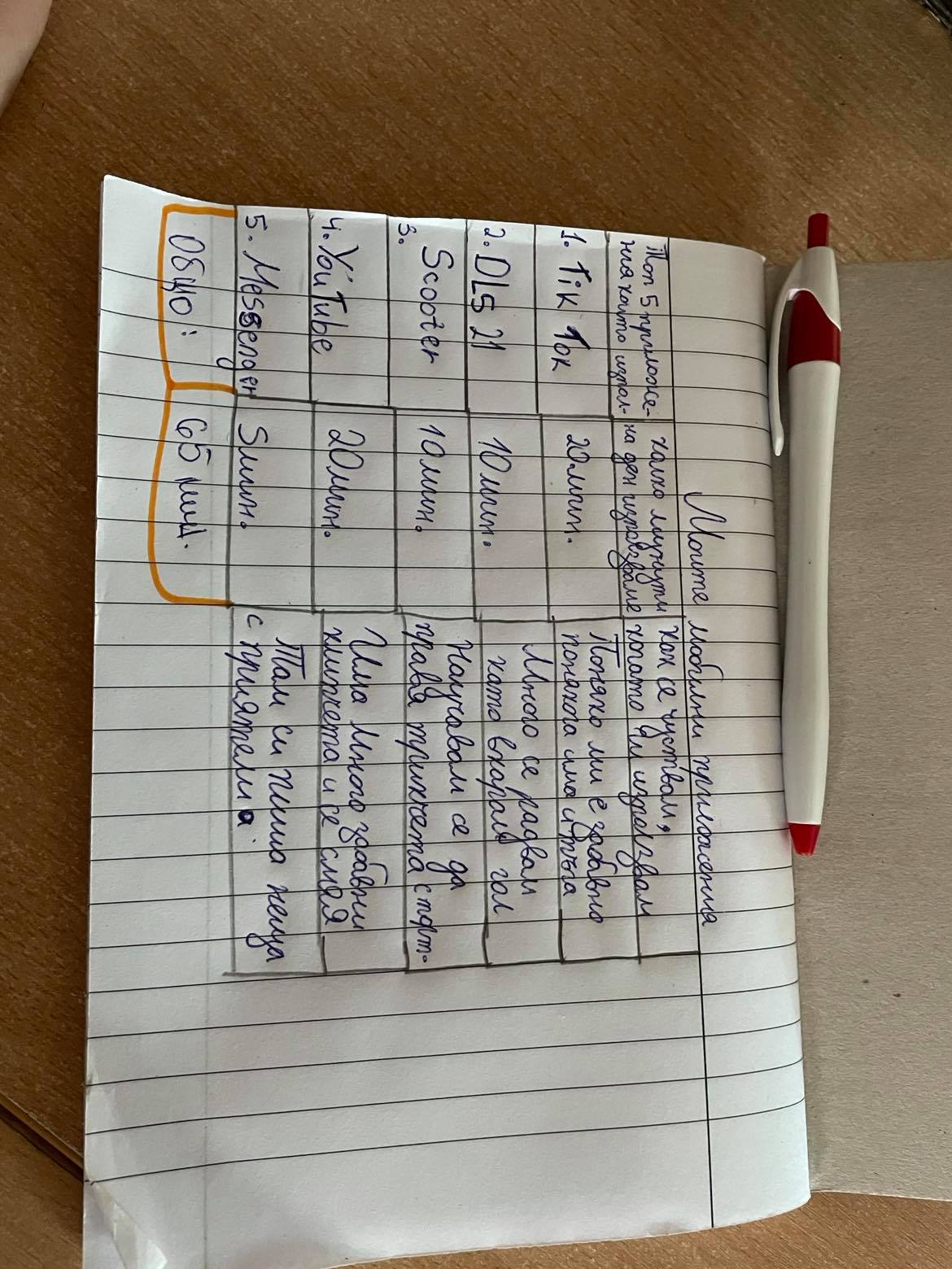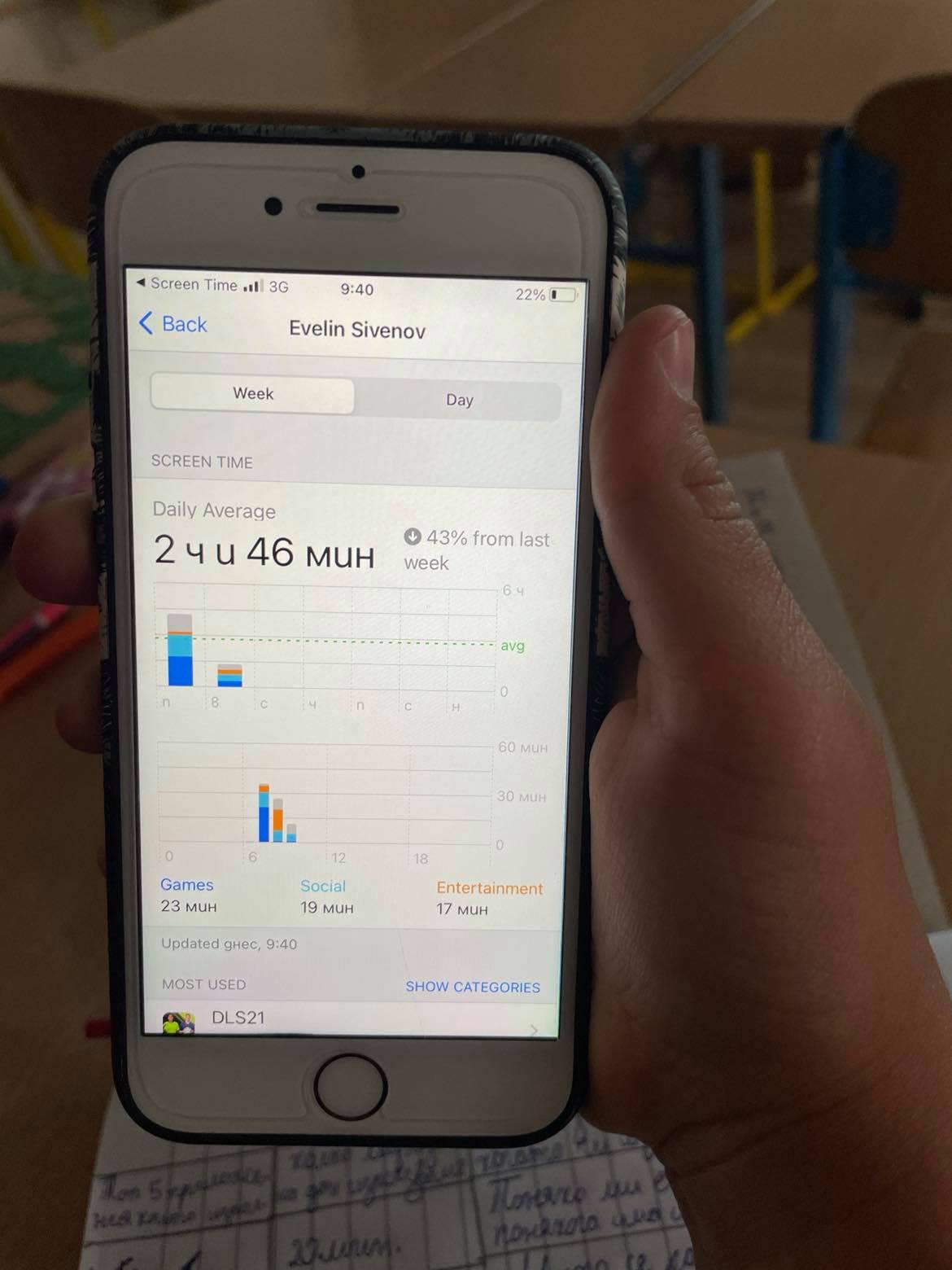 Именно затова разгледахме функцията Screen Time, която ни дава информация за времето което сме прекарали в използване на различните приложения. Учениците изчислиха колко време средно на ден прекарват в смартфона си и коментираха начини как да го ограничат.