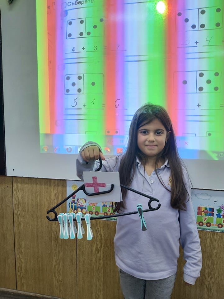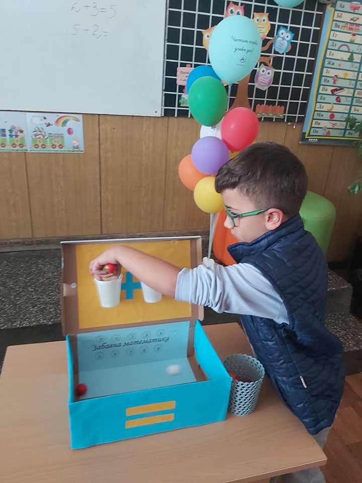 В забавни и увлекателни игри преминаха часовете по математика на г-жа Виолета Илчева и учениците от I”в” клас. Те с лекота събираха, изваждаха и сравняваха числата до 10.