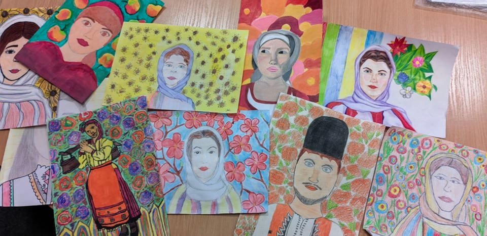 Голяма част от урока беше творчеството на Владимир Димитров – Майстора. Седмокласниците бяха много впечатлени от произведенията му и започнаха да творят в неговия стил. Задачата им беше да създадат портрет, който е вдъхновен от картините на Майстора.