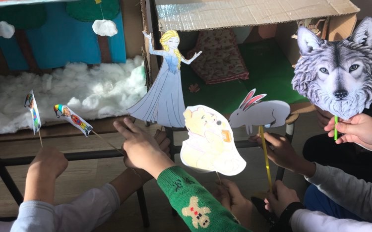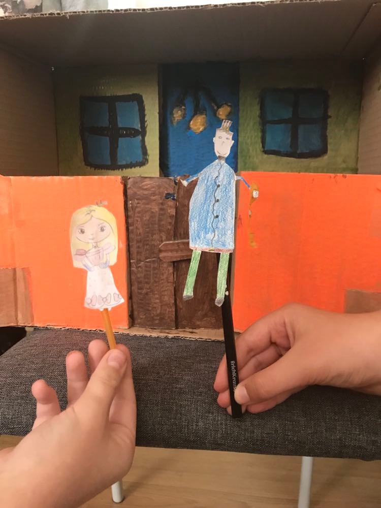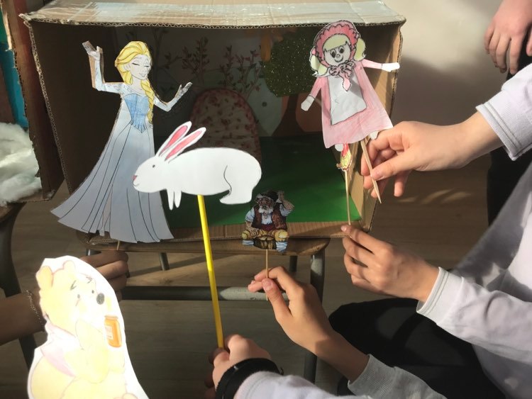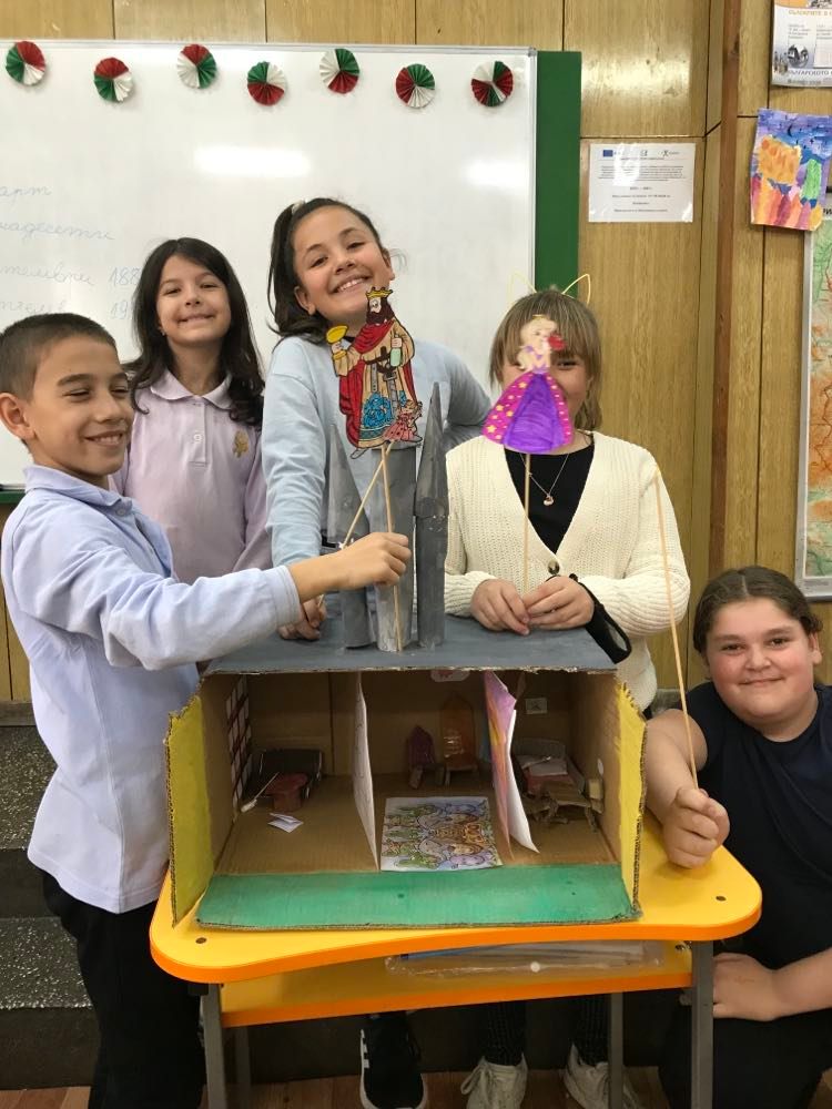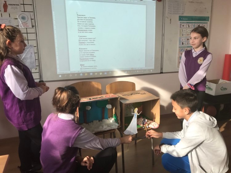 Учениците работиха екипно и осъществиха своите идеи за изнасяне на куклена театрална постановка. Задачите бяха разпределени поравно между тях и всички задружно работиха върху изграждане на декор, герои, заучаване на сценарии и представяне.