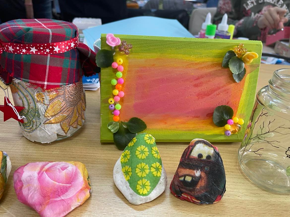 В час по технологии и предприемачество, използвайки техниката “декупаж”, шестокласниците изработиха красиви изделия.