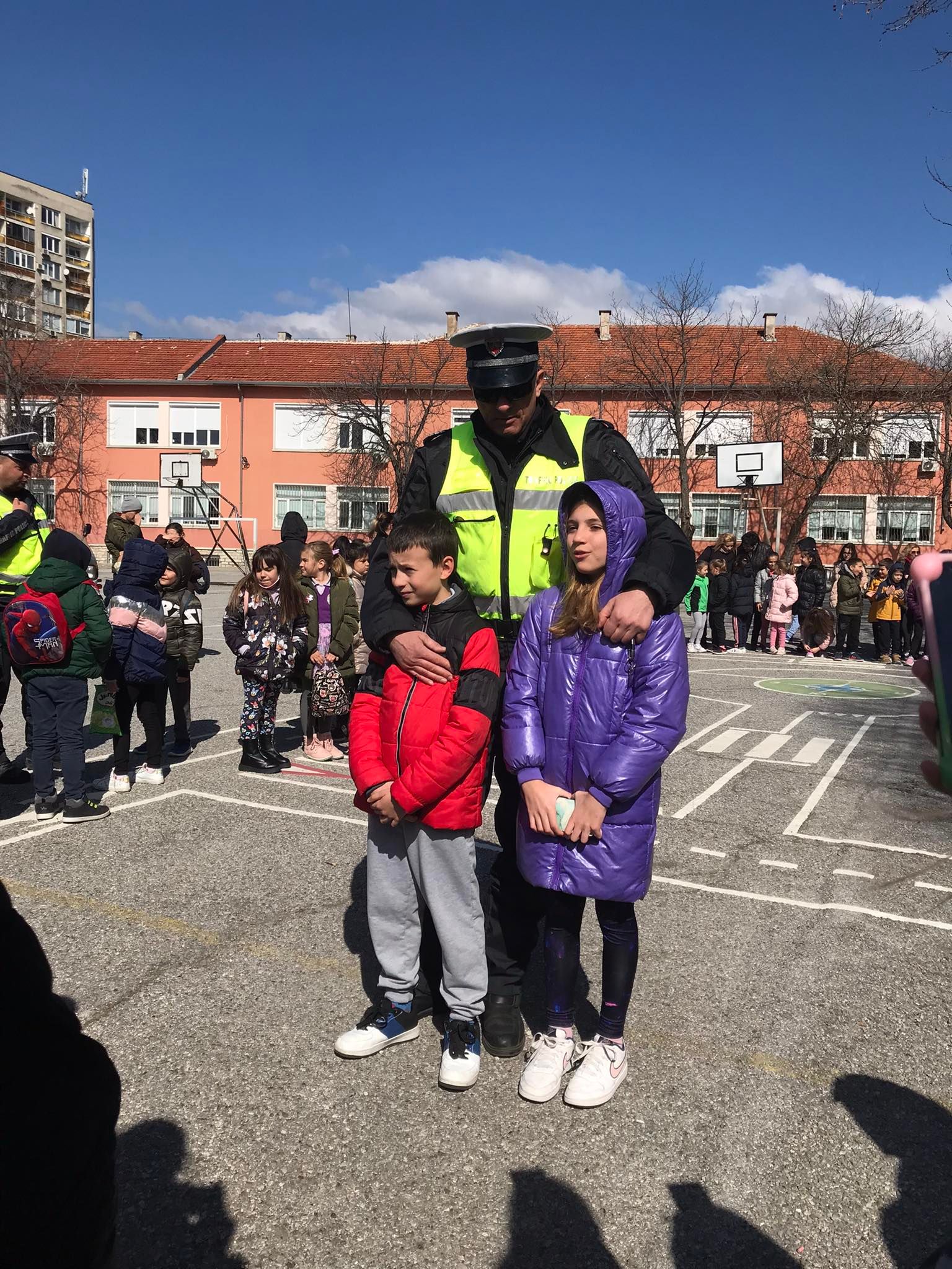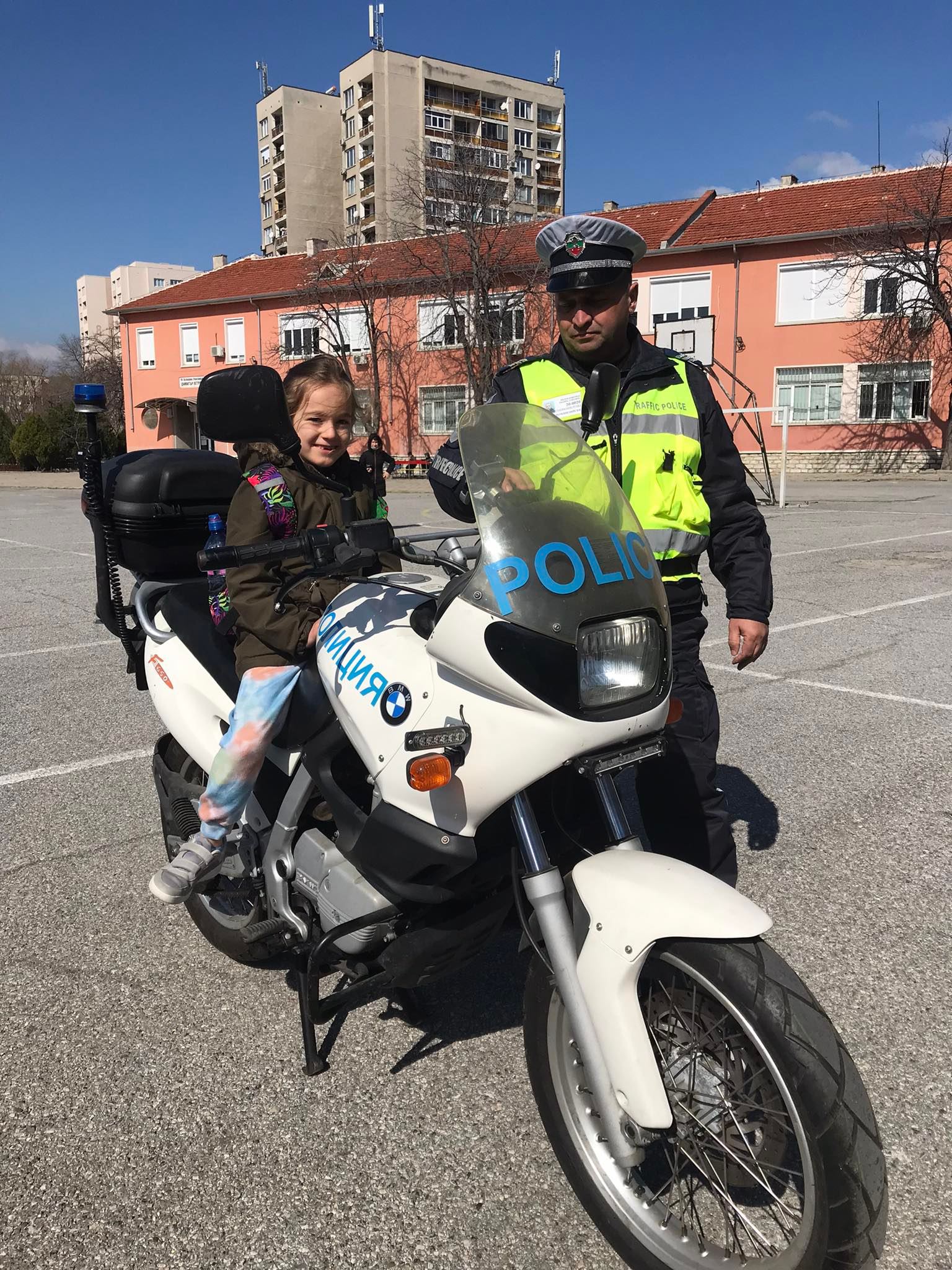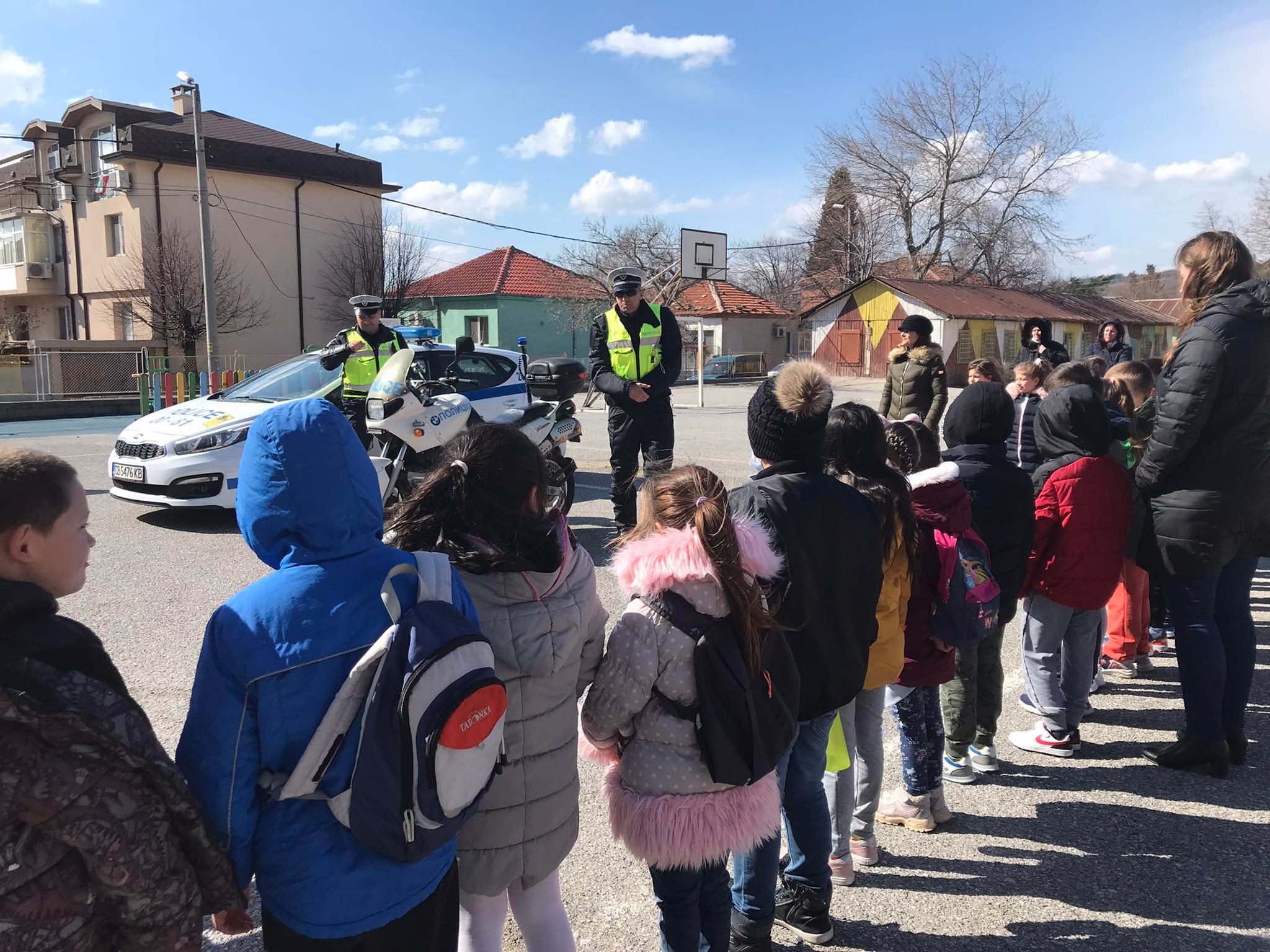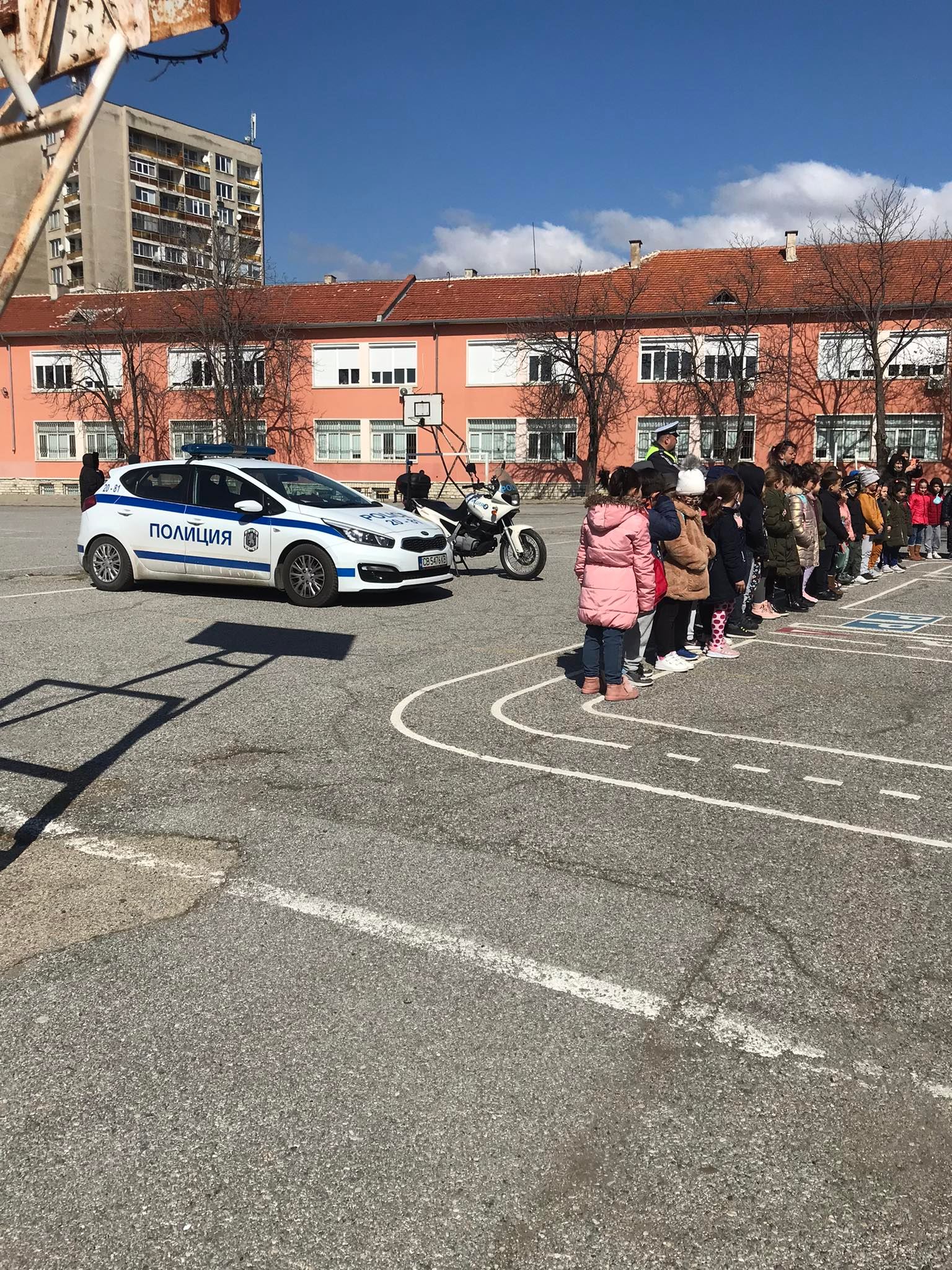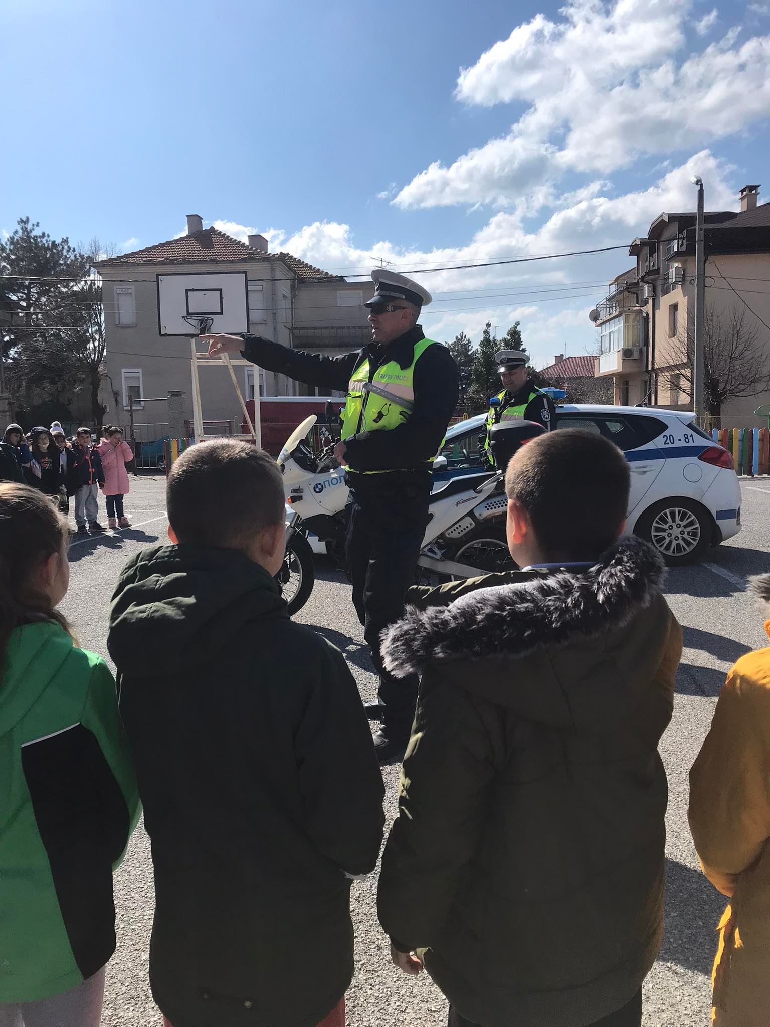 По-много интересен и достъпен до учениците начин, полицаите проведоха кампания, свързана с безопасността на пътя. Обясняваха и насочваха децата как да се движат безопасно по улиците и да умеят да се пазят. Разказаха много интересни факти за полицейската професия, показаха нагледно моторните превозни средства, с които се предвижват полицаите, а децата от своя страна имаха възможност да се докоснат до полицейската кола и мотор. Не скриха любопитството и възхищението си към полицейската професия и с любопитство задаваха своите въпроси.