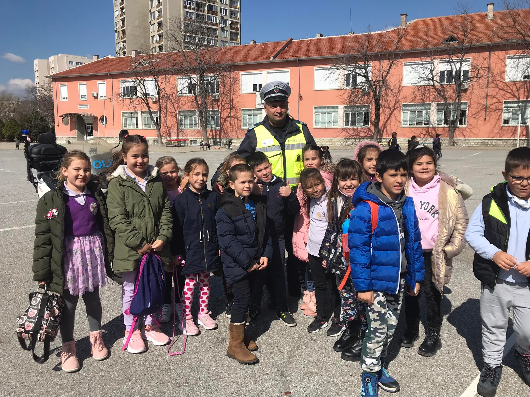Днес, 22.03.22 г., в двора на ОУ “Димитър Петров” посрещнахме служители на “Пътна полиция” – Сливен.