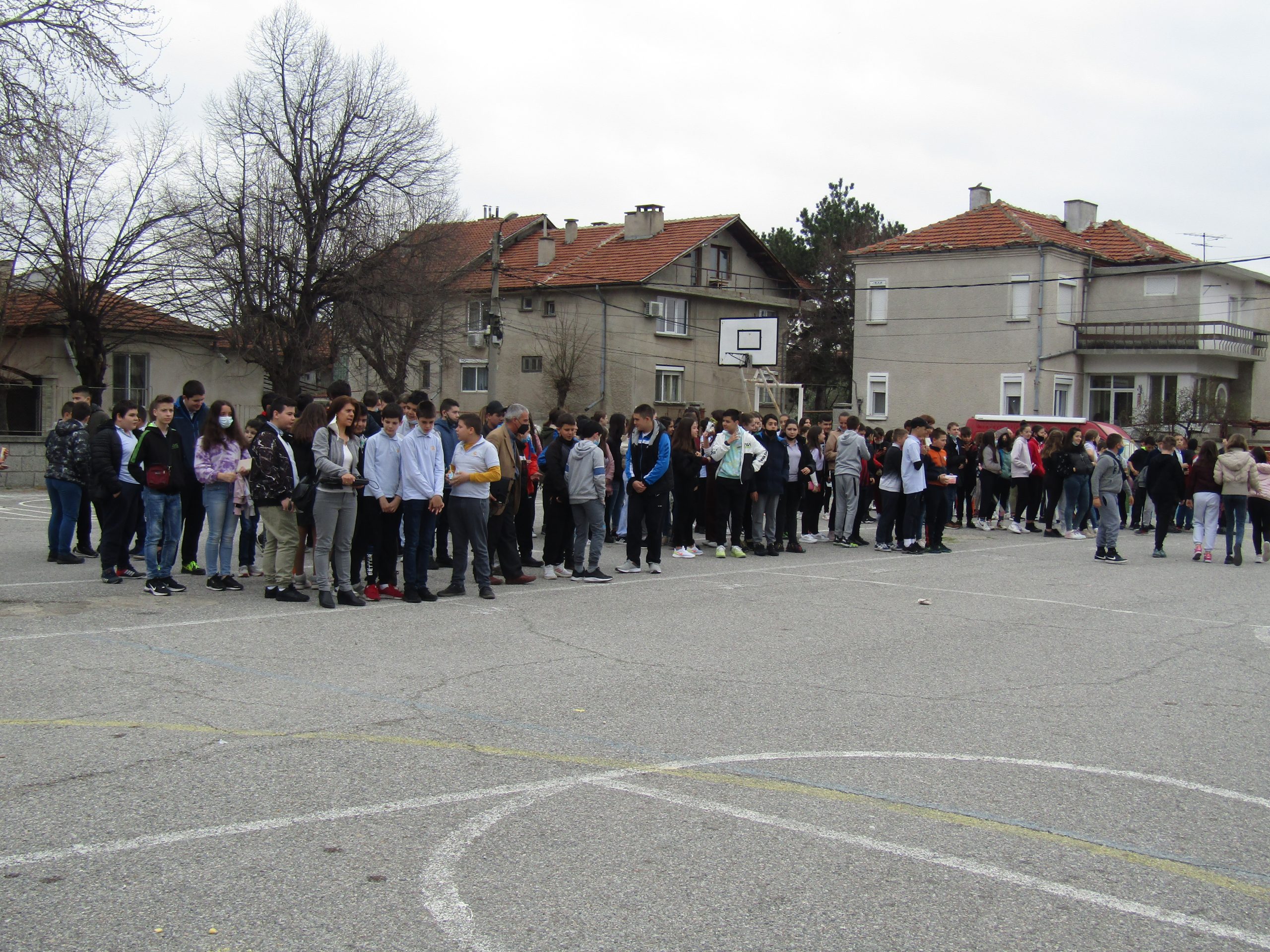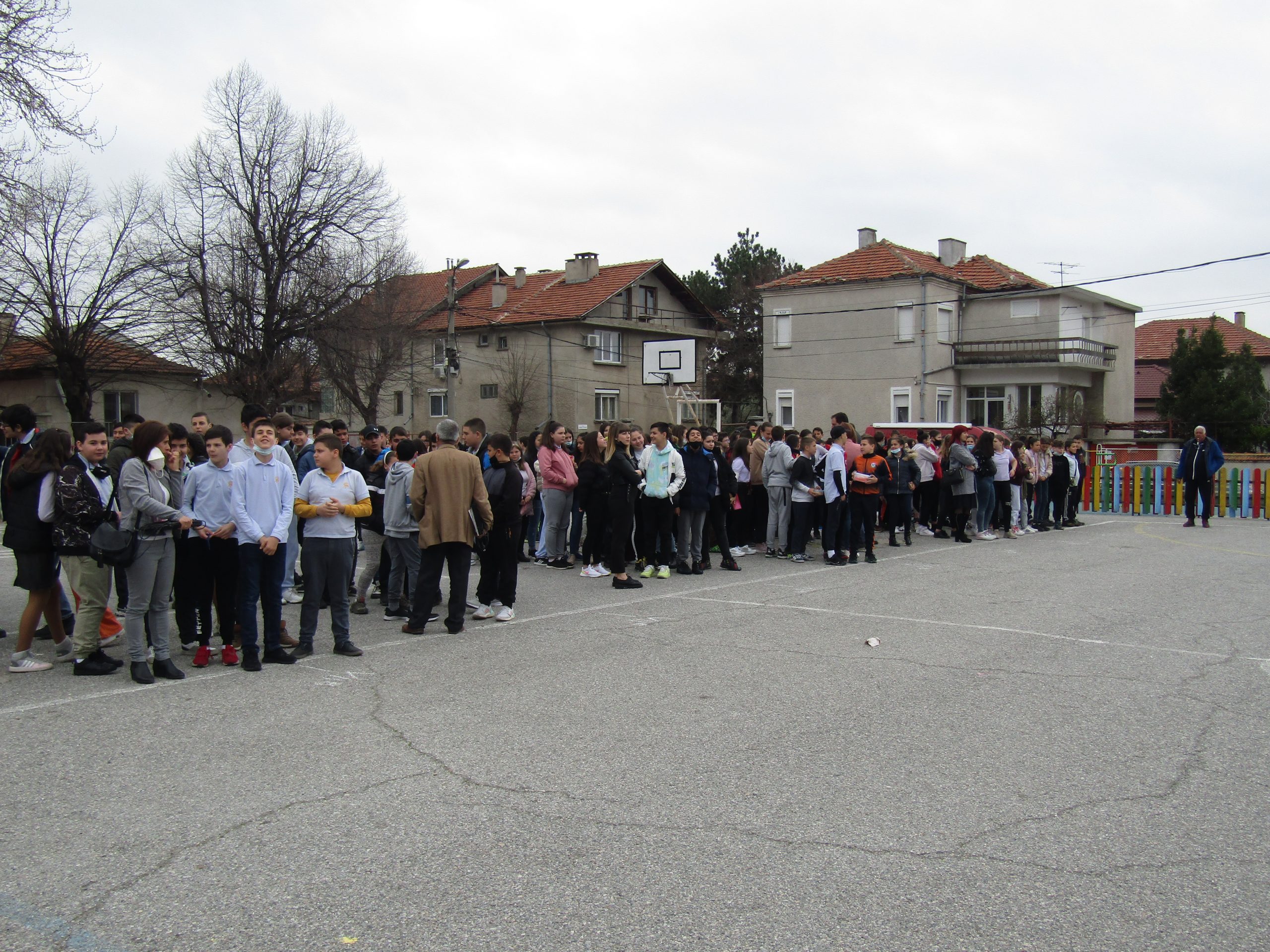 На 31.03.2022г. се проведе тренировъчно занятие за ученици, учители и помощен персонал за действия при земетресения.Всички намиращи се в сградата я напуснаха и се установиха в двора на училището – далеч от високи сгради и падащи предмети.