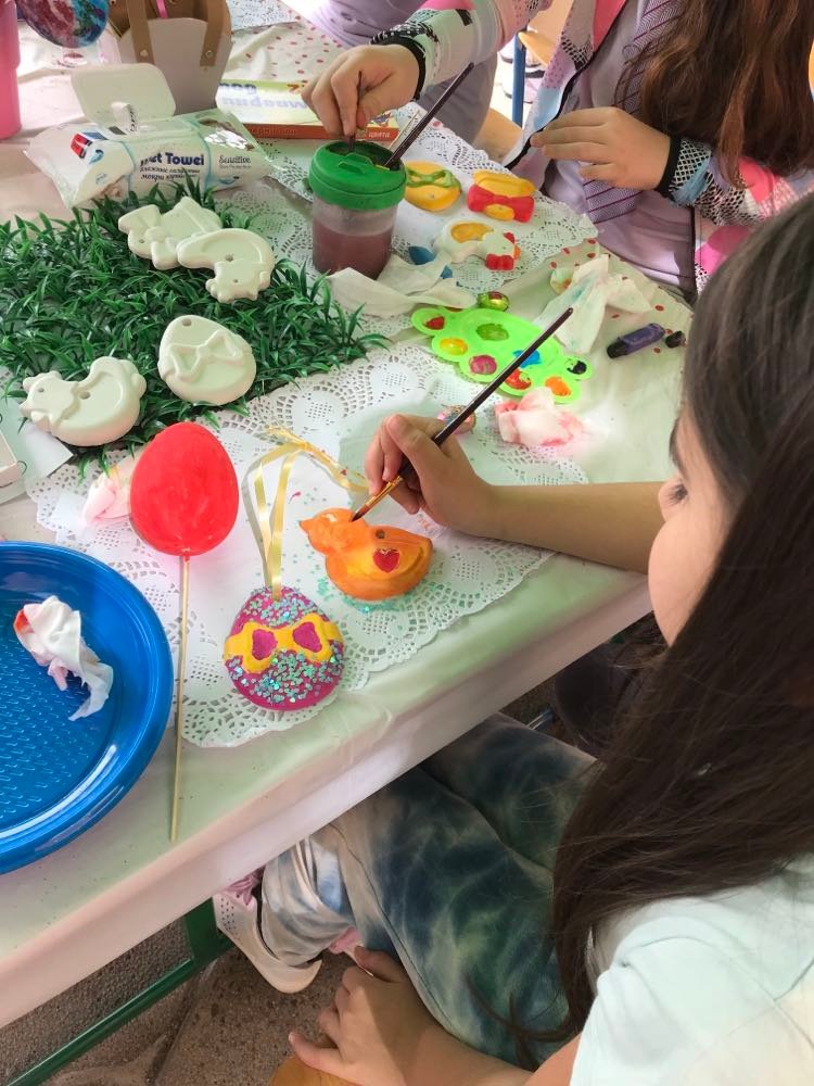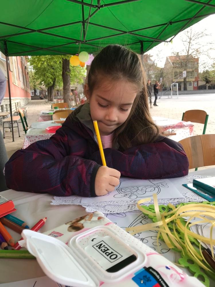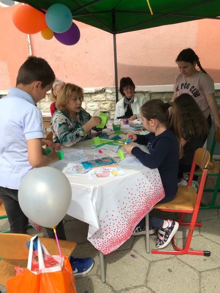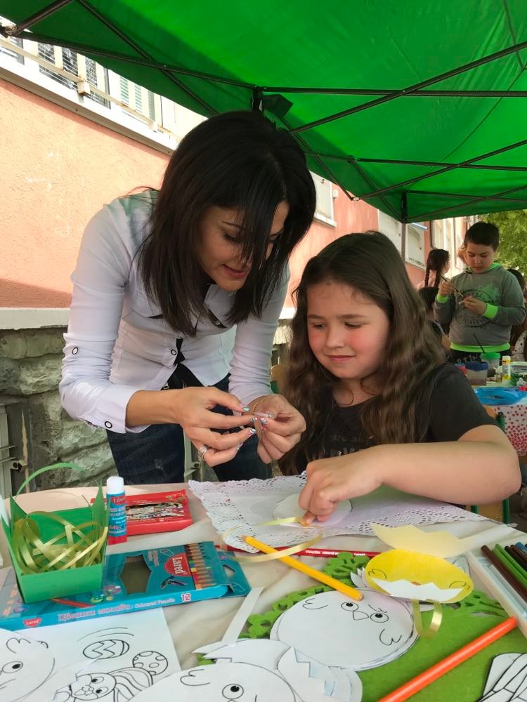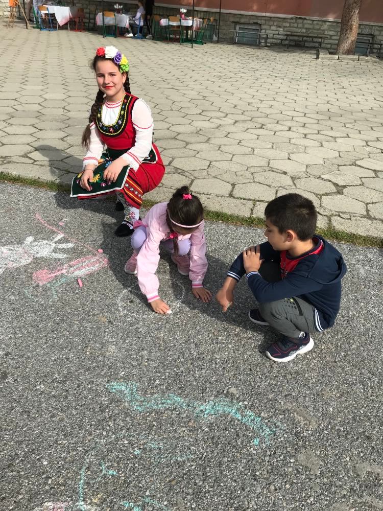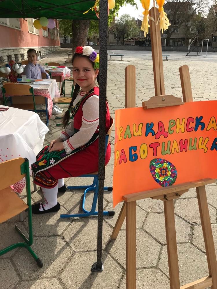А на двора, под шатрата „ Великденска работилница“, всички заедно се подготвяха за бъдещия празник – оцветяваха яйца, керамични фигури, картинки и различни декорации. Празничен ден, пъстър ден!