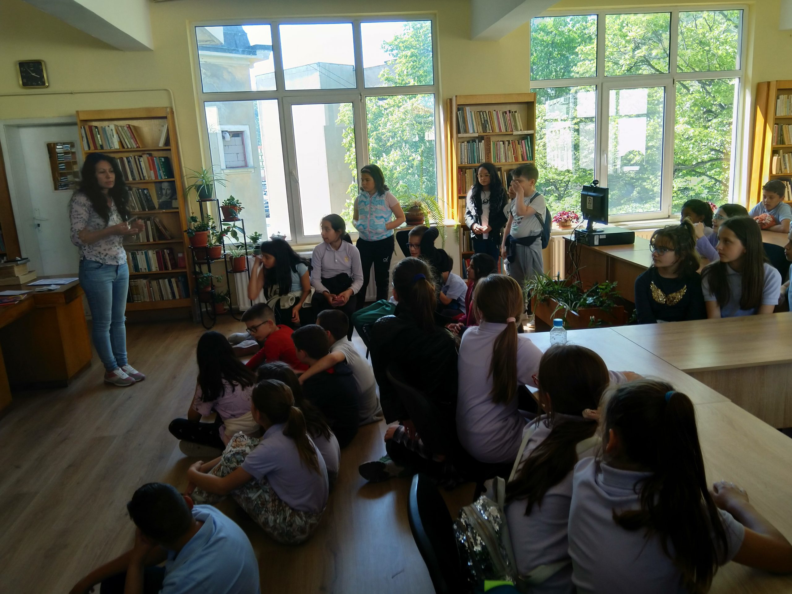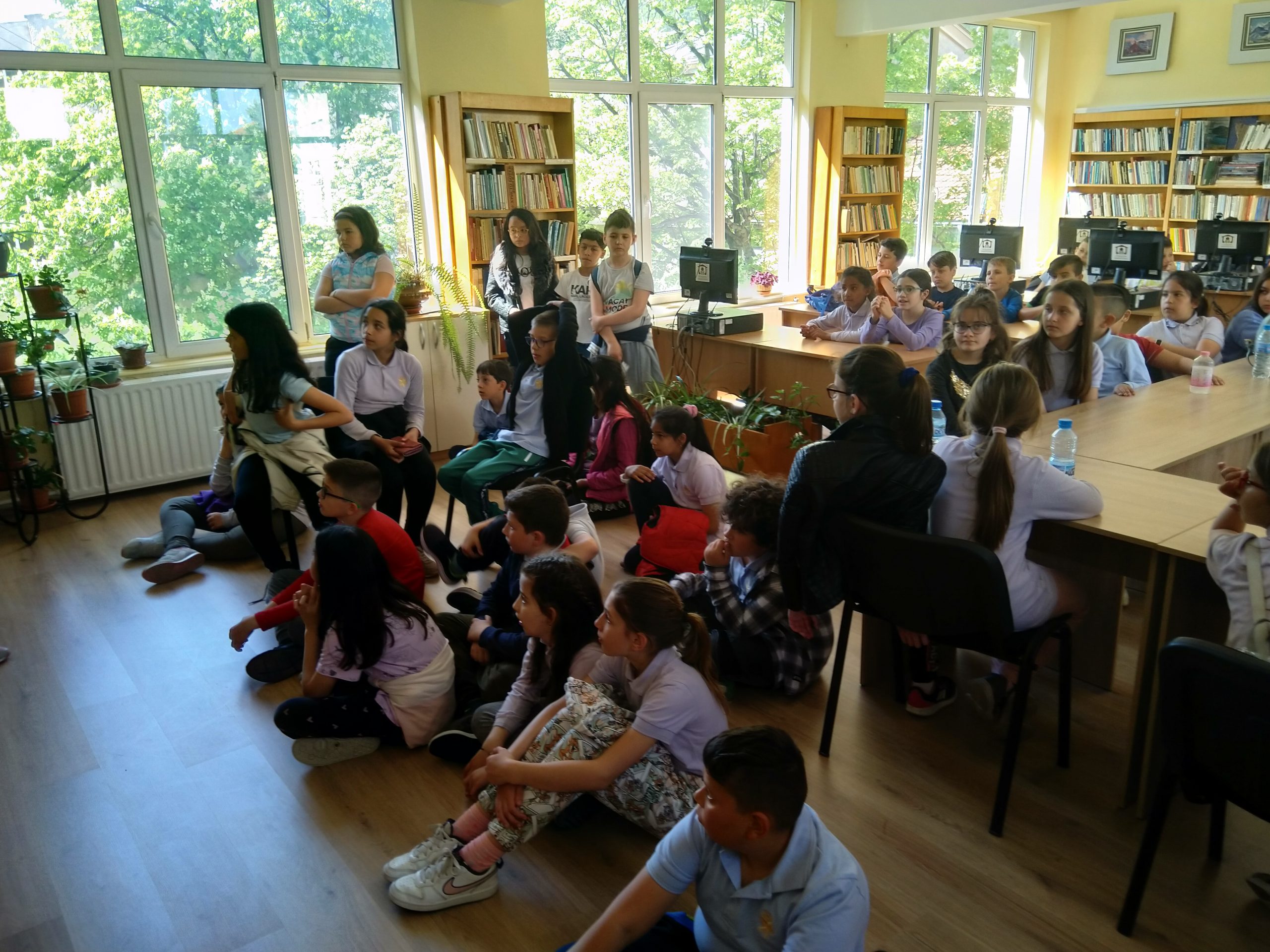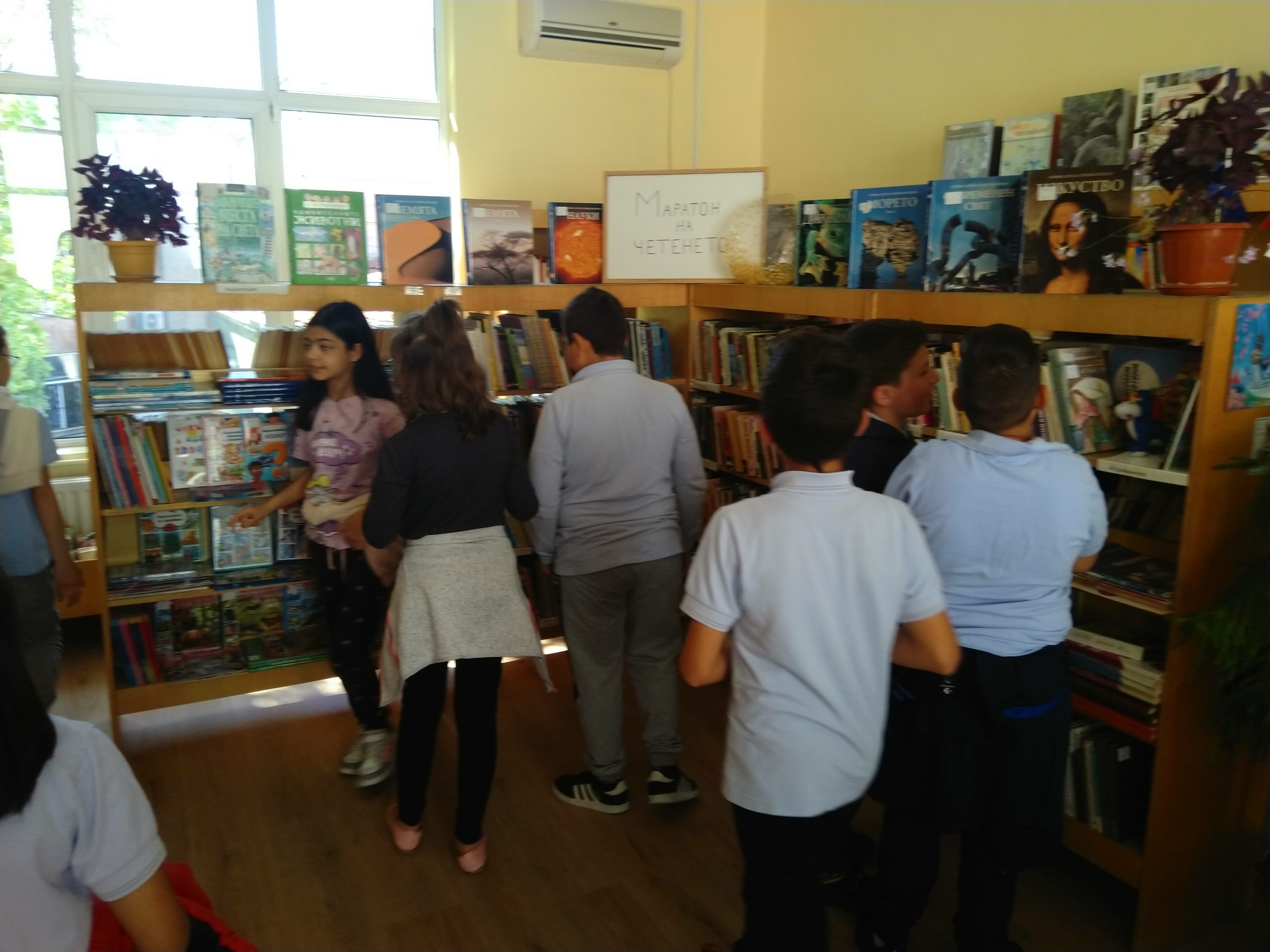На 27.04.22г. учениците от III „а“, „б“ и „в“ клас посетиха библиотека “Зора”. Децата видяха първата напечатана книга, преминавайки по линията на времето. Тя бе преобразувана в електронна и накрая събрана в един малък чип. Запознаха се с правилата в библиотеката, получиха безплатни читателски карти, разгледаха детския отдел.