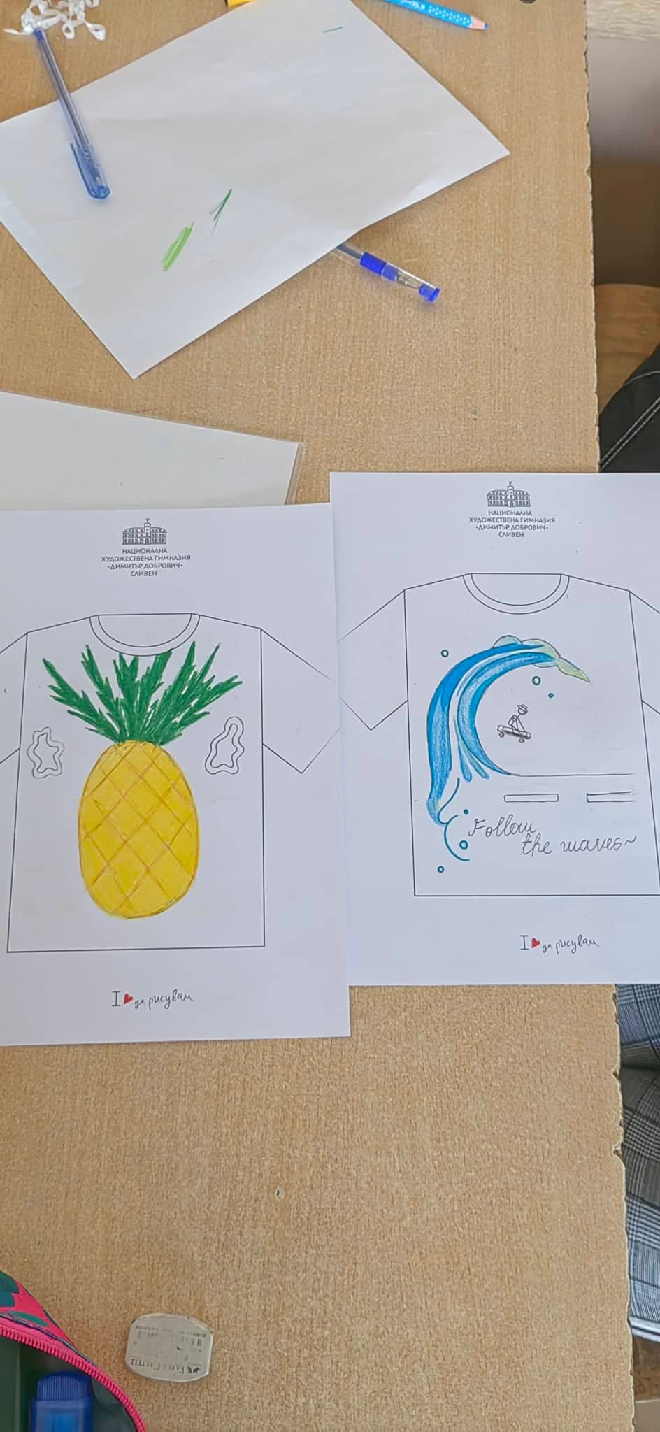 За трета поредна година в часовете по изобразително изкуство имахме посещение от НХГ “Димитър Добрович”. Гост в седмите класове беше г-жа Ирина Василева – преподавател по Художествена тъкан. Тя представи изнесено ателие под формата на конкурс и темата беше “Дизайнерът съм аз”. Задачата на учениците беше свързана с това да създадат тениска по свой дизайн.