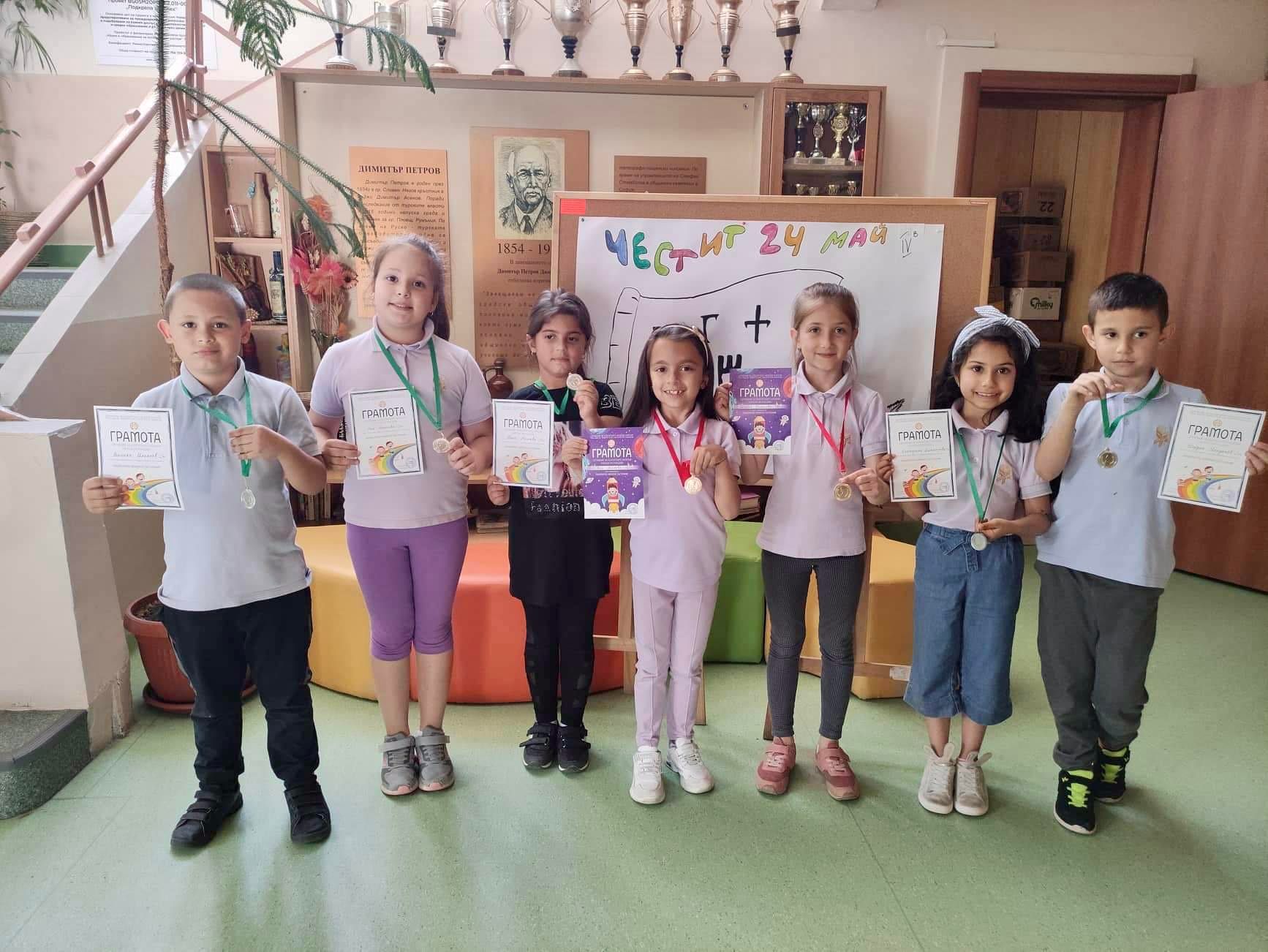 На 23.05.2022 г. в ОУ “Димитър Петров” бяха наградени учениците от начален етап на образованието (I – IV клас) по повод отличното им представяне в Националното финално състезание на Сдружение на Българските Начални Учители (СБНУ). Чрез своите знания те спечелиха общо 7 златни и 21 сребърни медали.