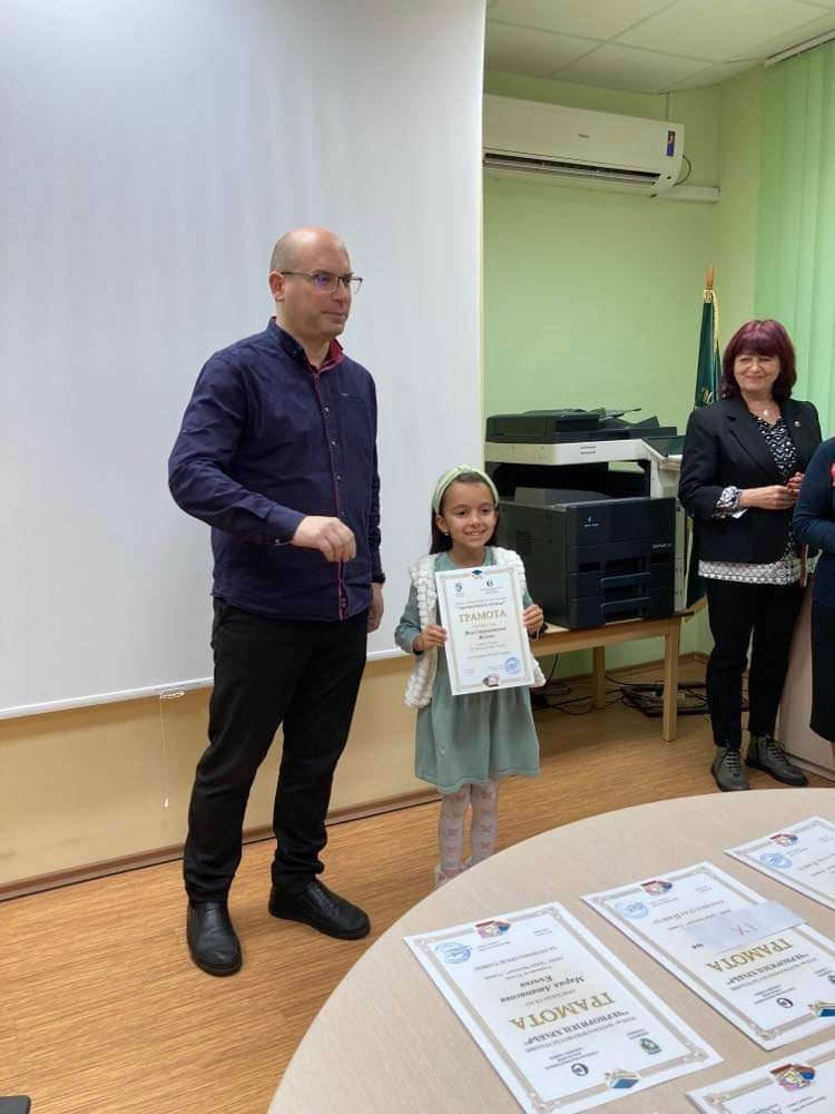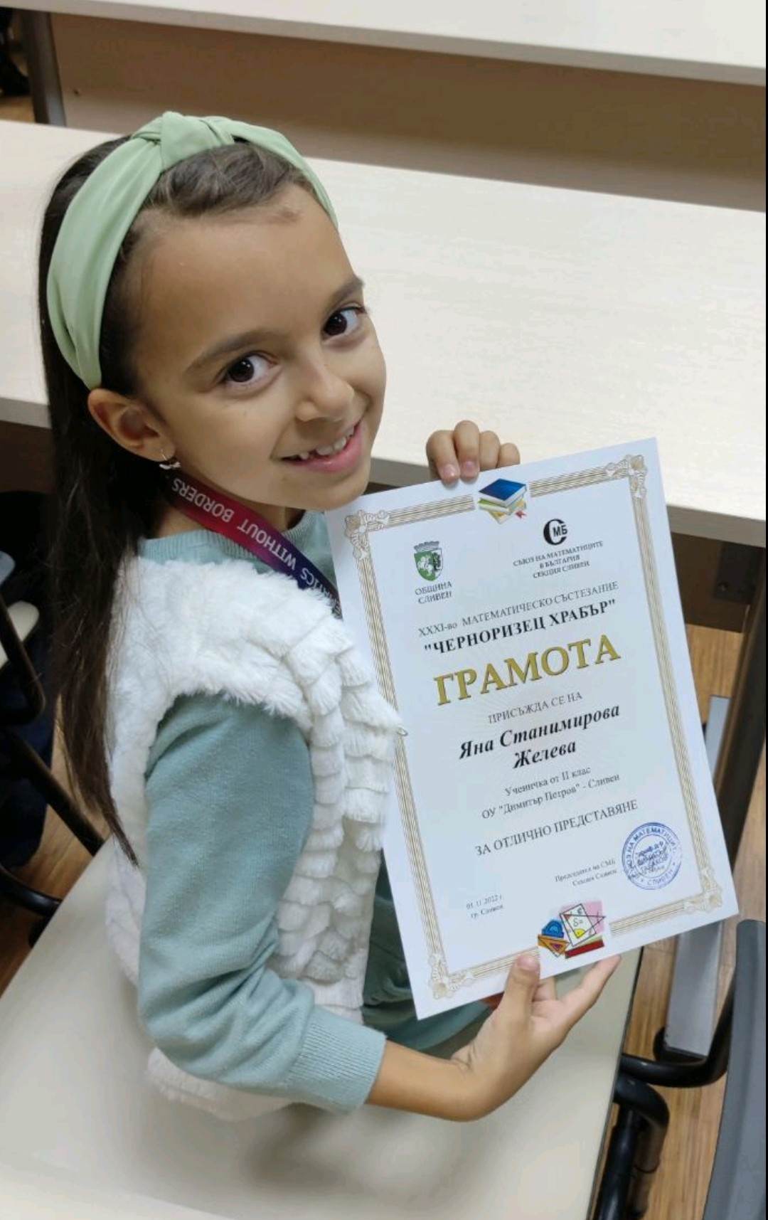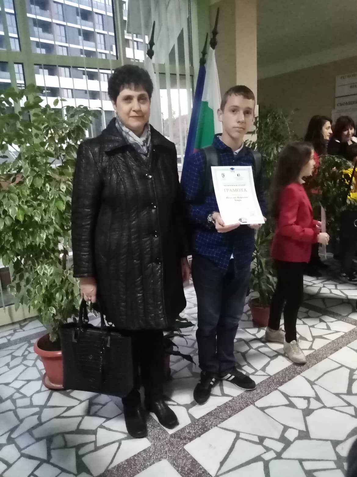 Грамоти за отлично представяне на математическото състезание “Черноризец Храбър” бяха присъдени на Яна Станимирова Желева от II в клас и на Вячеслав Хмара от VII a клас.