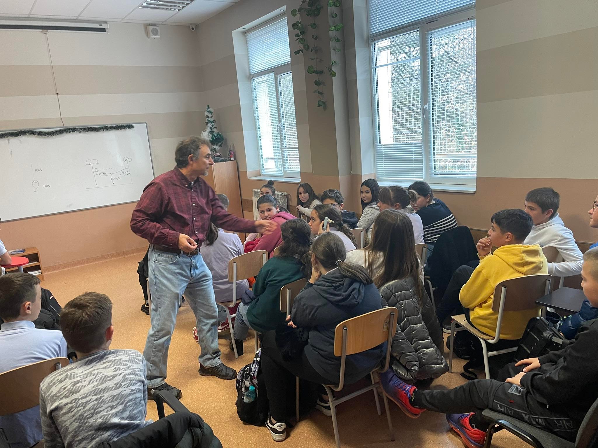 На 06.12.2022г. на гости ни беше Васил Спасов – бивш възпитаник на ОУ „Димитър Петров”. Завършил физика в Софийски университет, а по-късно и в САЩ.