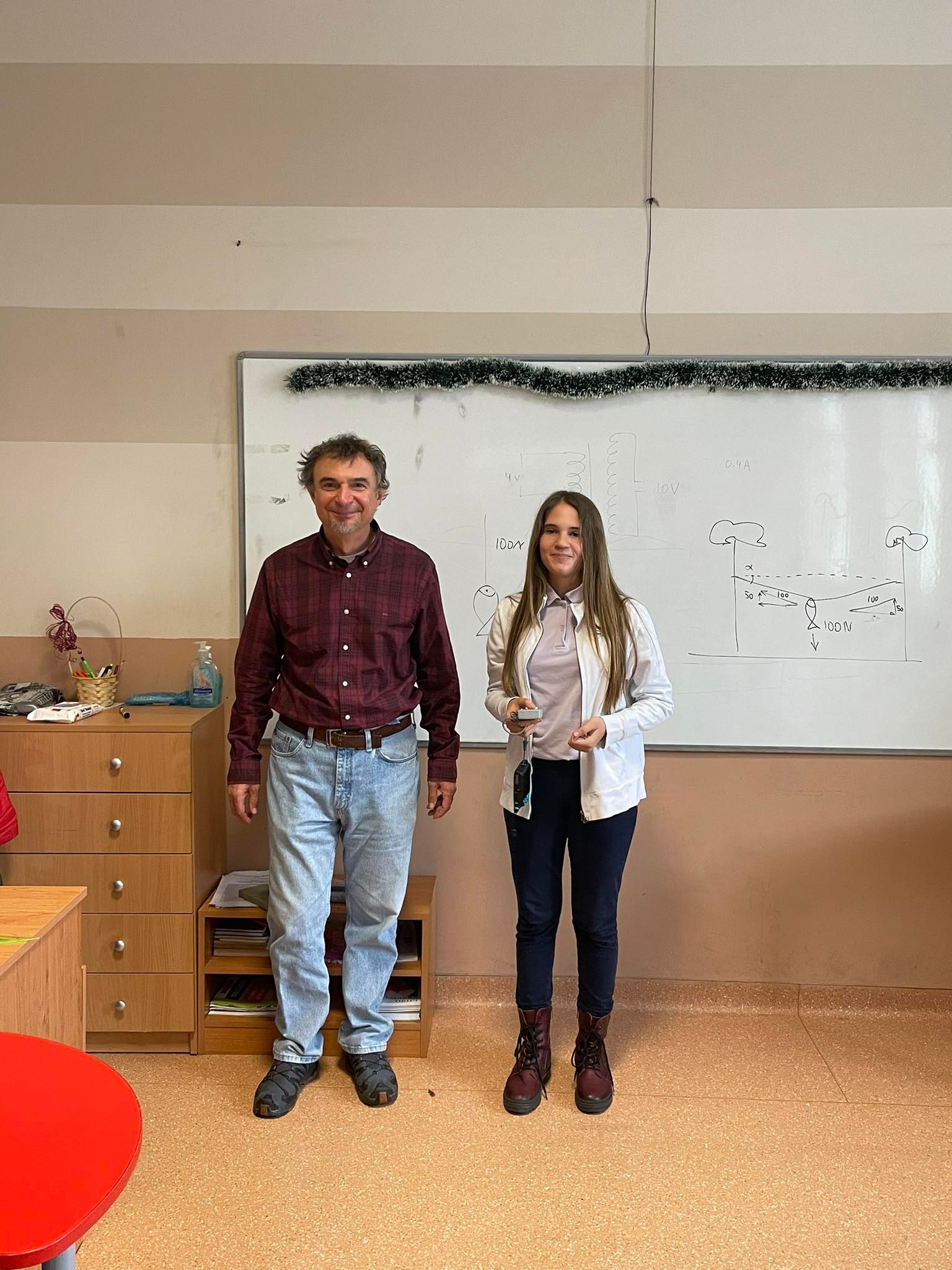 Сияна Димитрова от 7”В” клас реши задача, която изискваше познания и по математика и заслужено получи награда от нашия гост.