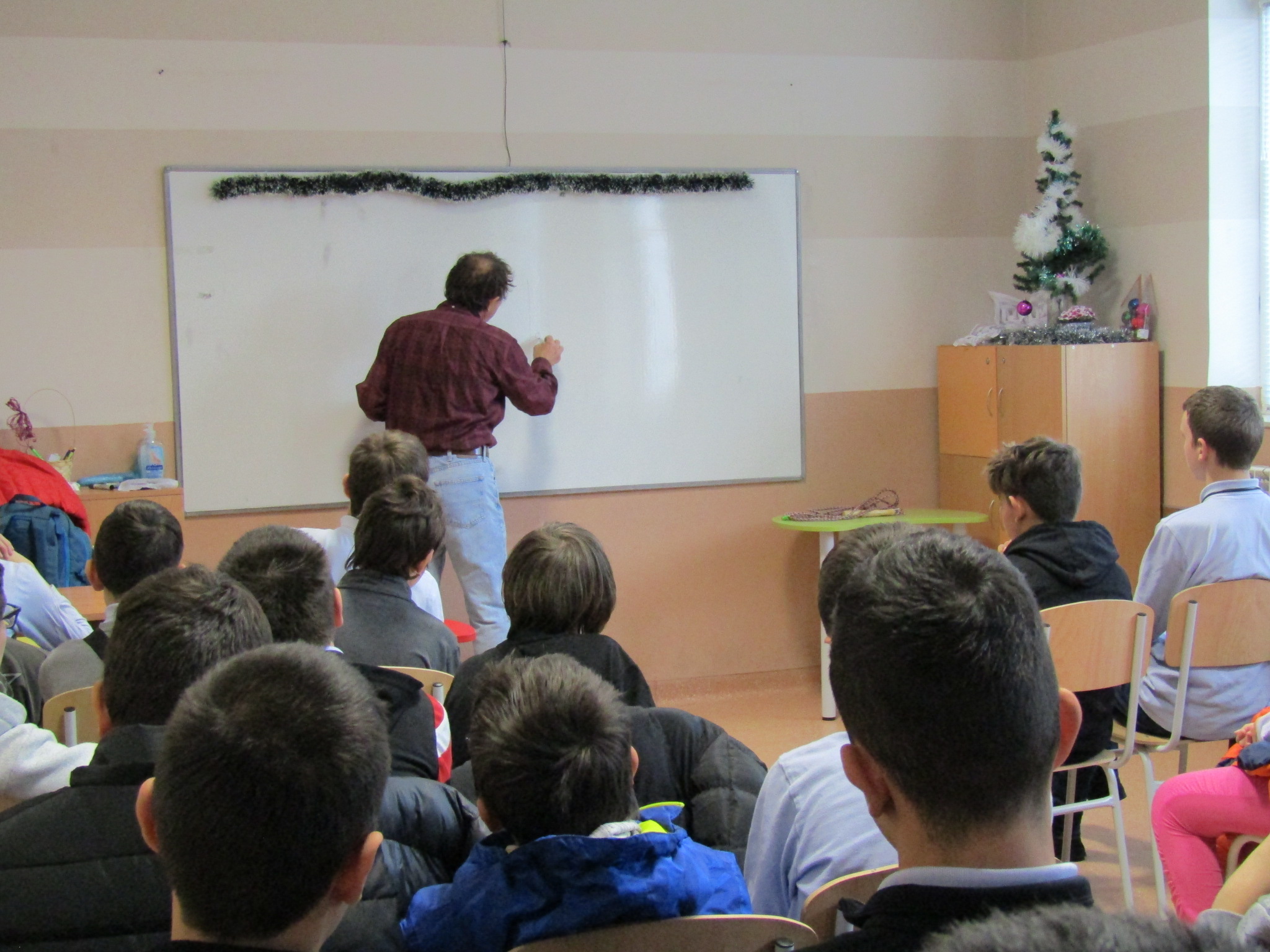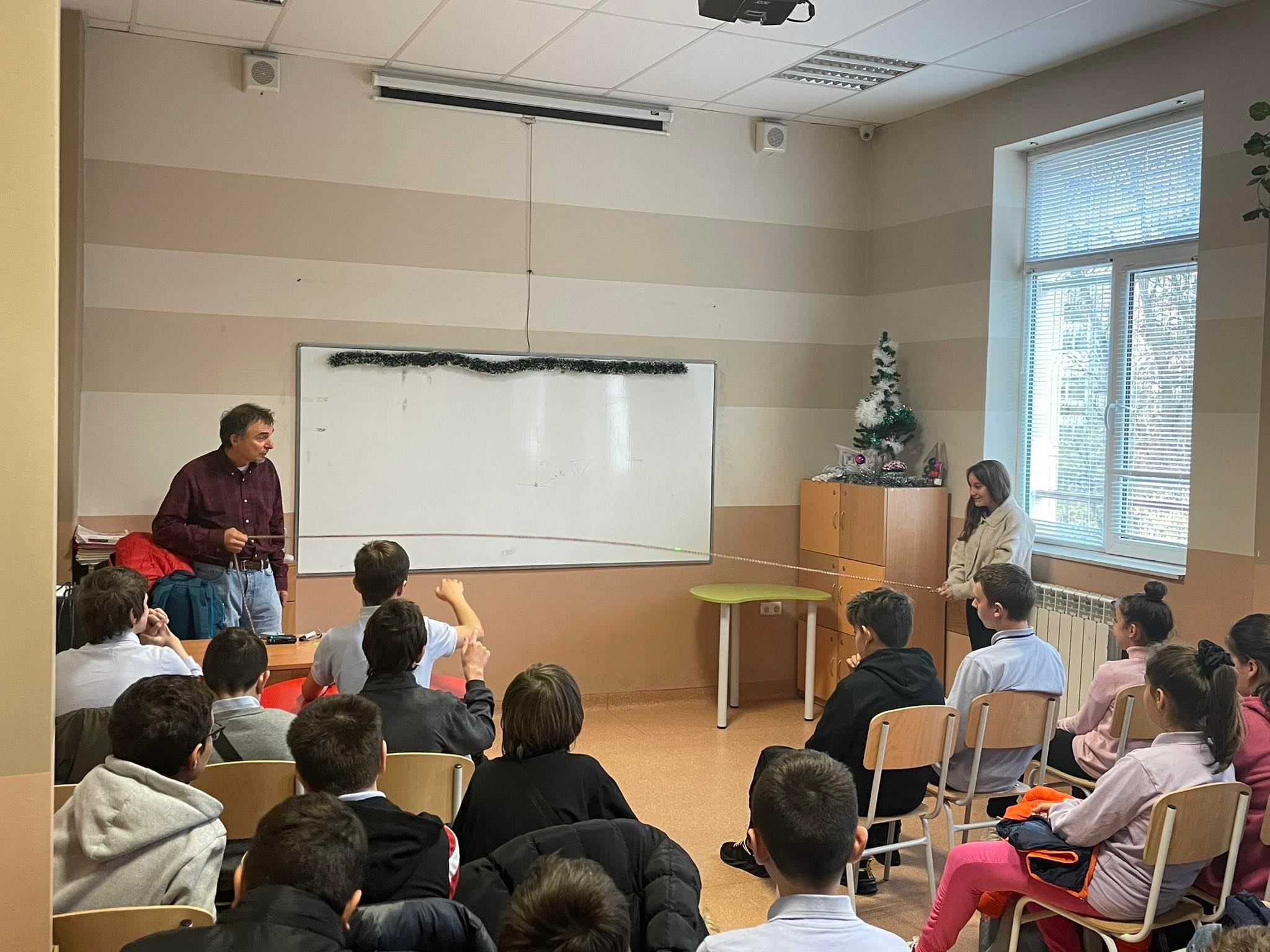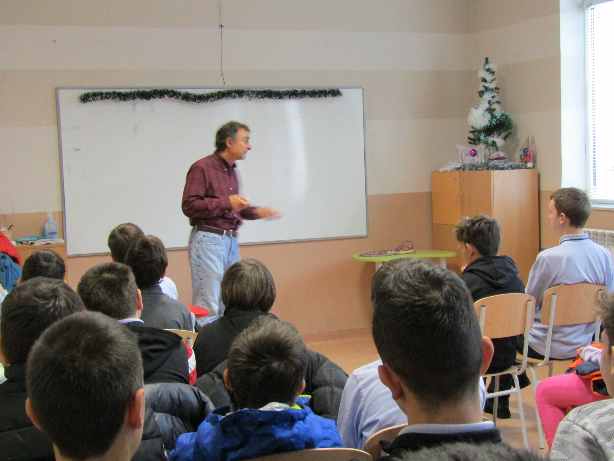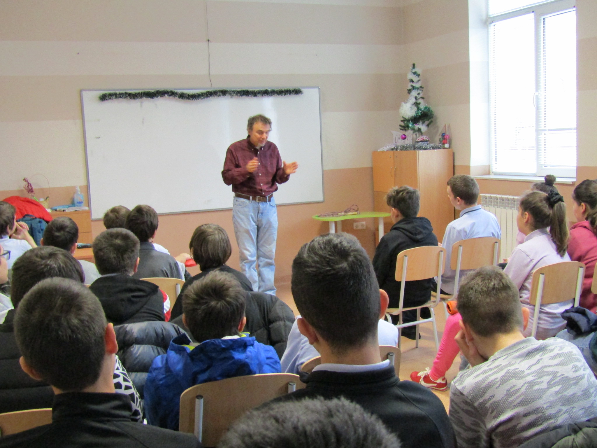 Днес той изнесе лекция пред учениците от седми клас на тема: ”Физиката и умните телефони”. Разказа им как се правят интегралните схеми в тях, постави интересни задачи и казуси, които изискваха знания и логическо мислене.