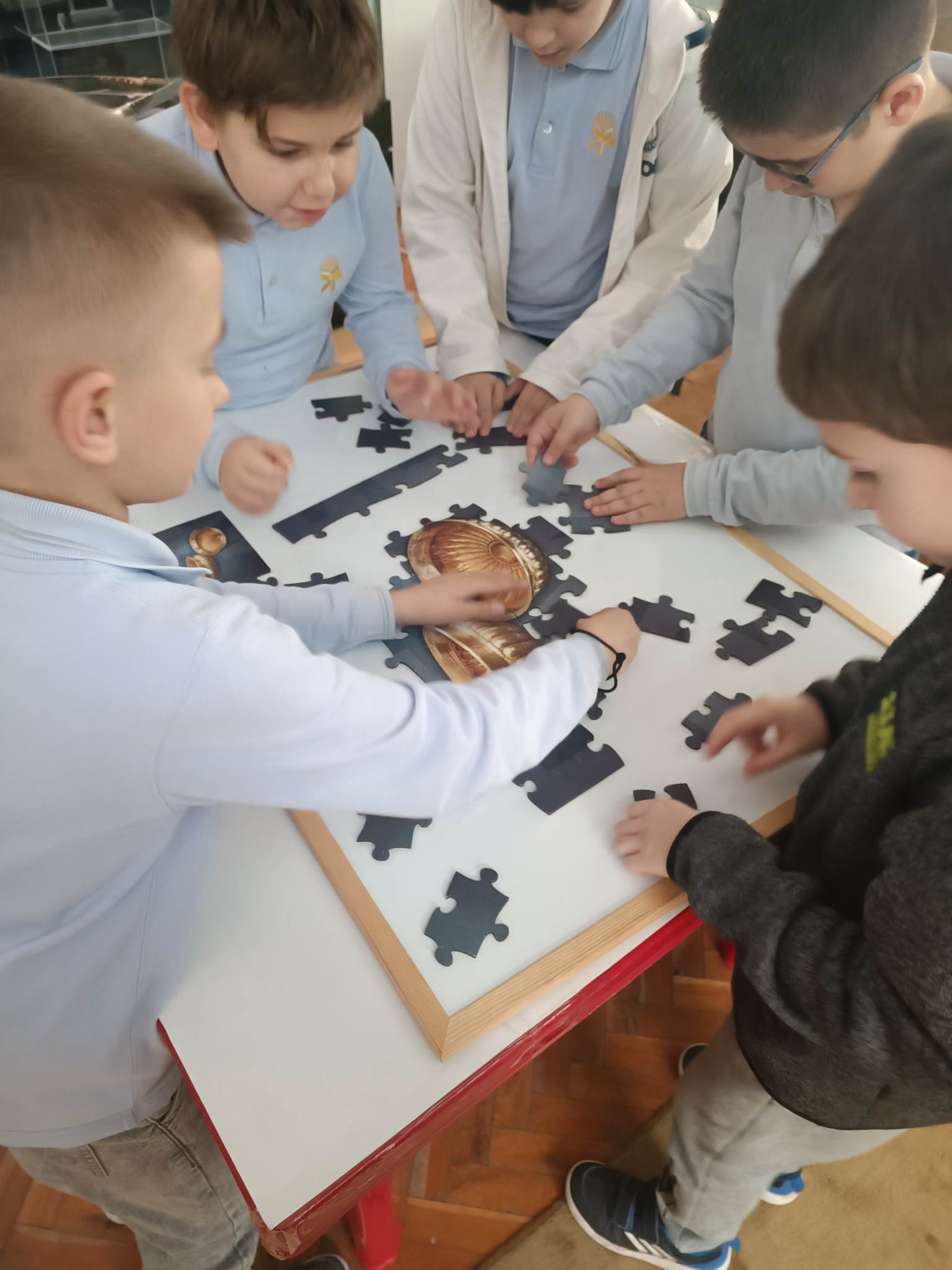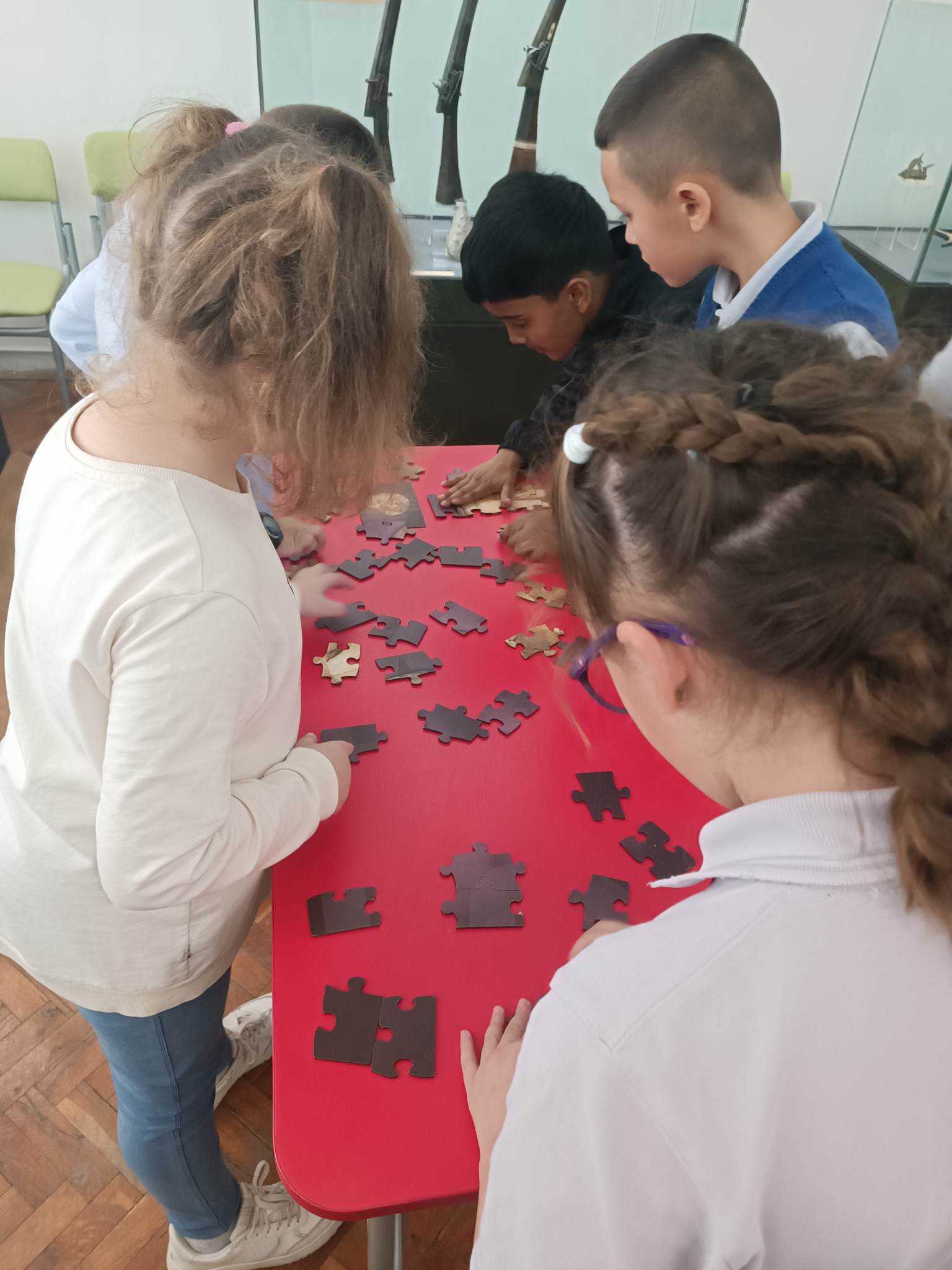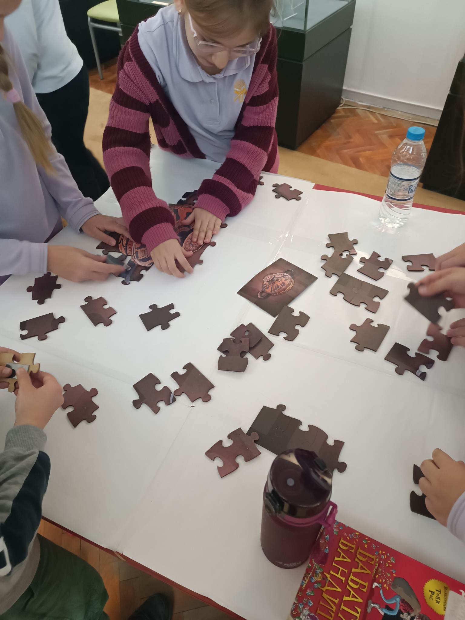 Децата се запознаха с материалните източници на знания за миналото ни. Интересната беседа завърши с презентация и отборно подреждане на пъзели с изображения на предмети от експозицията в музея, след което всеки отбор разказа кой е предметът и за какво е използван в миналото.