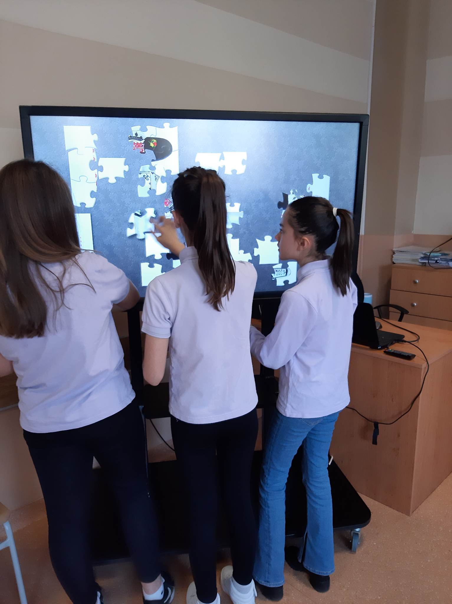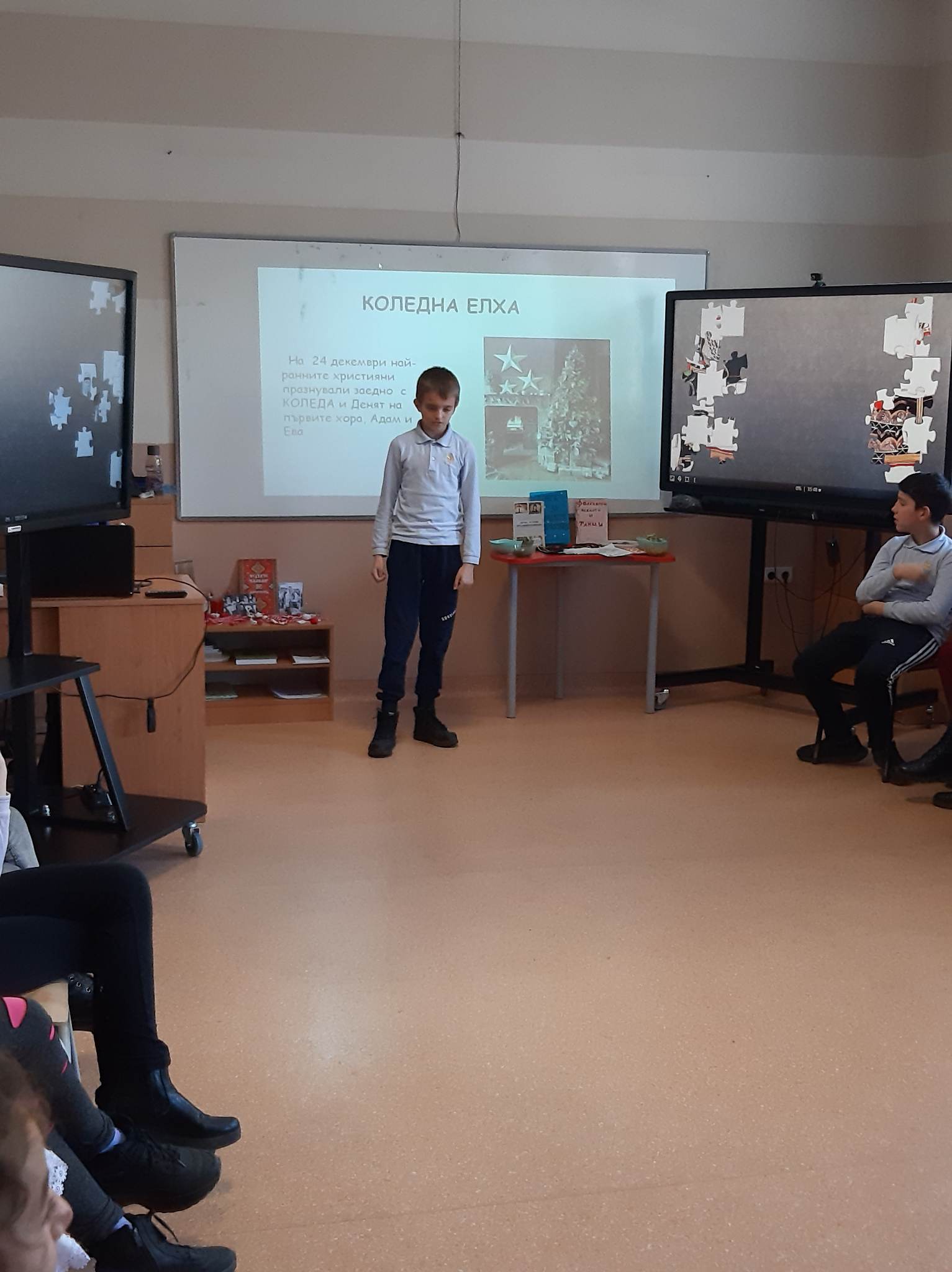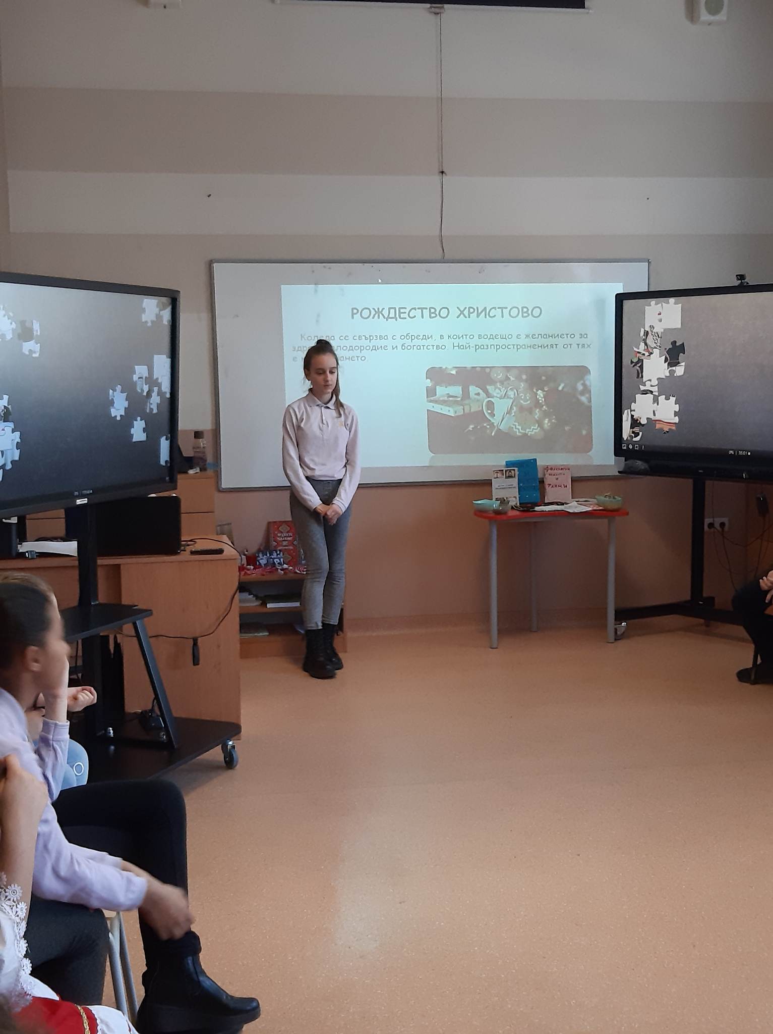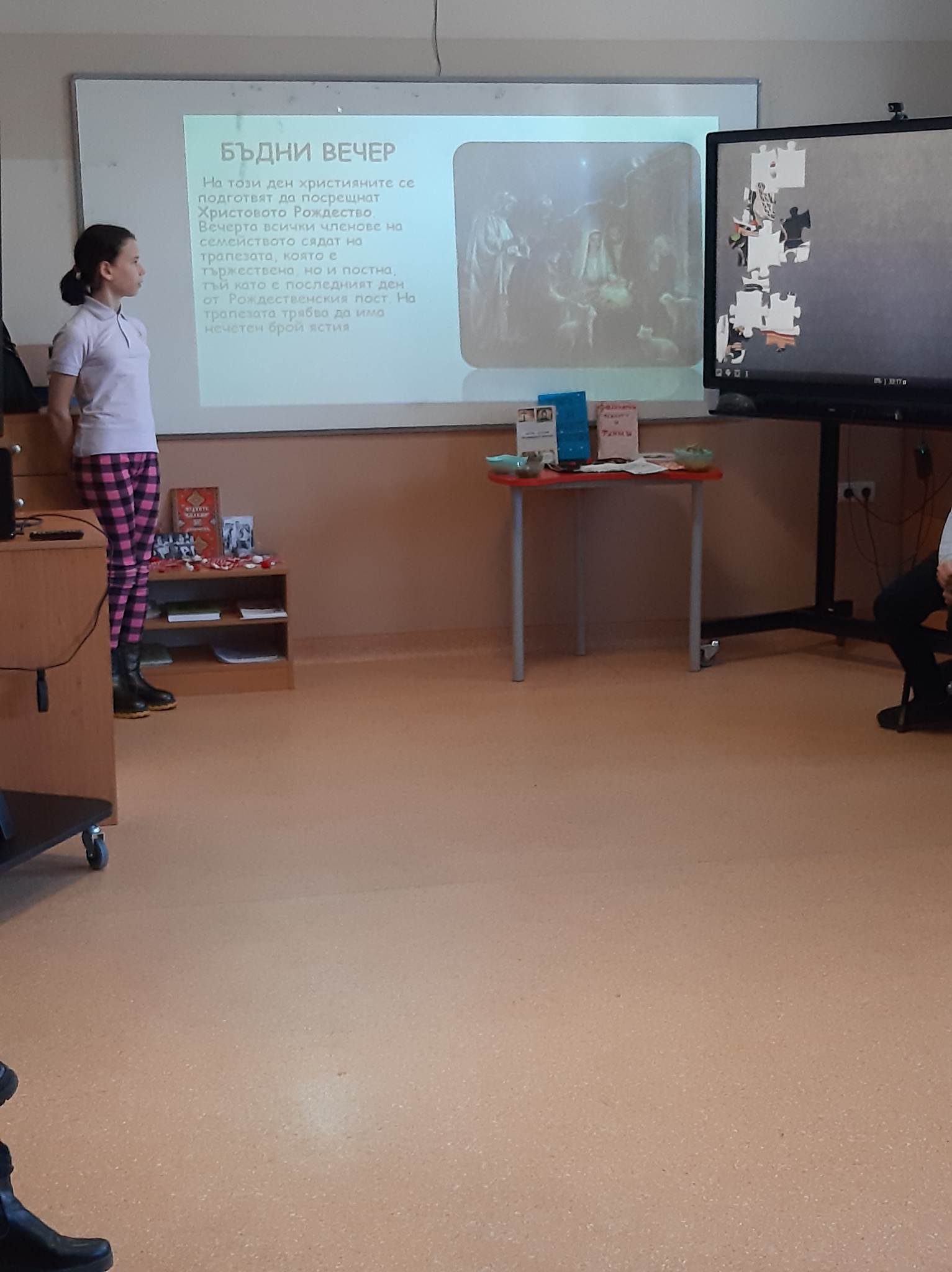 В състезателната част от урока учениците от двата класа разпознаваха билки, подреждаха пъзели с изображения на тракийска и шопска народни носии, свързваха ястия, типични за посочените празници…