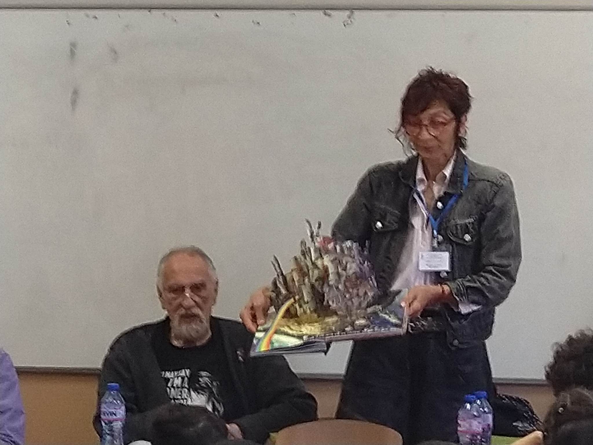Срещата премина много забавно и емоционално. Децата слушаха с интерес увлекателния разказ на писателя за приказните приключения на своенравен и придирчив изкуствен интелект, изпратен от планетата Земя да търси извънземен разум. Разлистиха страници от поредицата и се насладиха на невероятните илюстрации в тях.