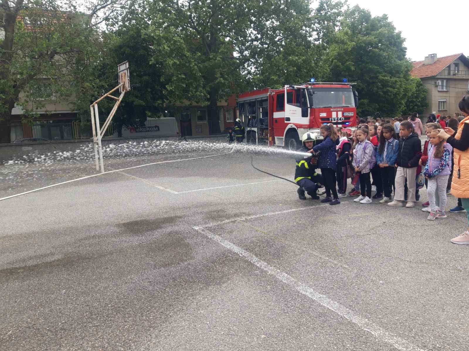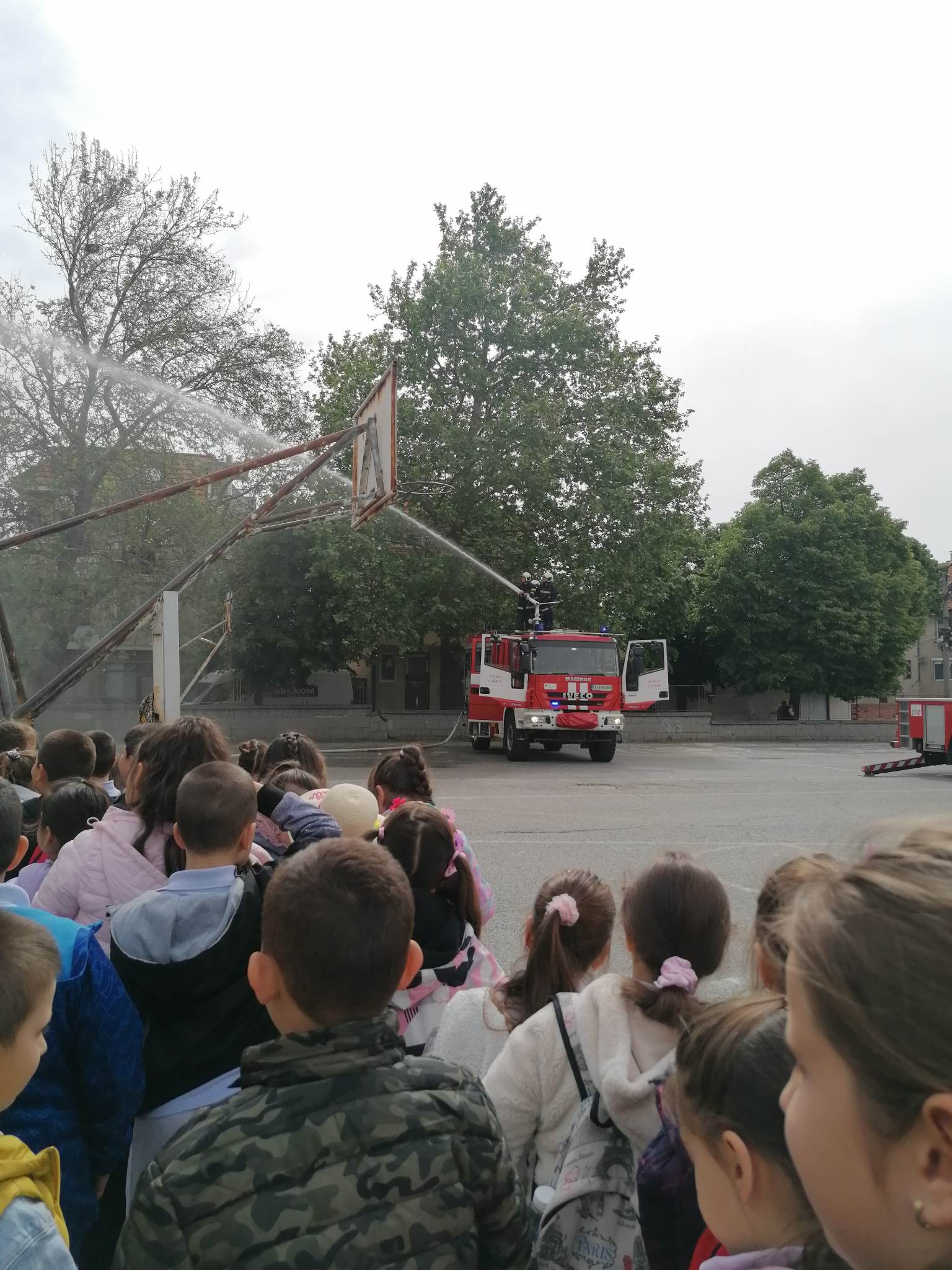 Учениците от начален етап внимателно наблюдаваха всичко, което се случваше пред тях. Бяха впечатлени от противопожарните коли със стълби, виещите сирени, специализираното облекло… С нескрито любопитство и силен интерес не спираха да задават своите въпроси. Запалени от видяното, ехтяха думите: “Искам да стана пожарникар!”.