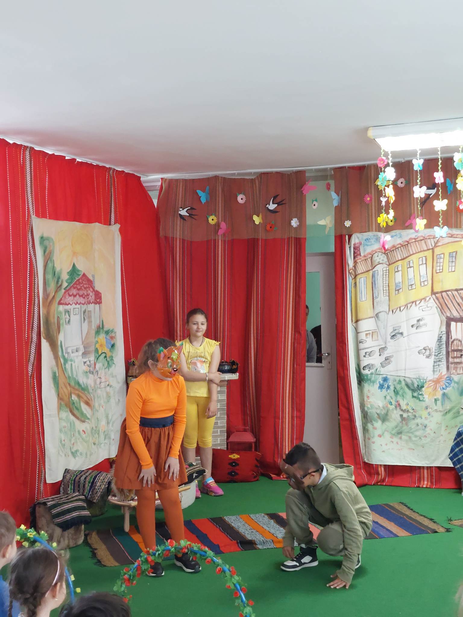 Днес, 16.05.2023 г. учениците от 3.в клас зарадваха малките палавници от ДГ “Божур”, като представиха пред тях две драматизации на български народни приказки.