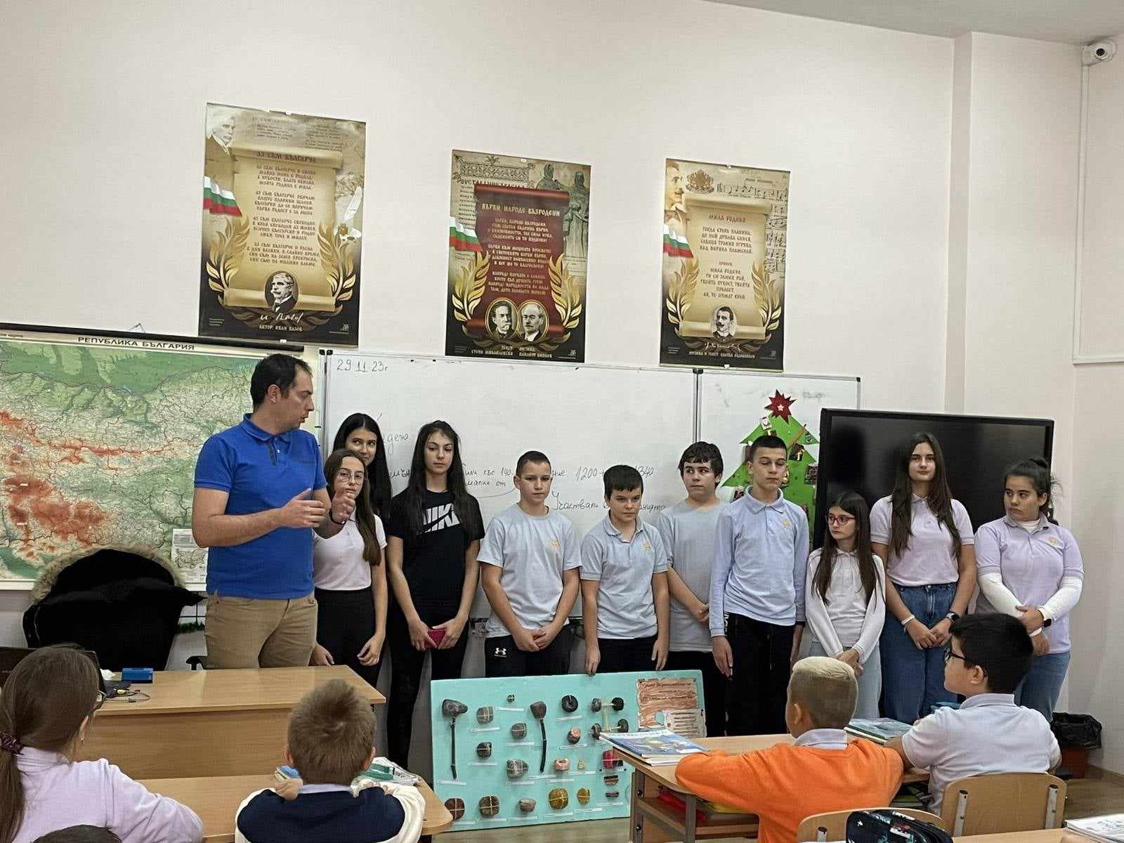 Днес учениците от шести и седми клас, участващи в занимания по интереси “По пътя на предците ни”, представиха първа част от изпълнението на поставените им задачи. Групата, с ръководител Светослав Георгиев, е с историческо направление, целяща да събуди интерес към науката, занаятчийството и гражданската инициативност.
