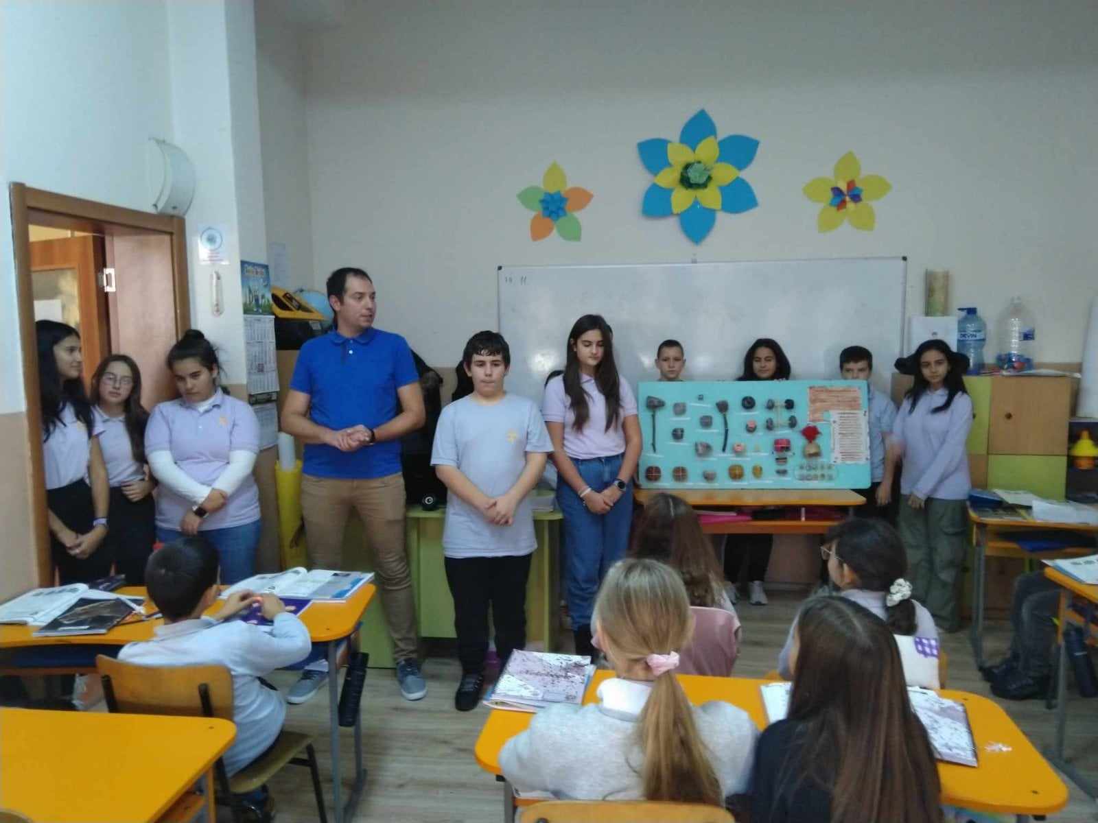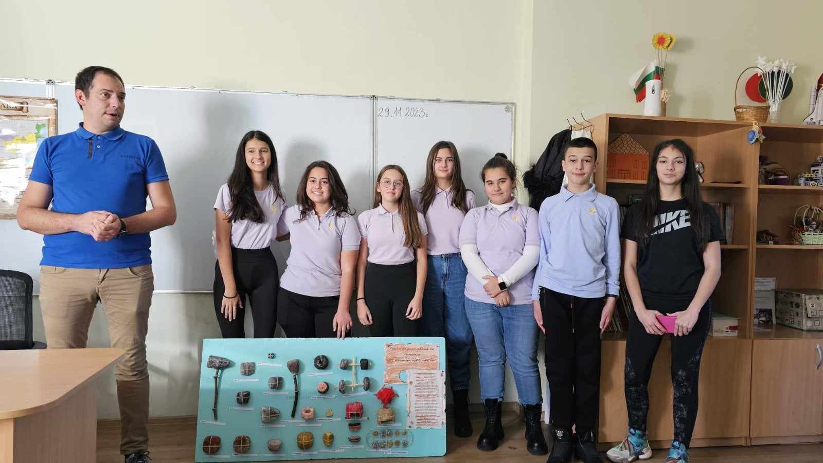 Пред бъдещите петокласници и участници в предстоящите ни проекти бяха показани табло с ръчно изработени реплики на оръдия на труда, посуда, колелета, шлемове, корони, тракийски и гръцки монети.