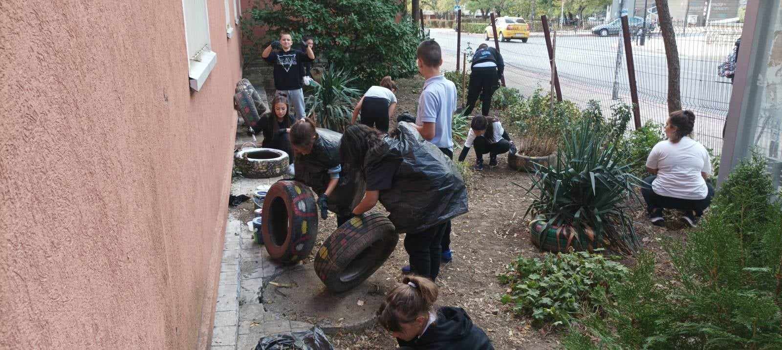 Другата част от проекта, която все още е в процес на разработка, също бе представена – северната градинка на училището. Целта е пространството да бъде превърната в по-уютно и приветливо място.