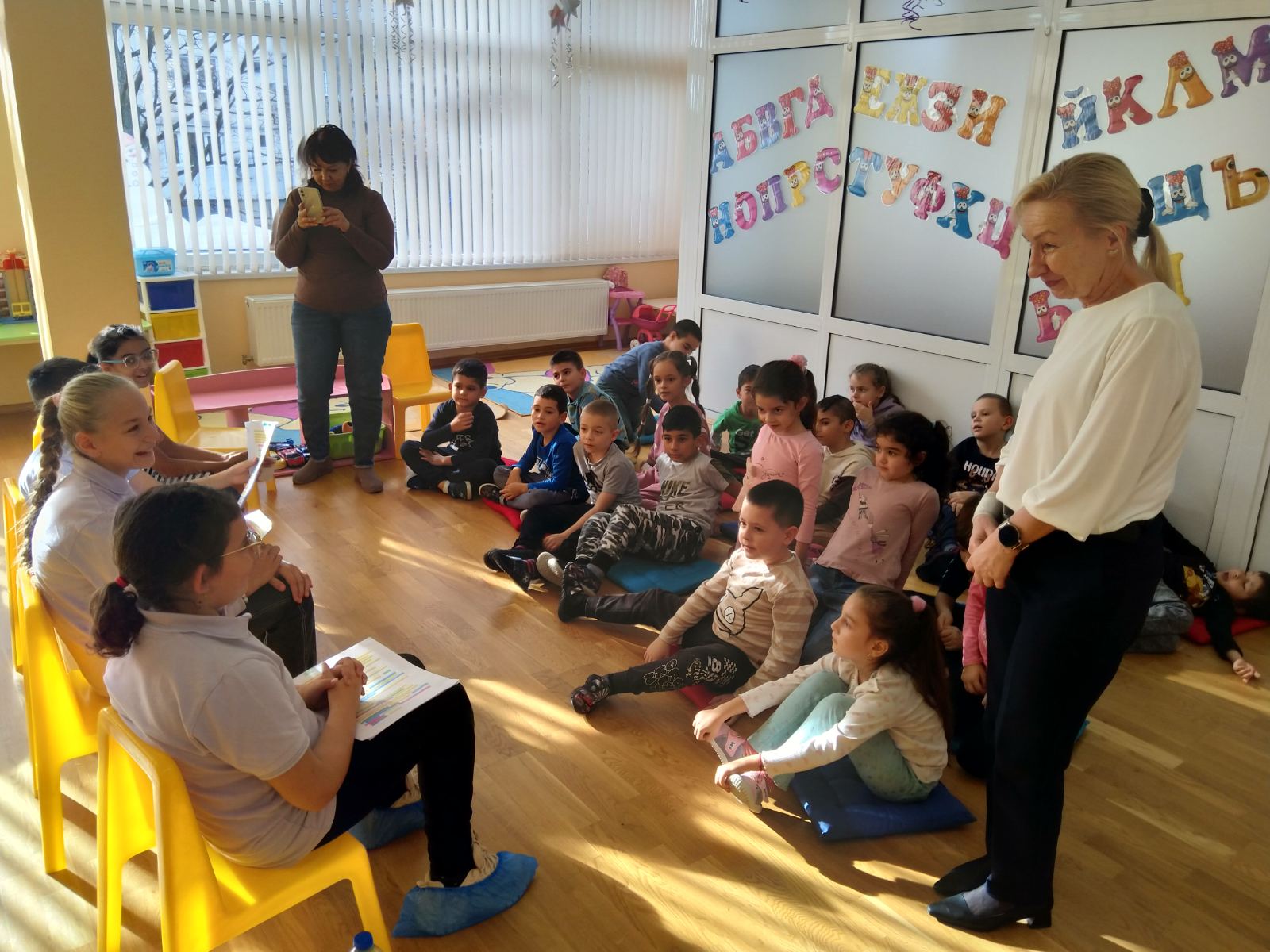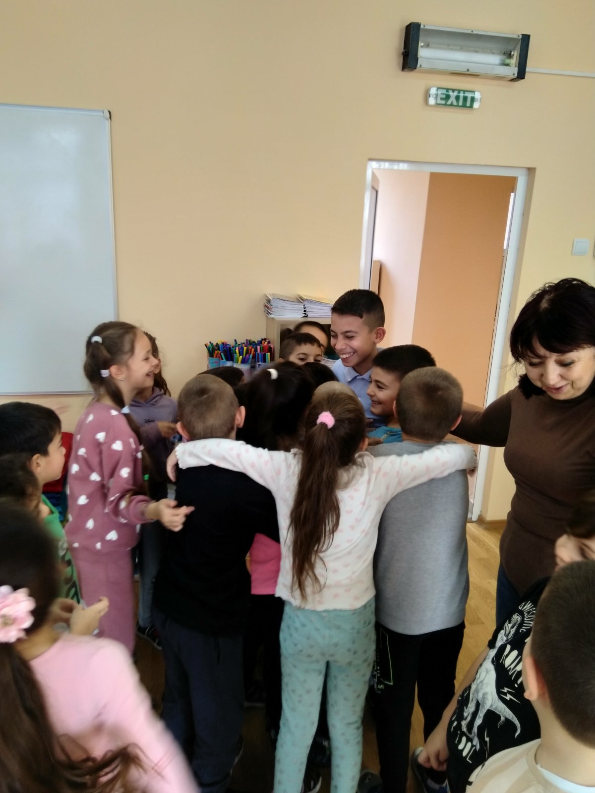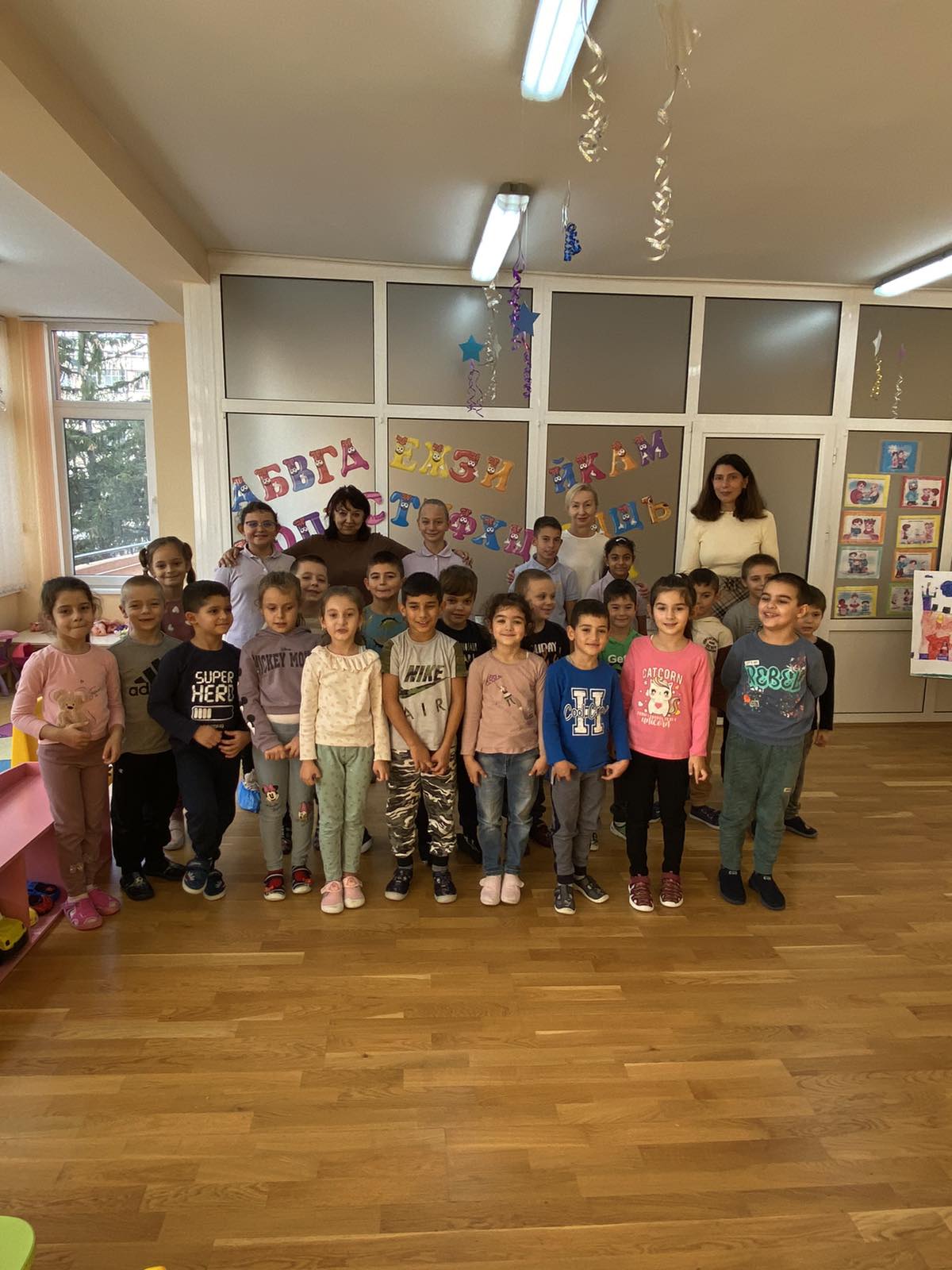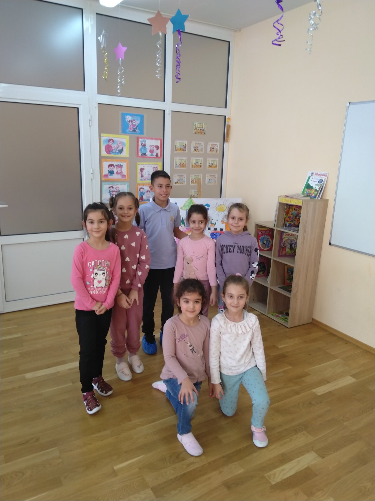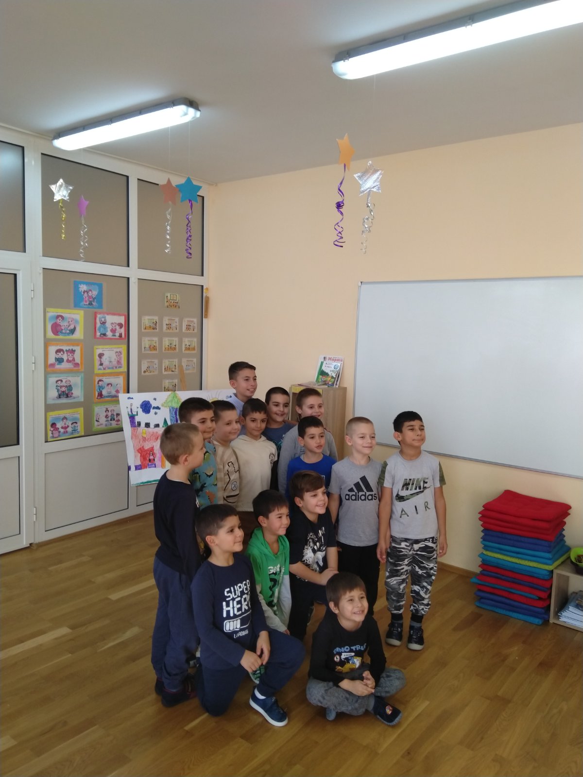 Учениците от IV „А“ клас и техните учители г-жа Димова и г-жа Вачкова, бяха подготвили интересна поучителна приказка и книжки за подарък на групата.