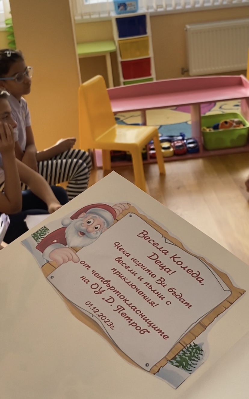 На 01.12.23г. четвъртокласниците при ОУ “Димитър Петров” бяха гости на група “Звездичка” в ДГ “Детство”, на които следващата година предстои да прекрачат училищния праг като първокласници.