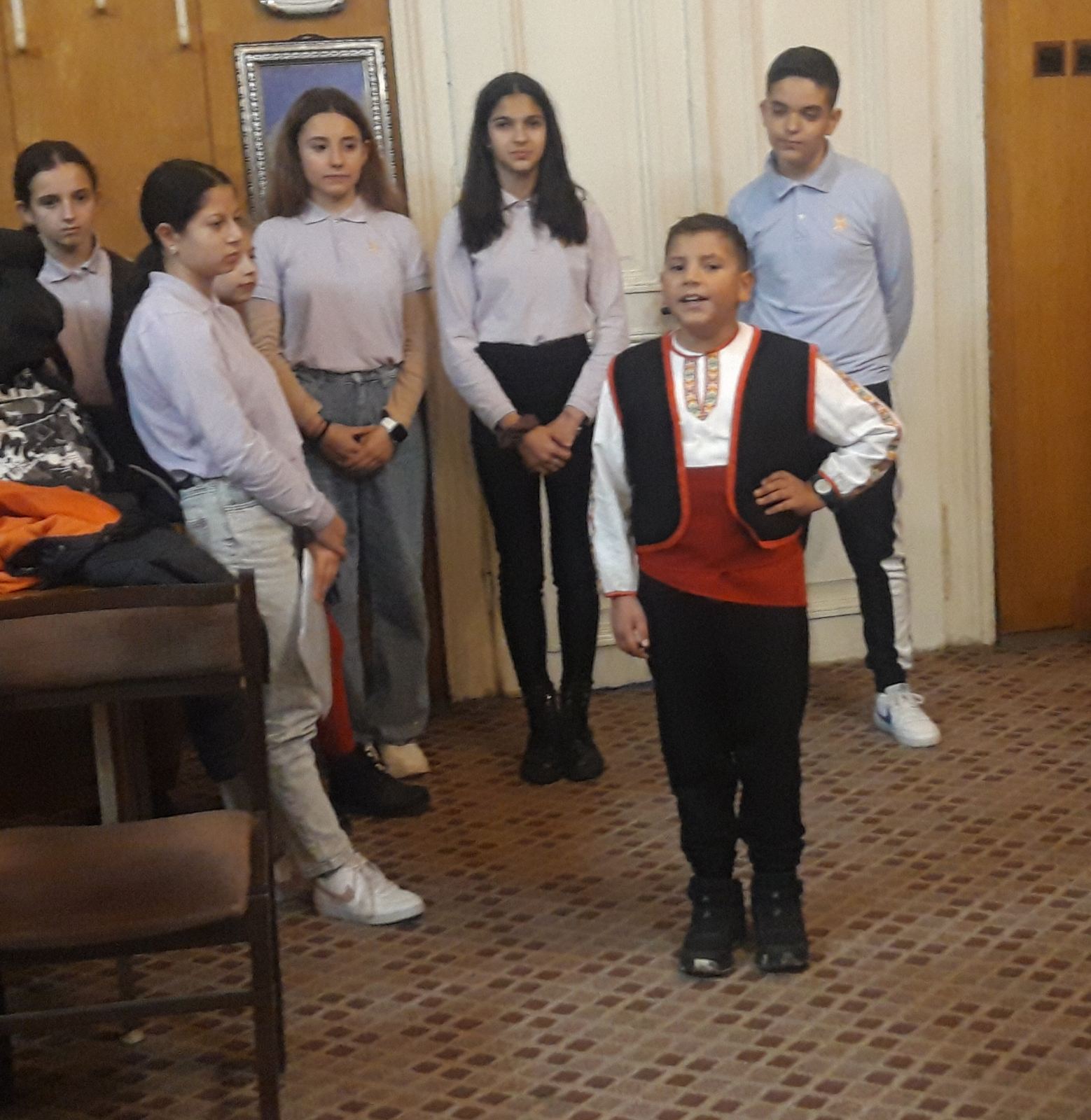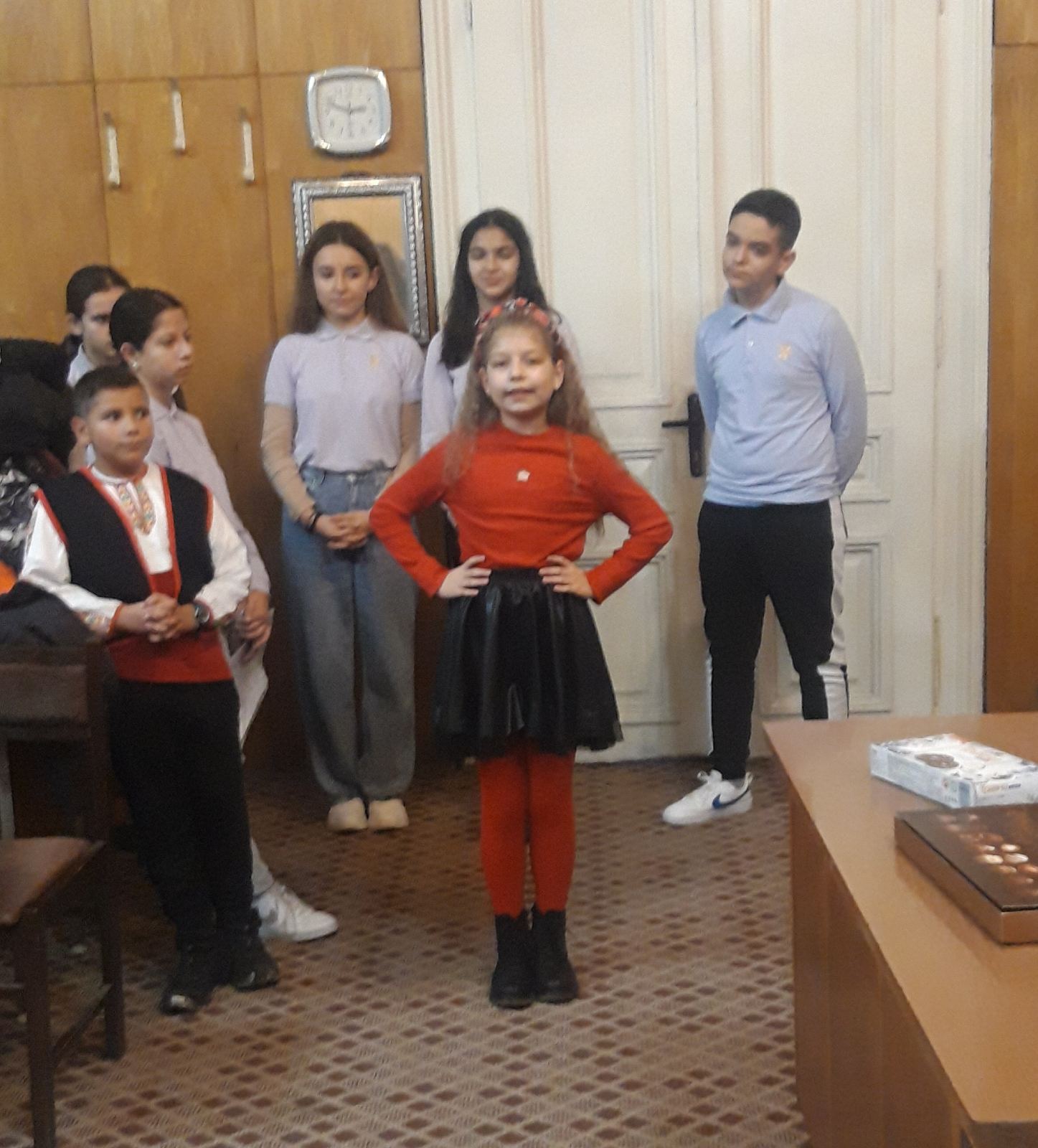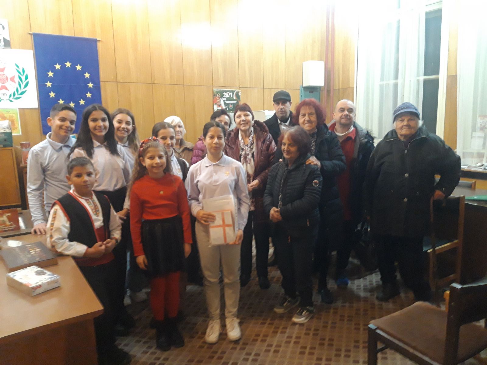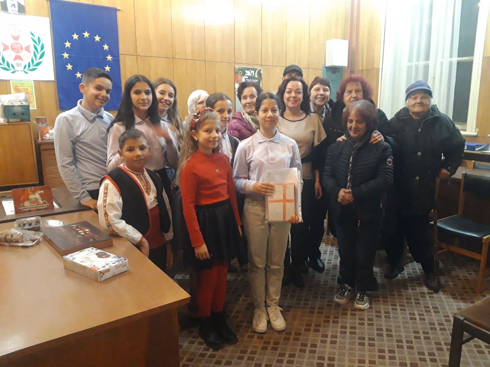 Те поднесоха изработените с много желание и старания картички подготвените от Клуб „Мего“ – II „В“ клас и надписани от ученици. Музикален поздрав, който трогна членовете на клуба бяха подготвили талантливите Дария Пенева от III „Б“ клас и Матей Калчев от IV ,,В“ клас.