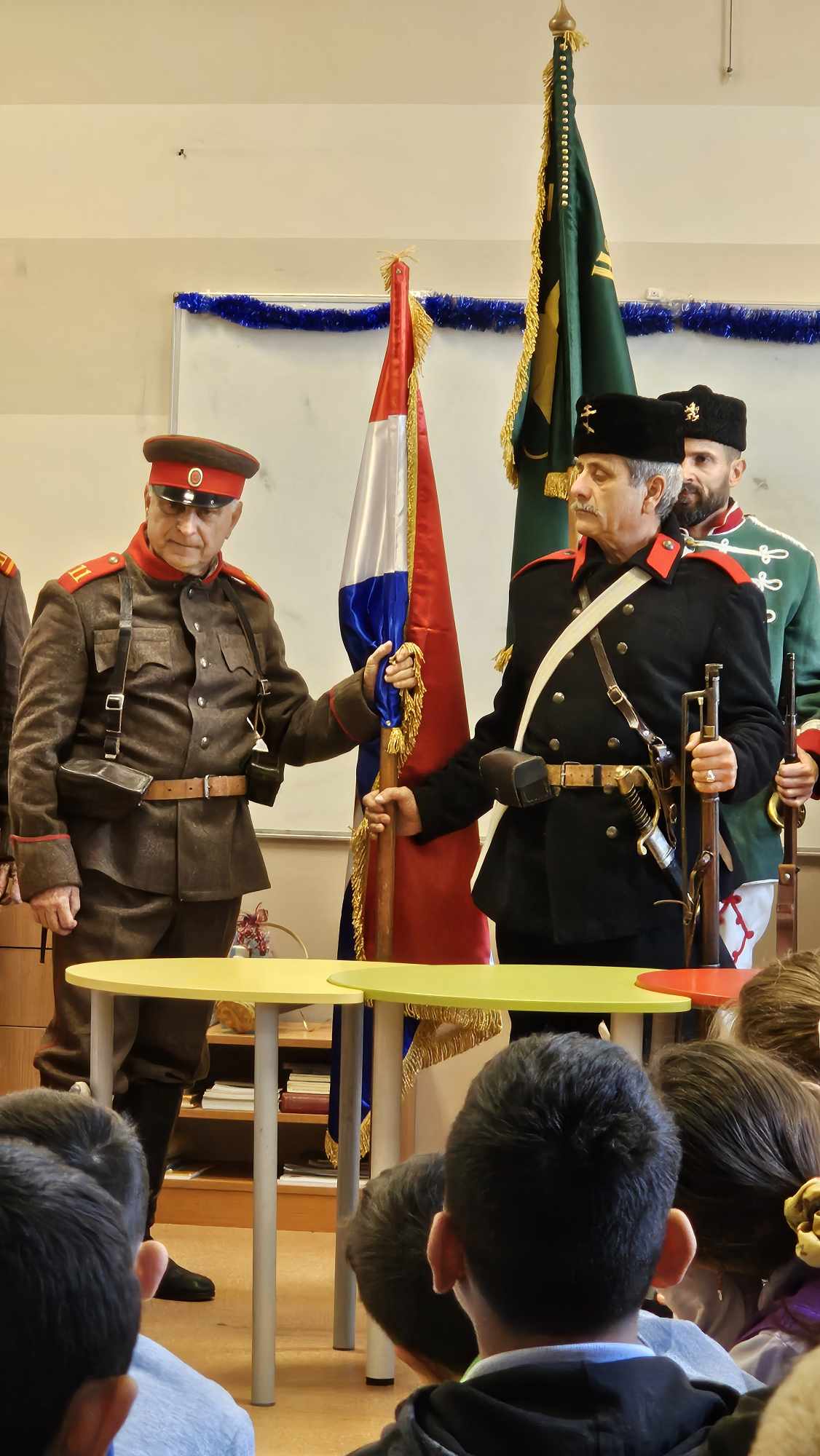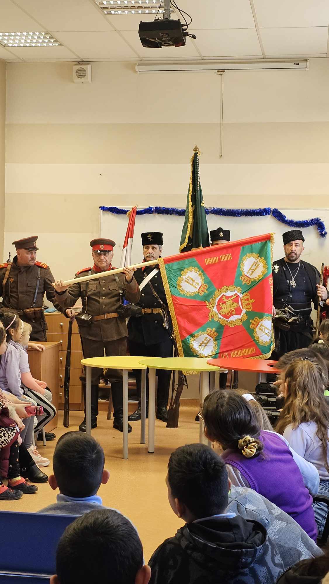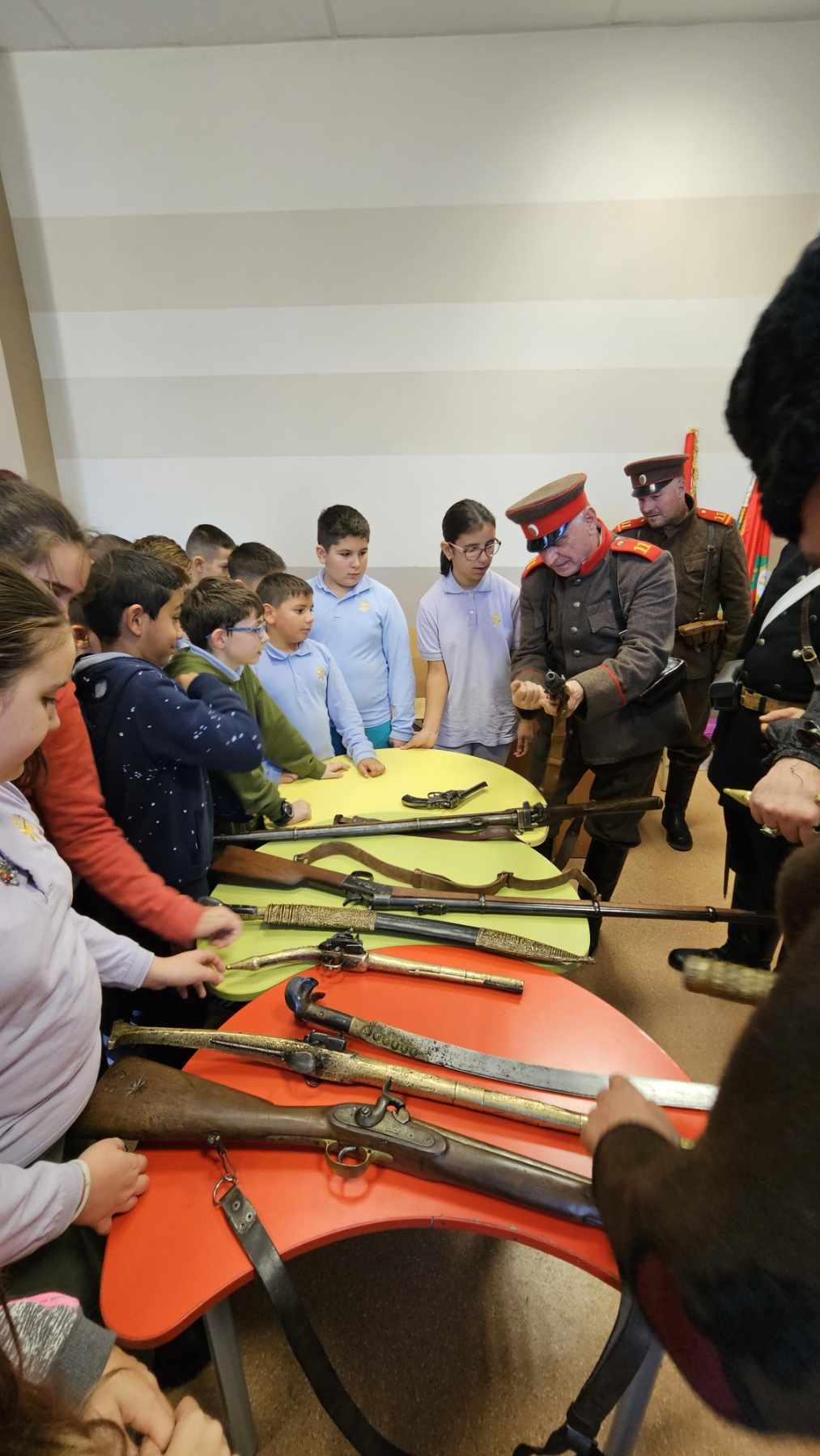 Пред въодушевените детски погледи бяха представени военни униформи и оръжия. Подробно бяха описани елементи от облеклото, знамената и оръжията на българските борци за свобода.