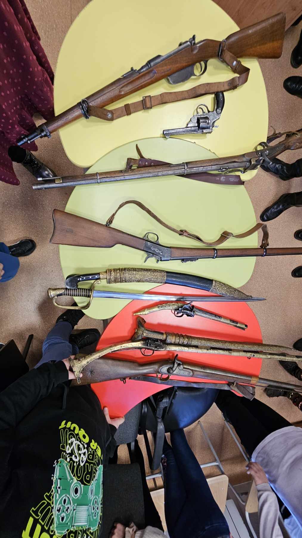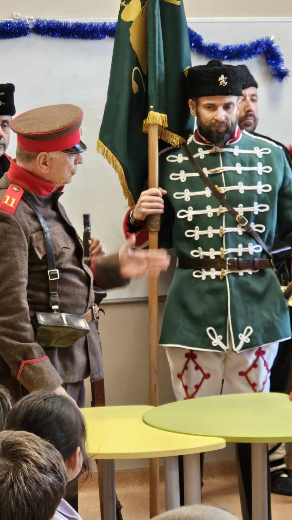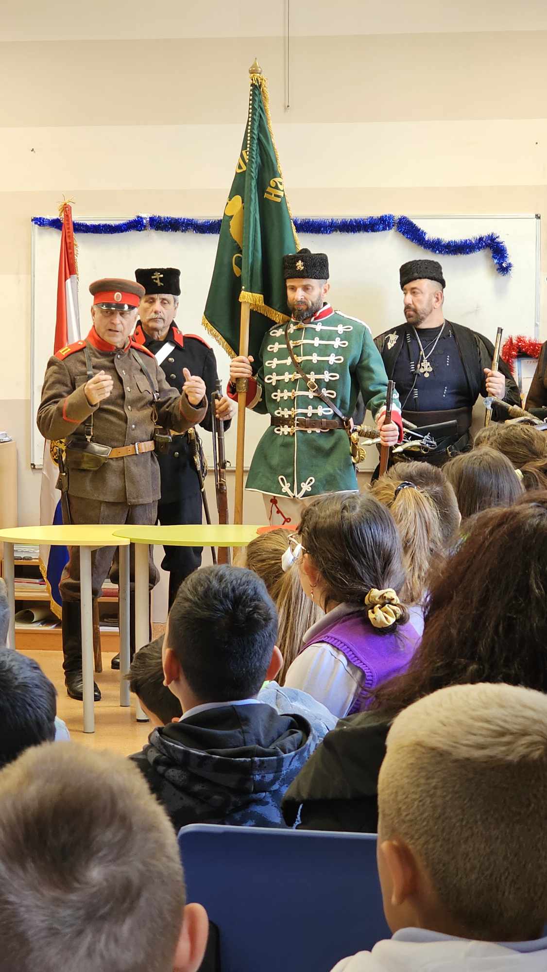 Пред въодушевените детски погледи бяха представени военни униформи и оръжия. Подробно бяха описани елементи от облеклото, знамената и оръжията на българските борци за свобода.