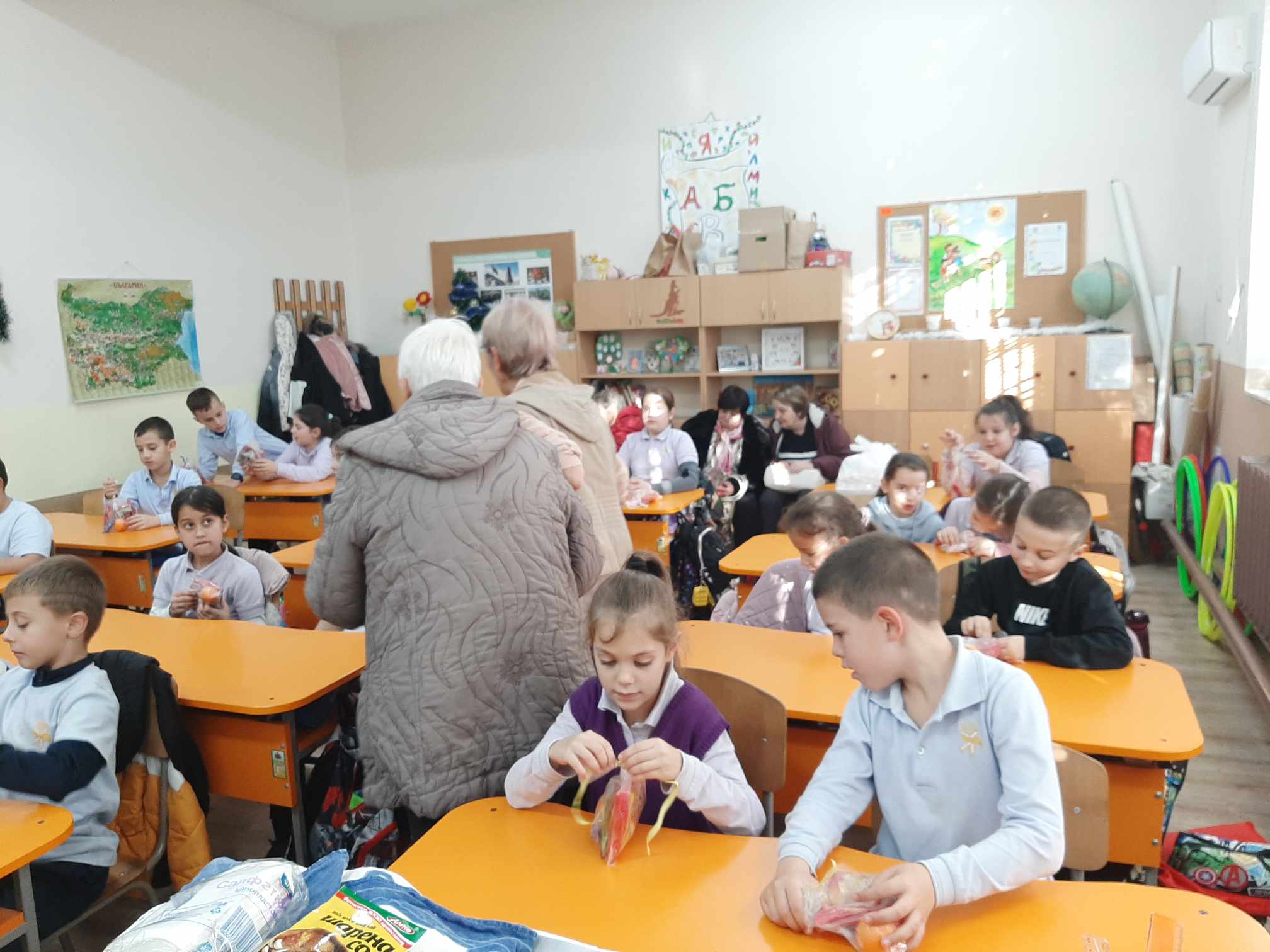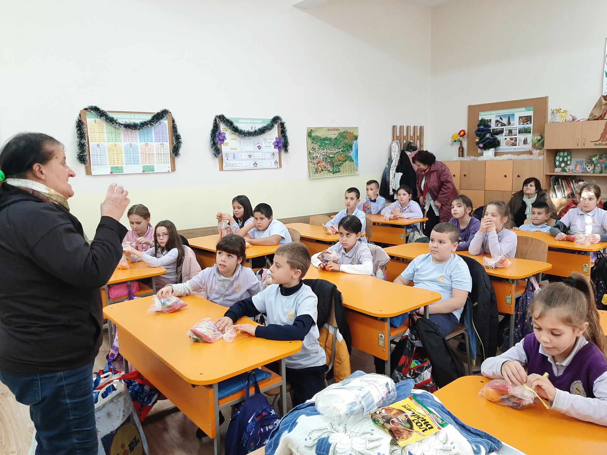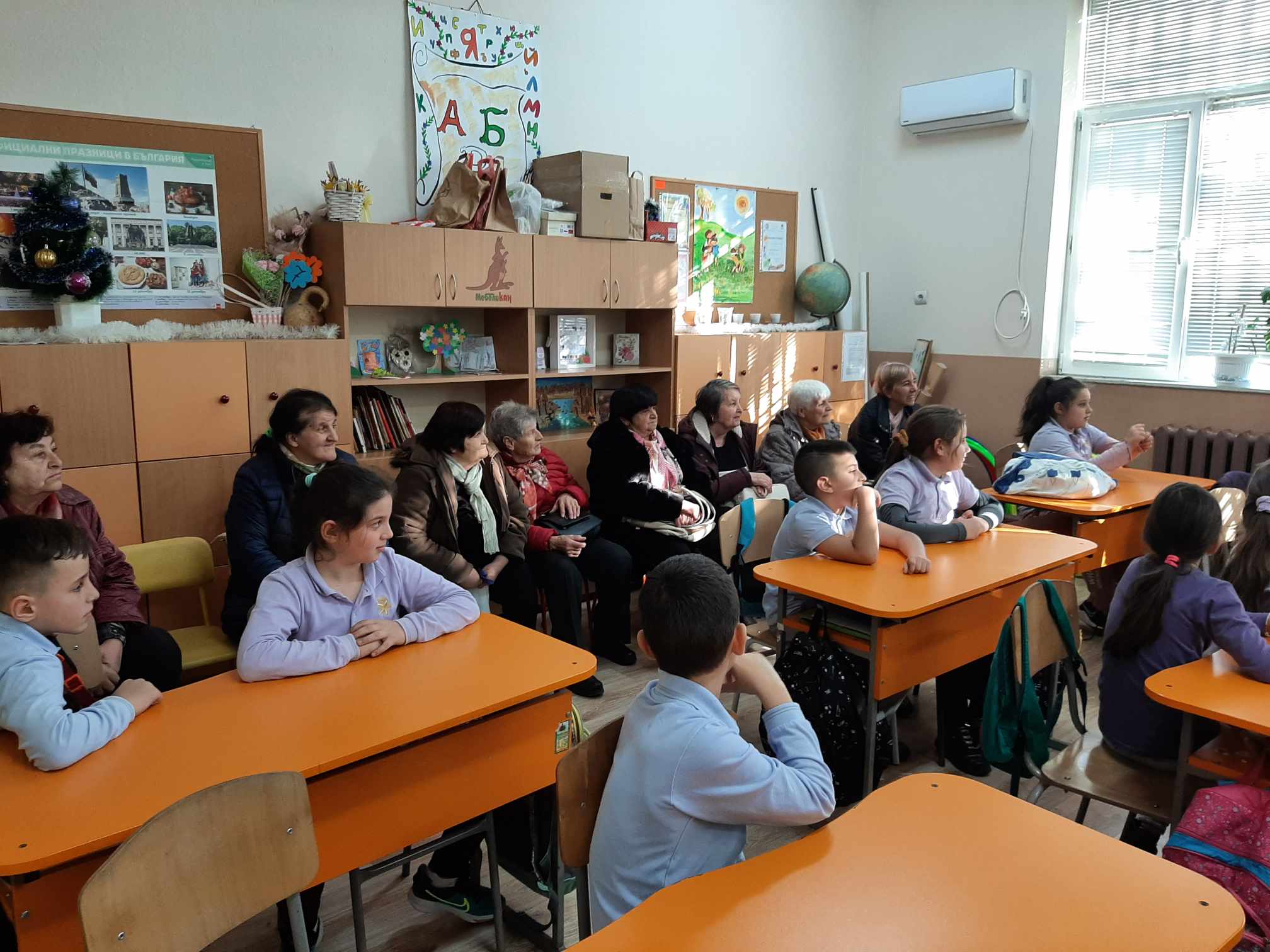 В навечерието на предстоящите празници учениците представиха стихотворения и много песни. Бабите ни посрещнаха с погача, шарена сол и подаръци.